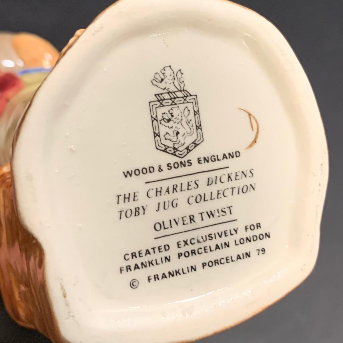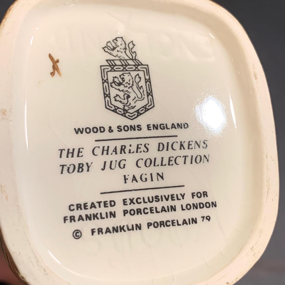 LOT 271 FB: Vintage 1979 "Charles Dickens Toby Jug Collection" From Franklin Porcelain London Including Fagin, Bob Cratchit W/ Tiny Tim, Scrooge, & Oliver Twist