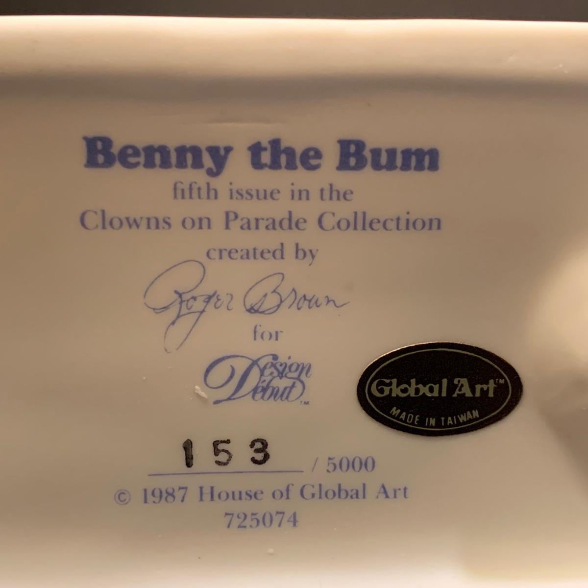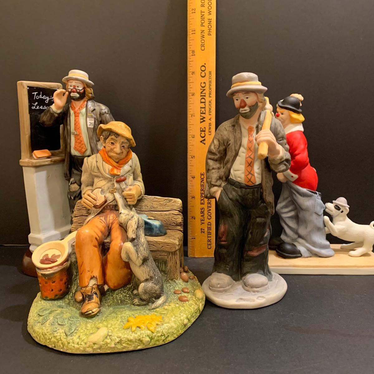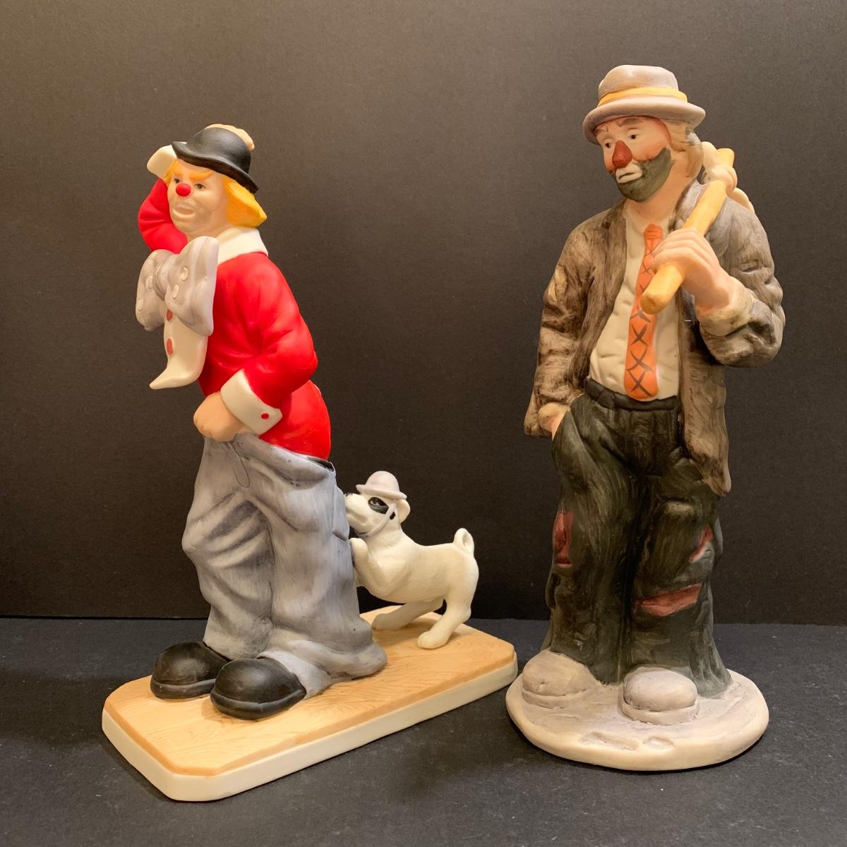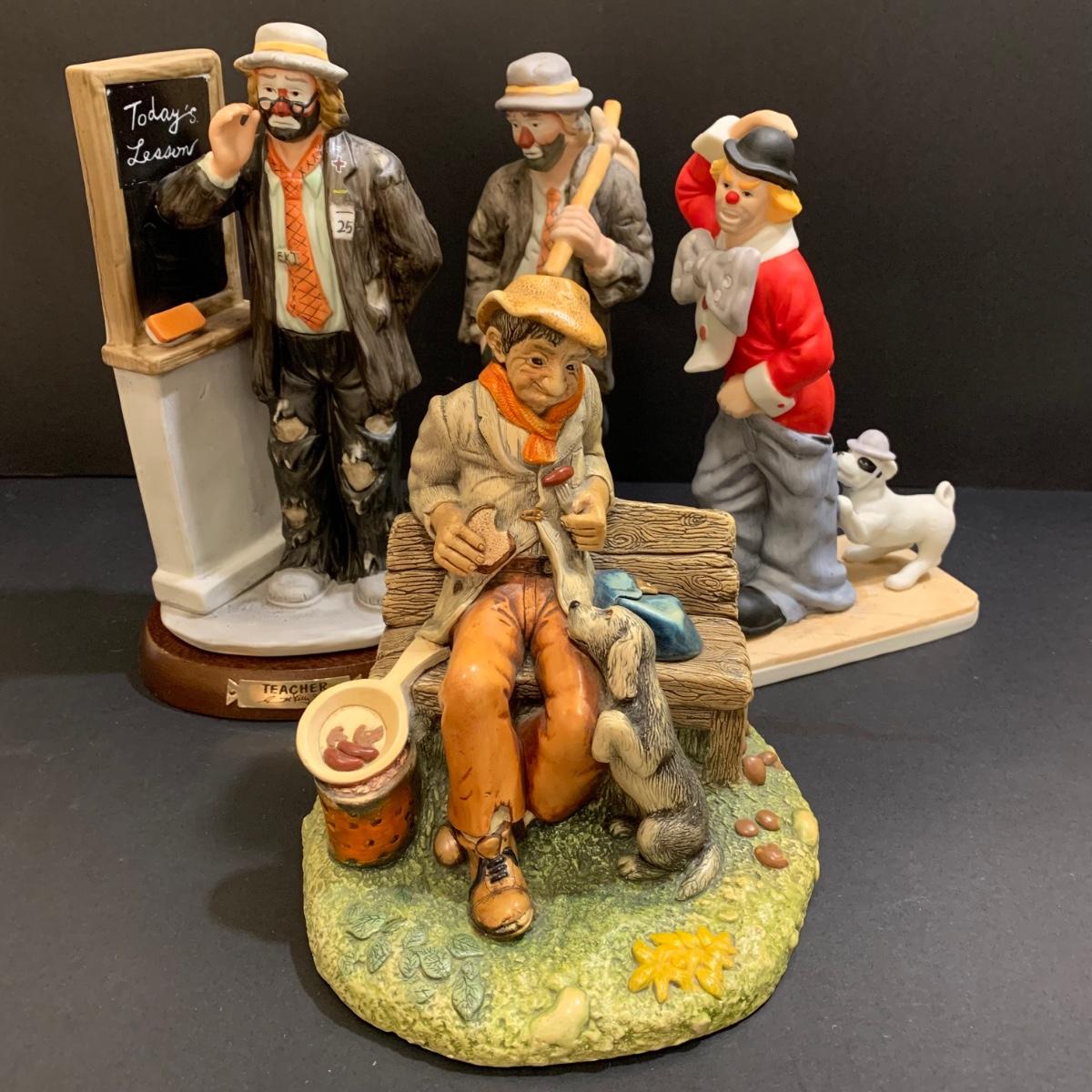 LOT 274 FB: Vintage 1969 Naturecraft England "Hopeful" Stoneware, 1987 Global Art "Benny The Bum" By Roger Brown For The Clowns On Parade Collection, & Flambro The Emmett Kelly Jr. Collection Clowns
