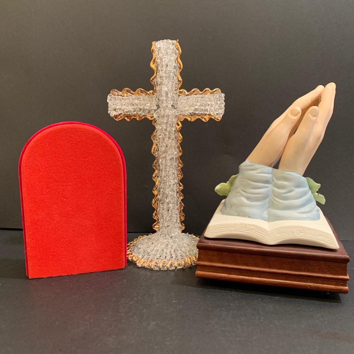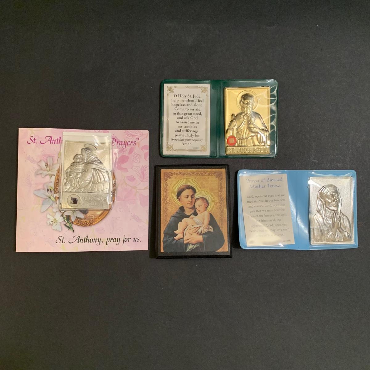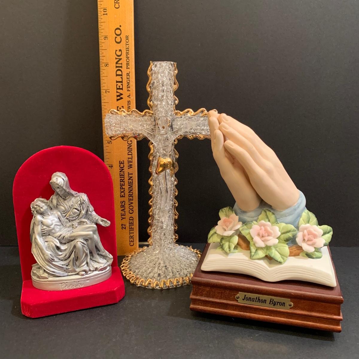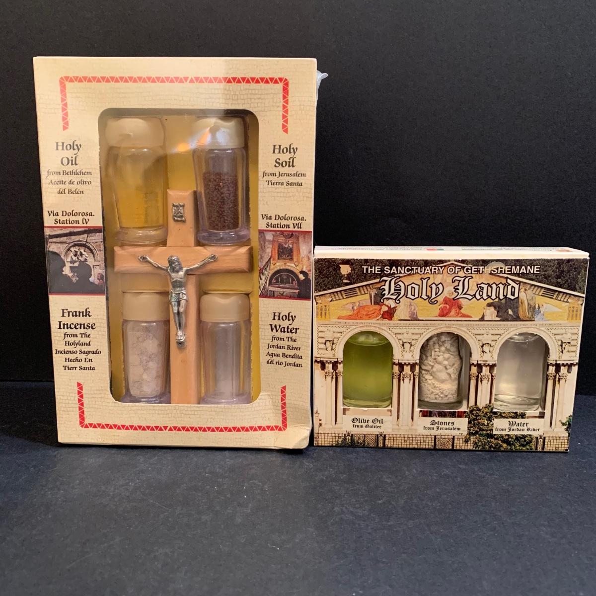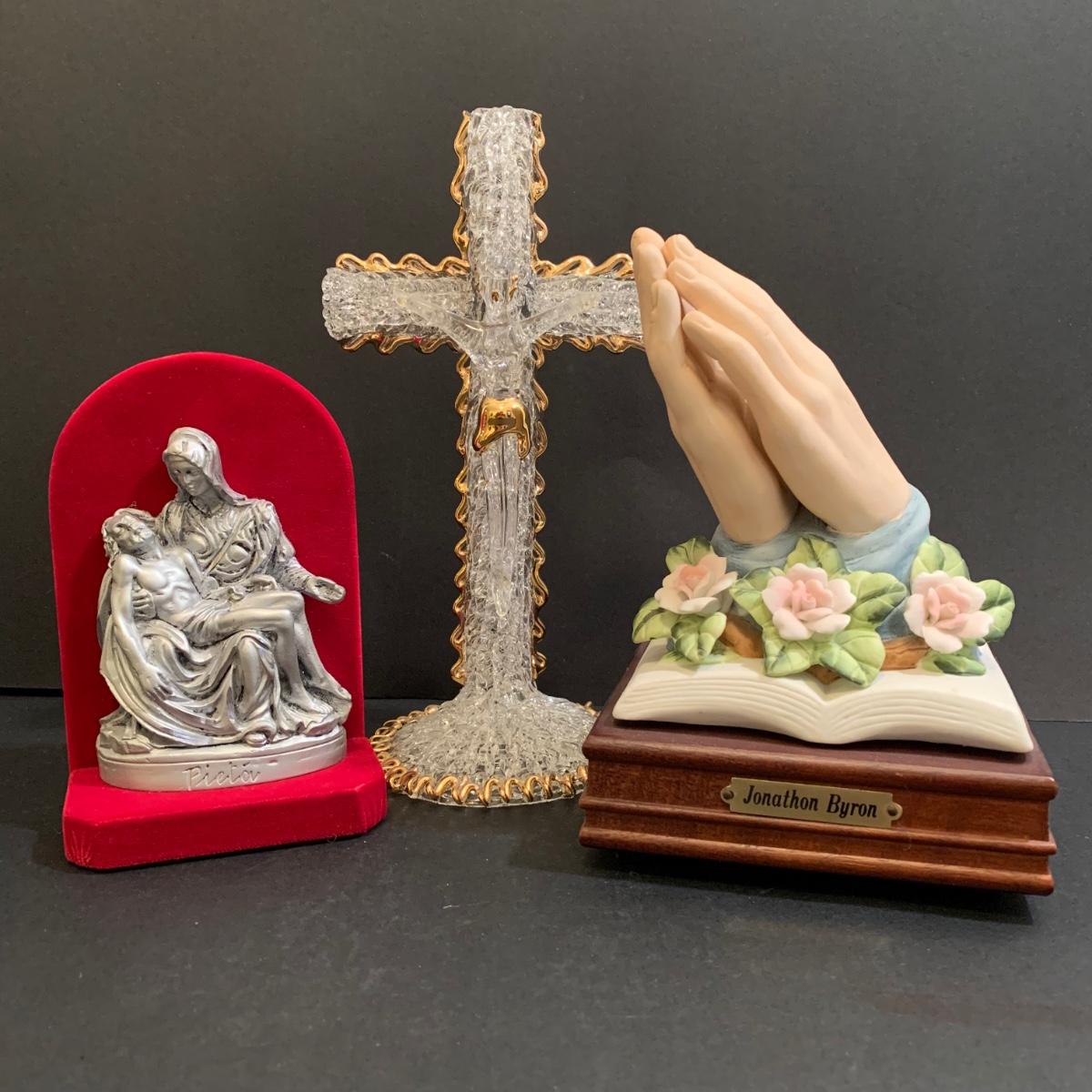LOT 277 MB: Coins Of The Bible "Widow's Mite", Italian Pewter Piela Statue, Rosaries, Crucifixes, Holy Water, Holy Oils, & More