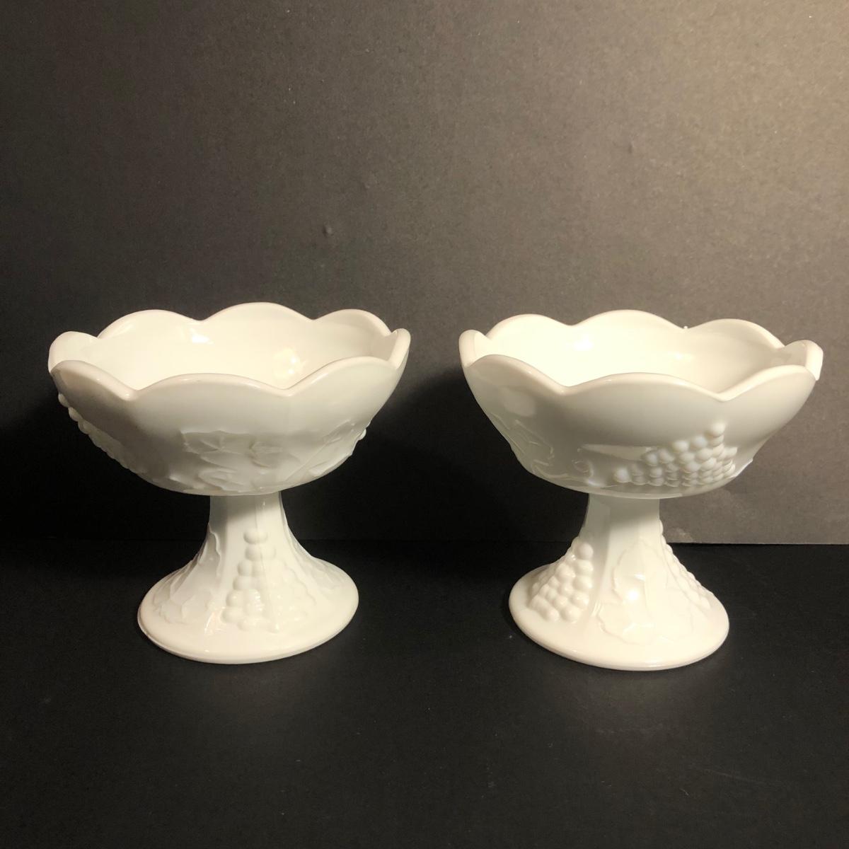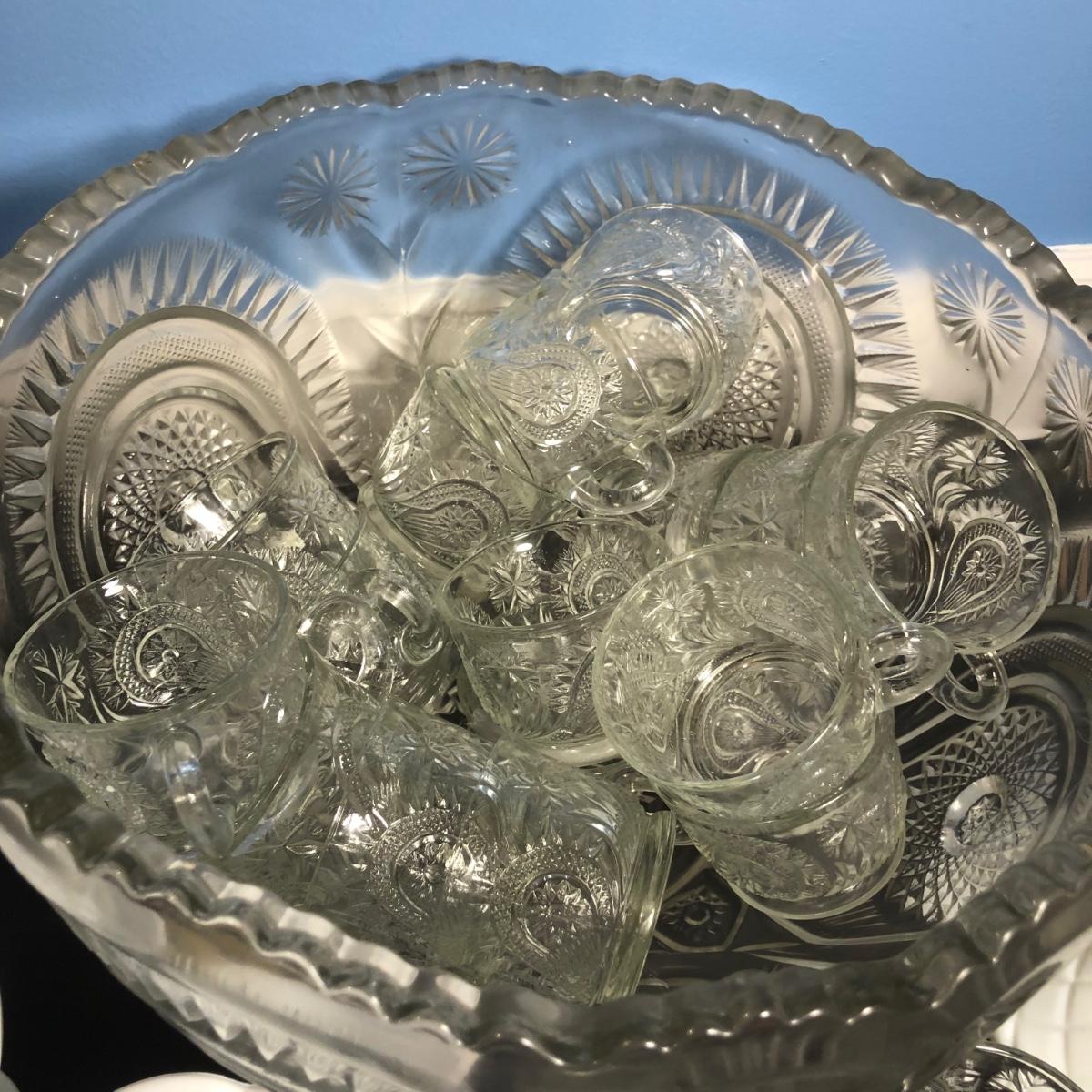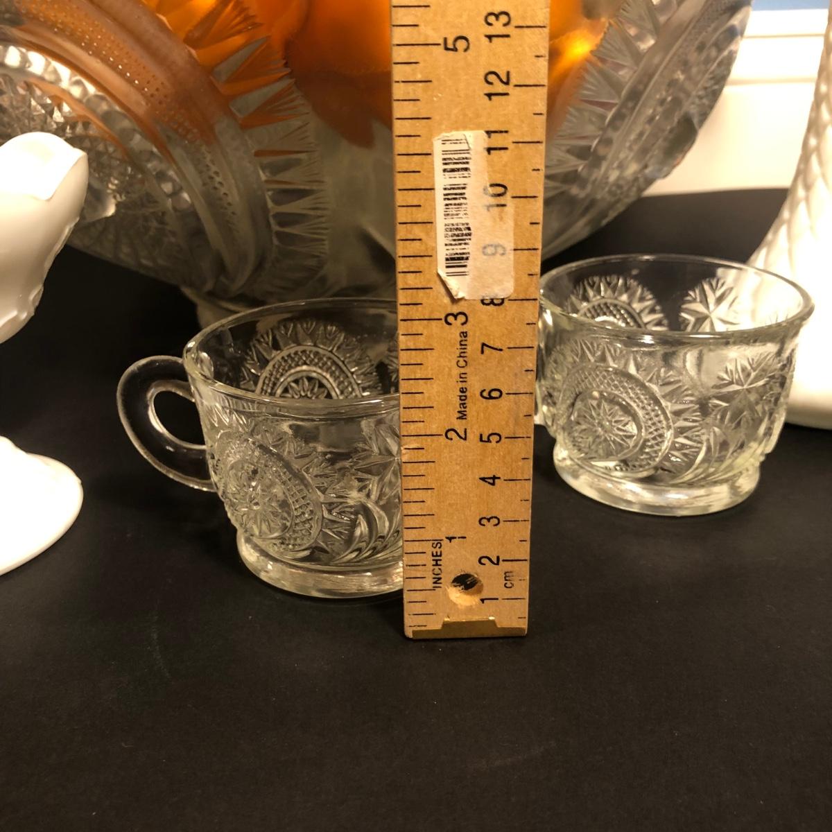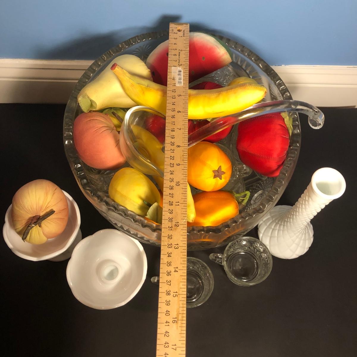 LOT 281B: Large Cut Crystal Punch Bowl w/ Several Matching Cups, Soft Fruit & Milk Glass Pieces