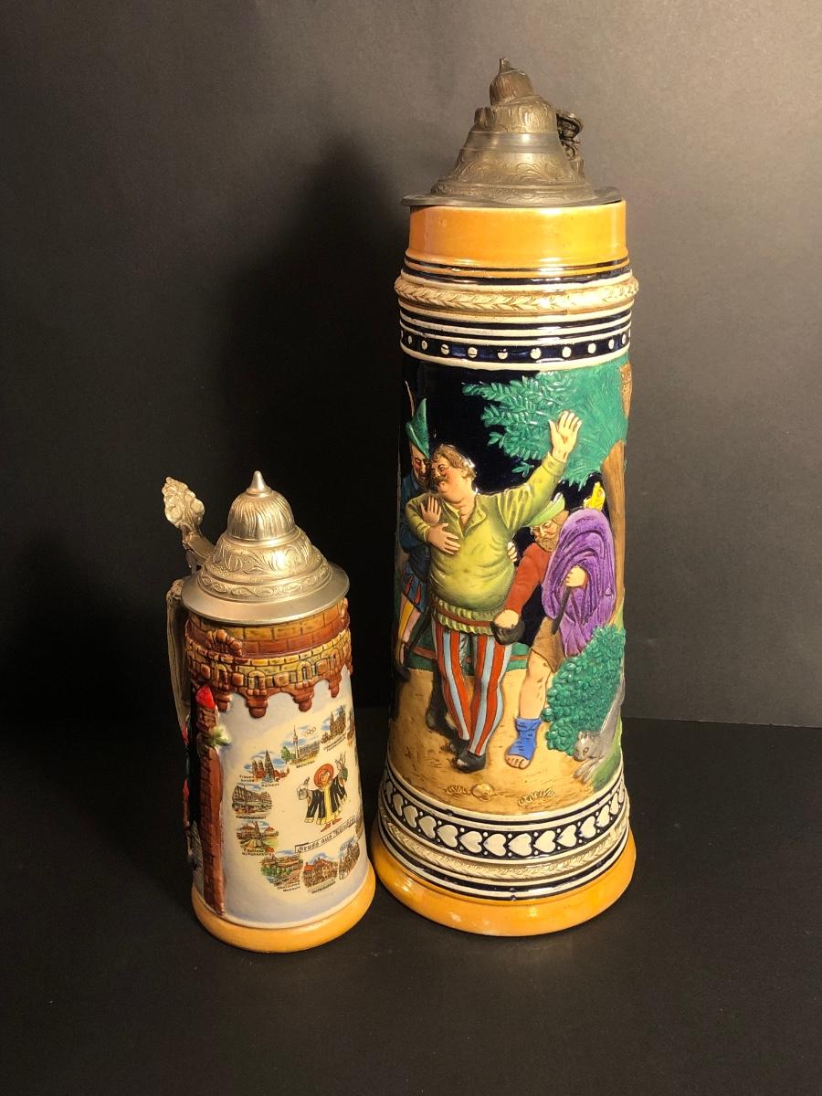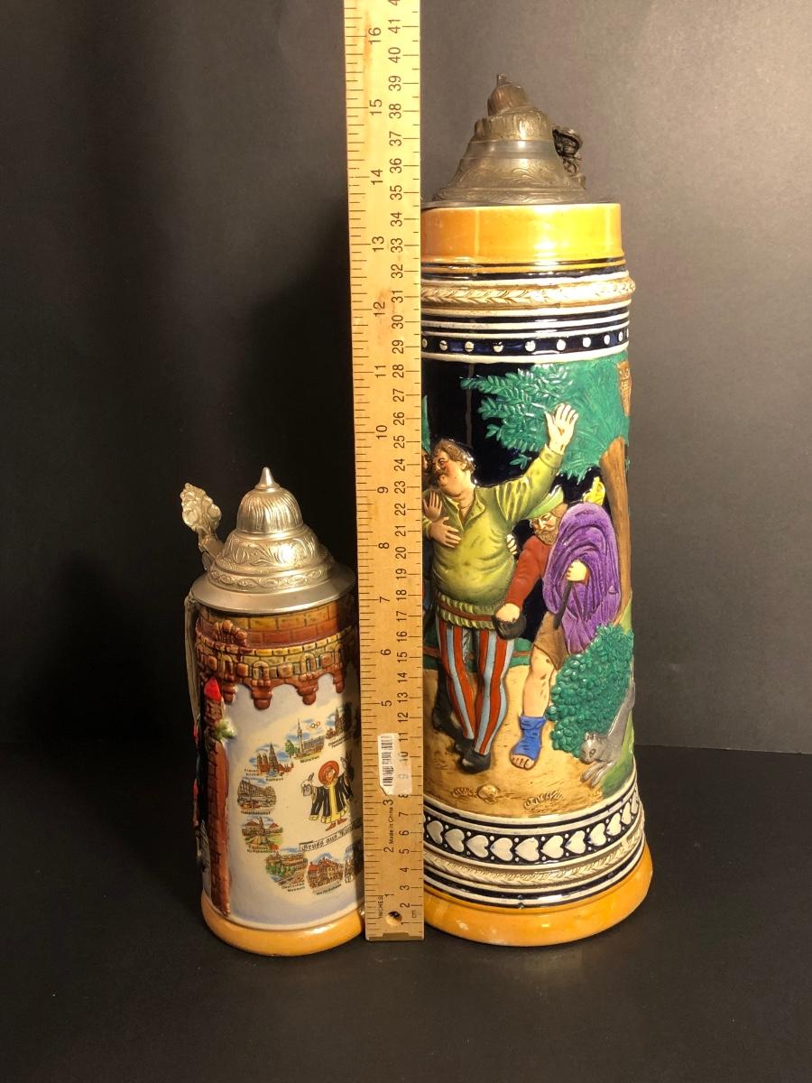 LOT 284B: German Beer Steins - 15.5" & 9" Tall