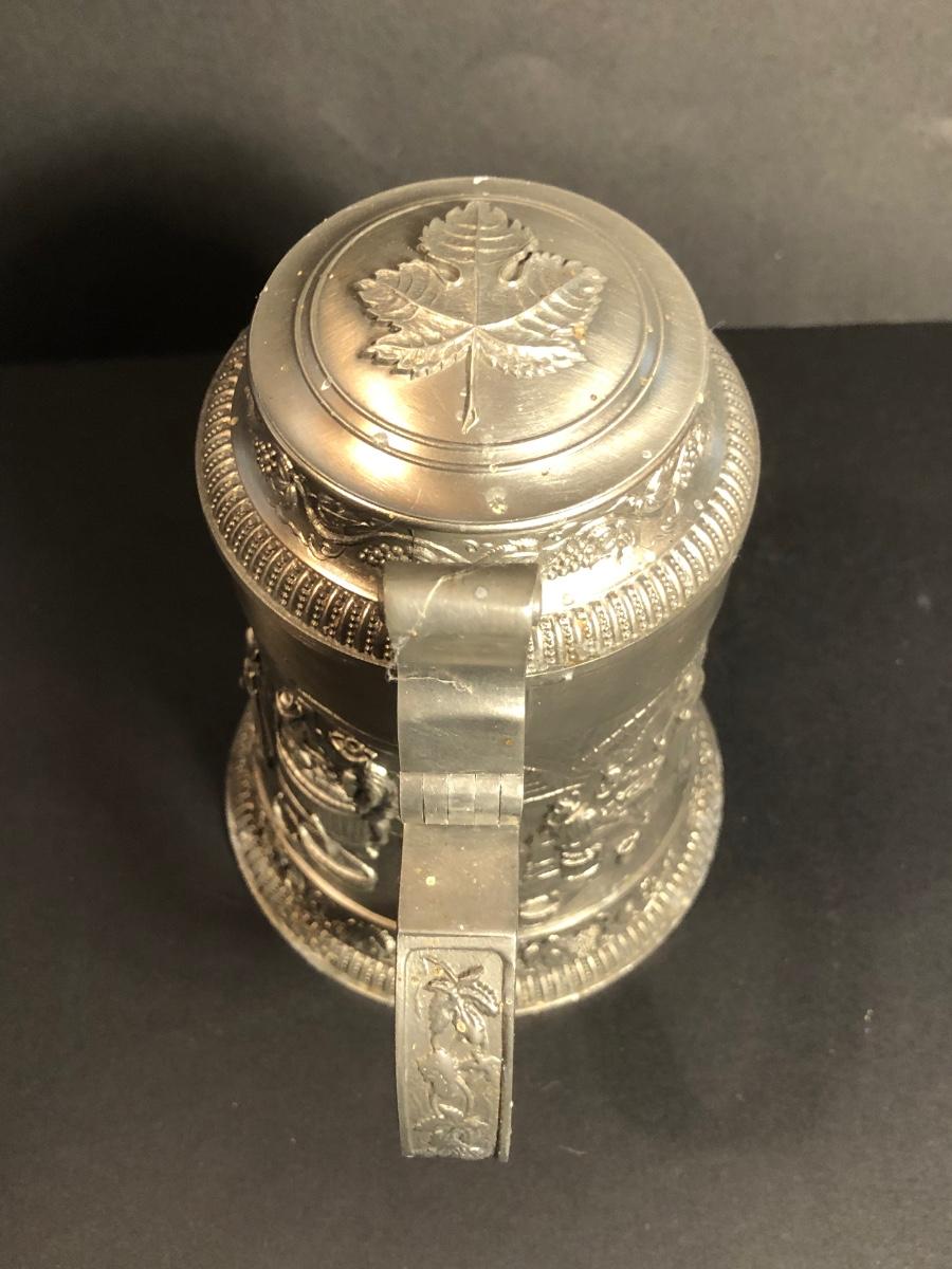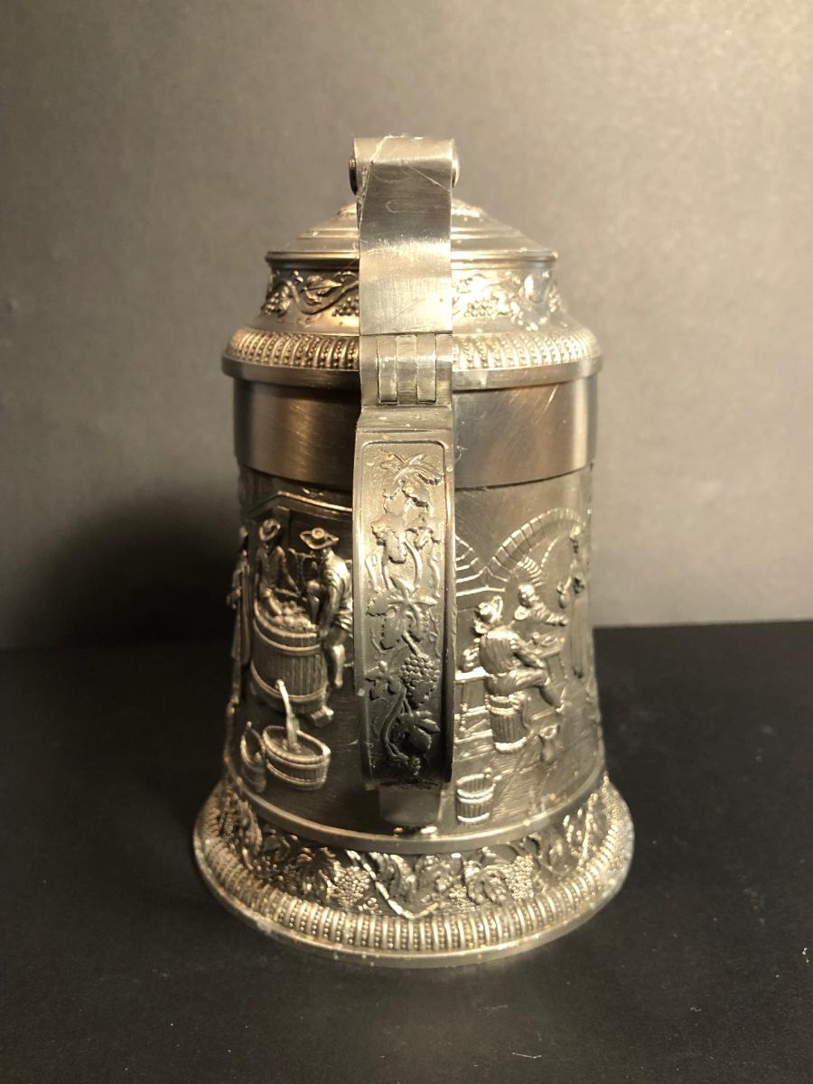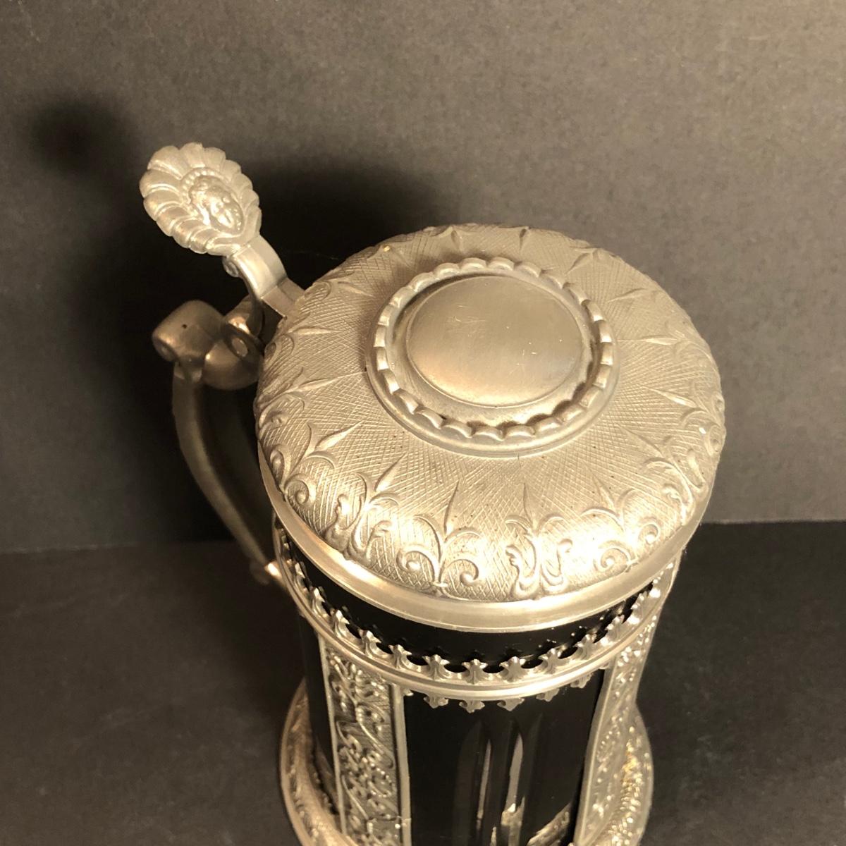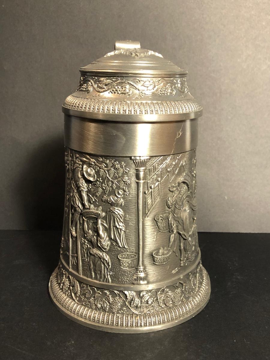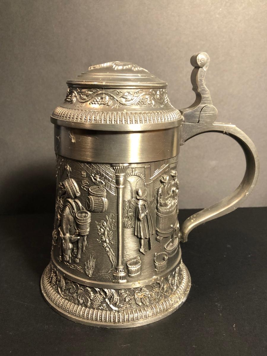 LOT 285B: Vintage Green Gerz Stein, Hand Painted Radford England Pitcher, Vintage House of Global Art Glass/Metal Stein & Metal Stein marked "SKS-Zinn"