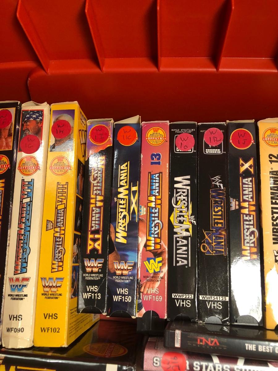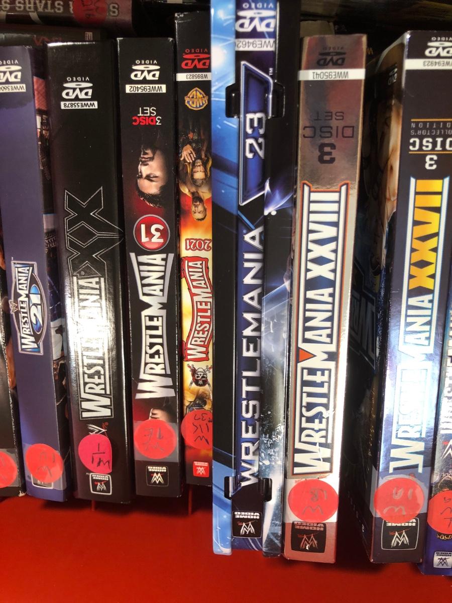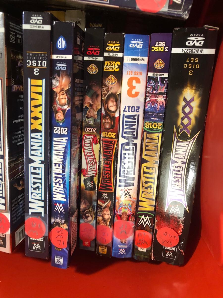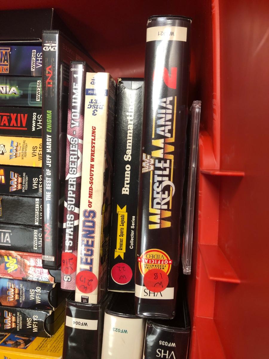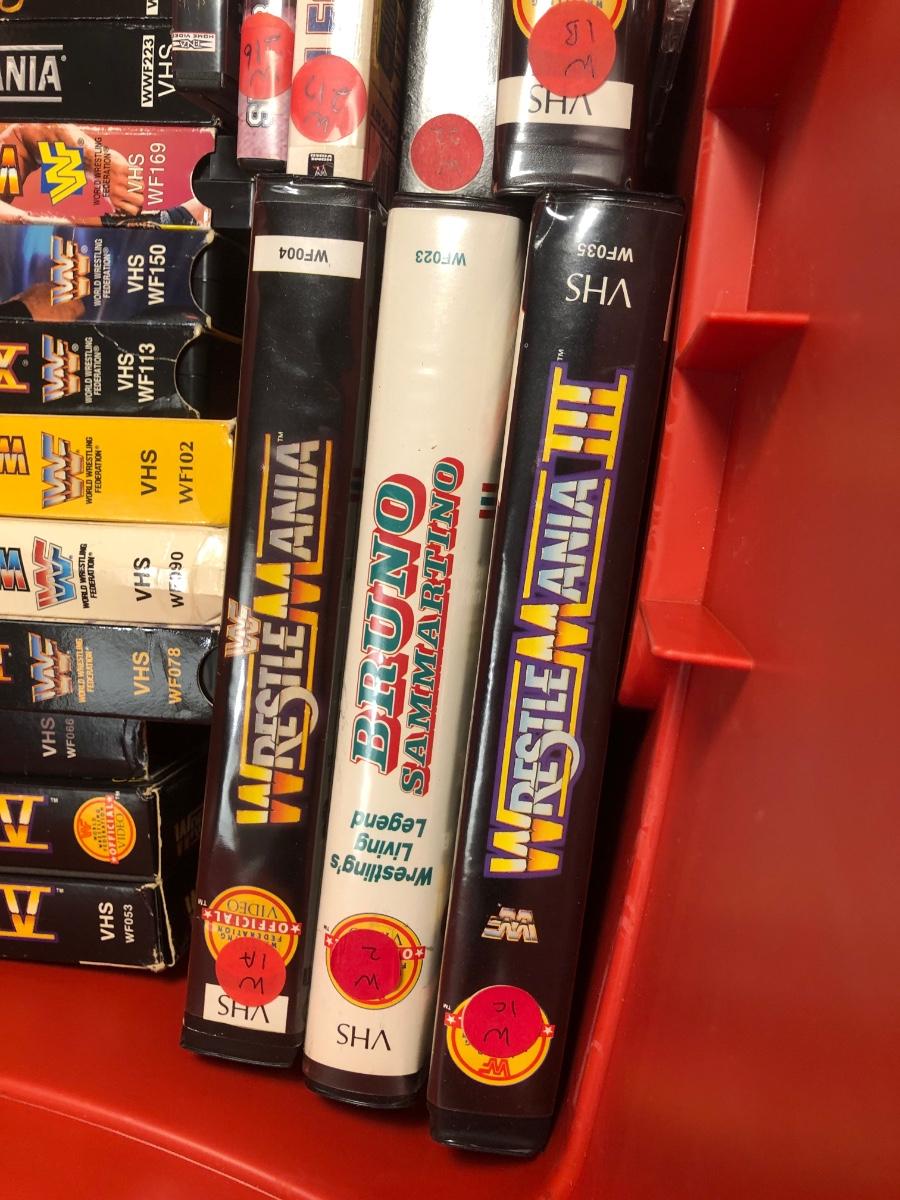 LOT 293B: Tub of Wrestling DVDs & VHS - WrestleMania & More