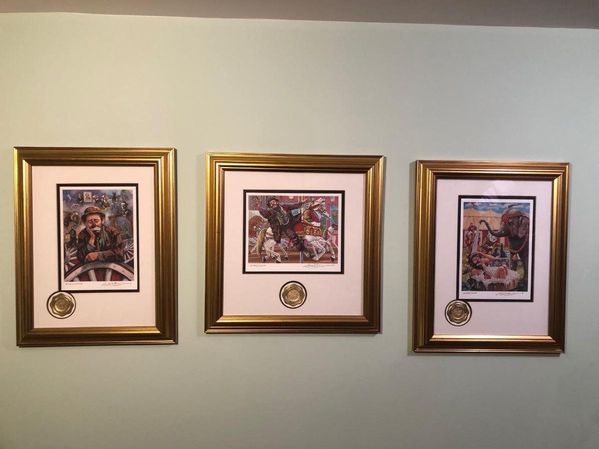 LOT 295B: Framed Signed Emmett Kelly Original Circus Collection Leighton Jones Lithographs
