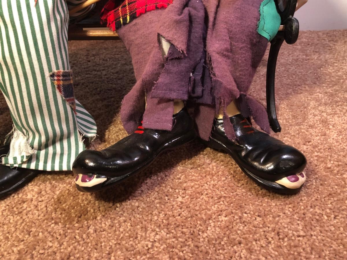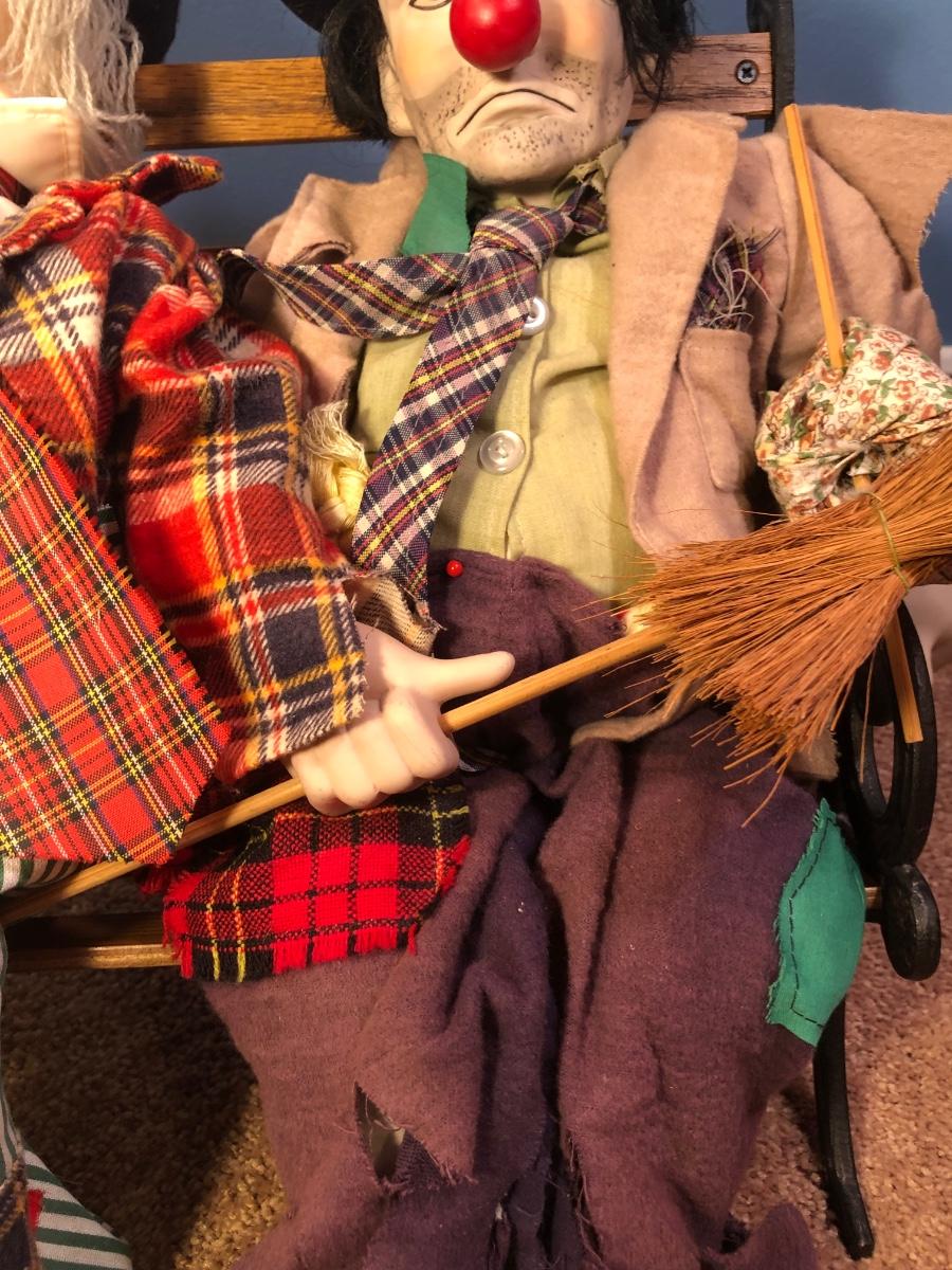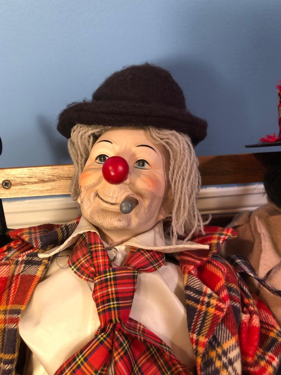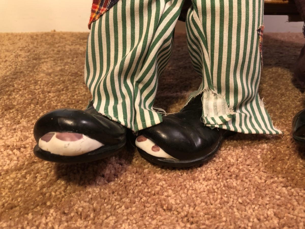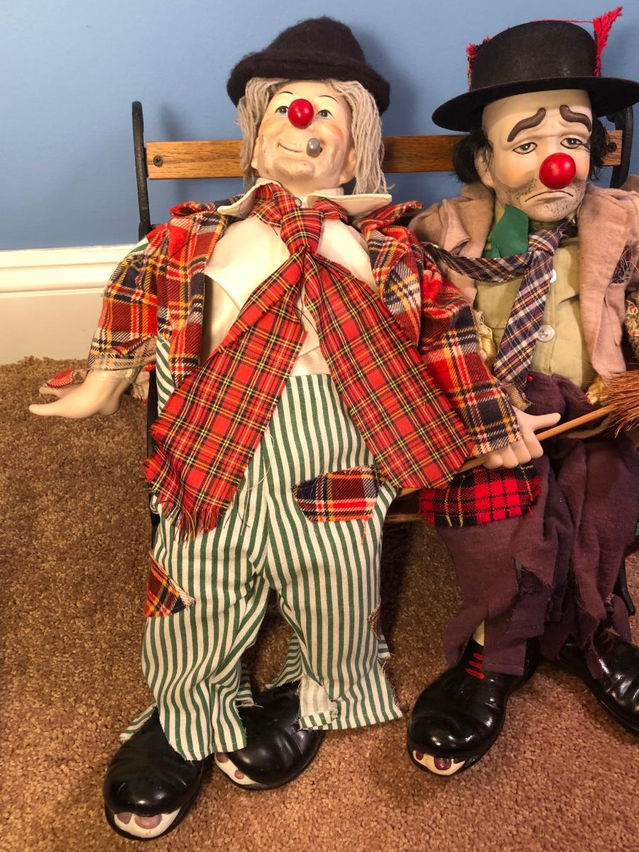 LOT 297B: Framed Signed Emmett Kelly Original Circus Collection Leighton Jones Lithographs & Ceramic / Cloth Clowns on Miniature Bench