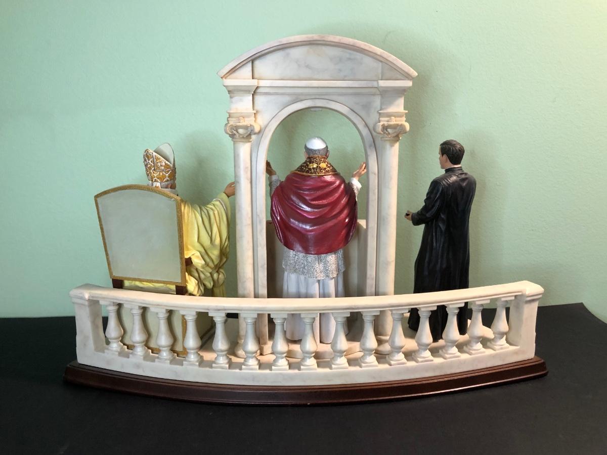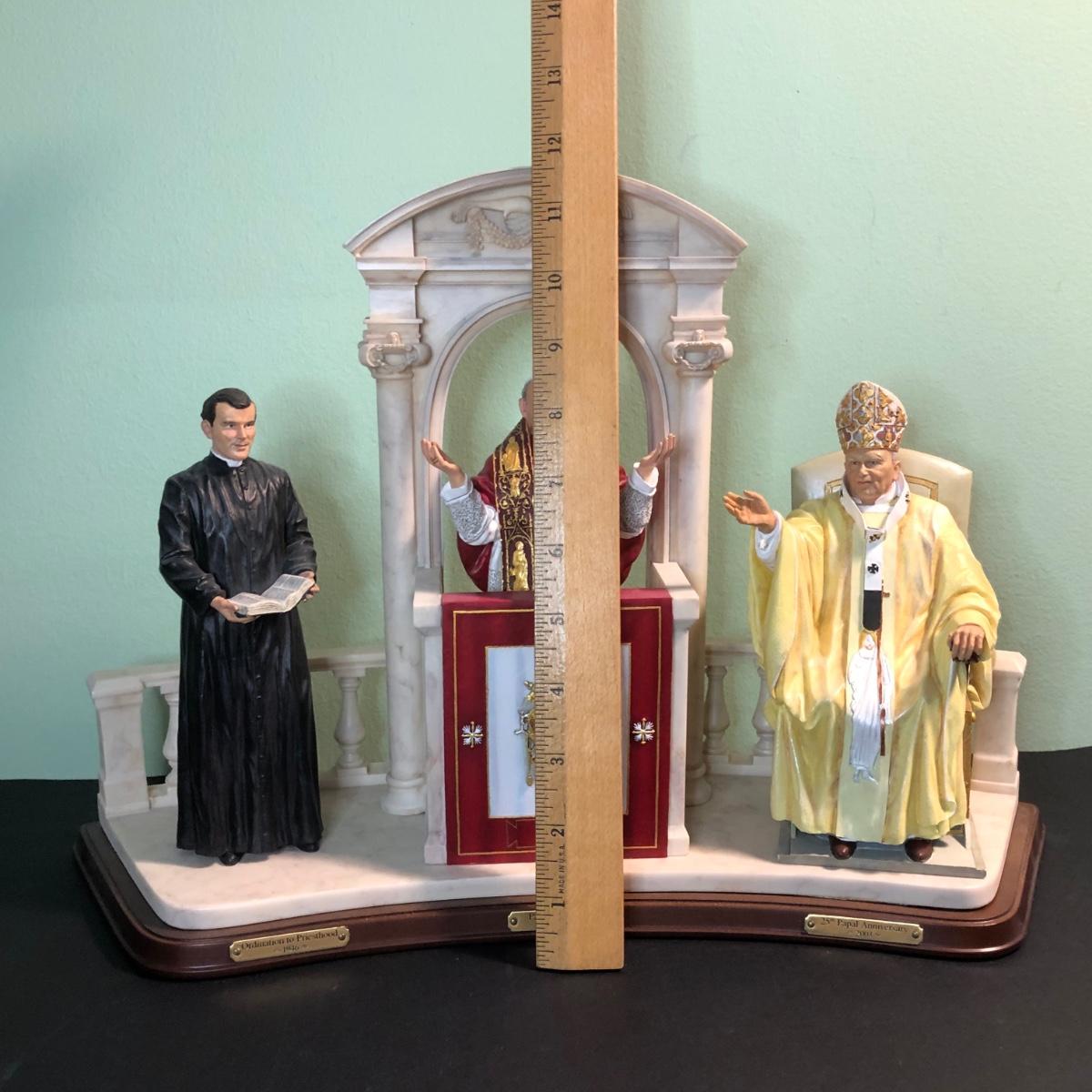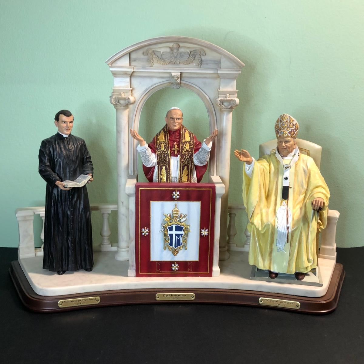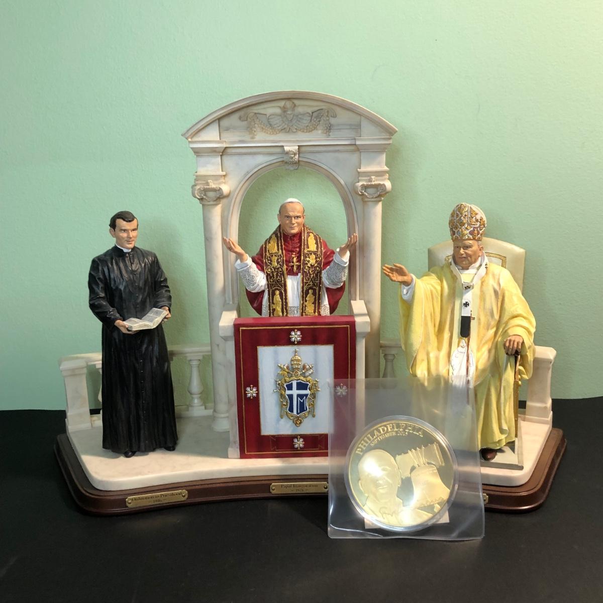 LOT 300MBC: Pope John Paul II Triple Statue by The Danbury Mint & 2015 Pope Francis Visit to Philadelphia Commemorative Coin