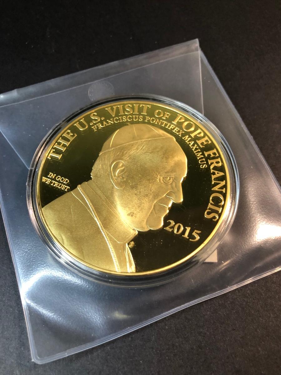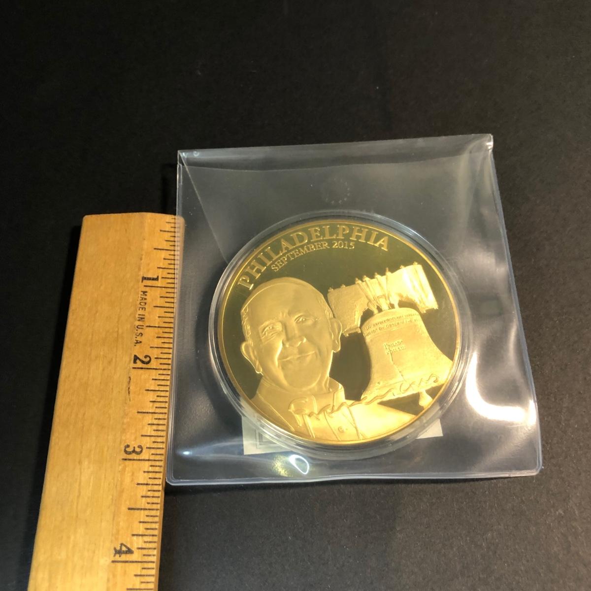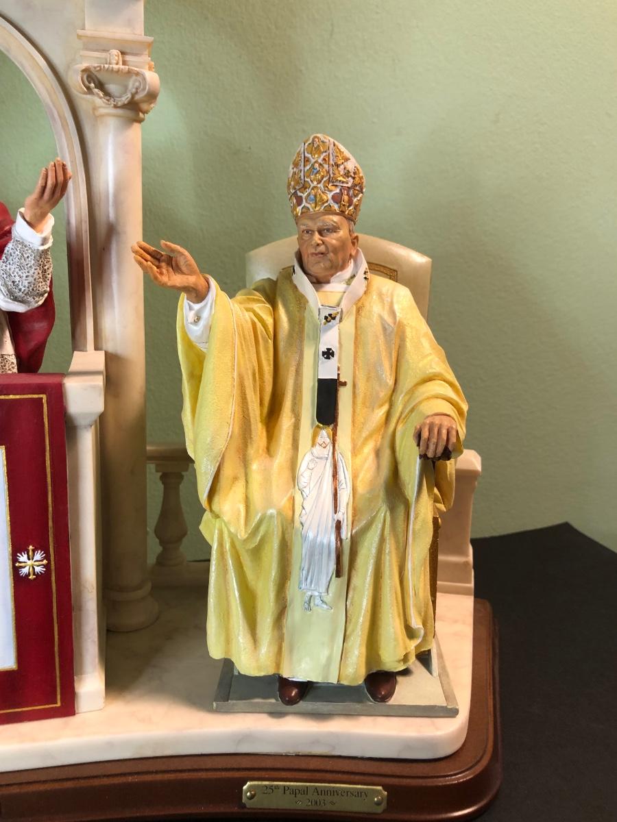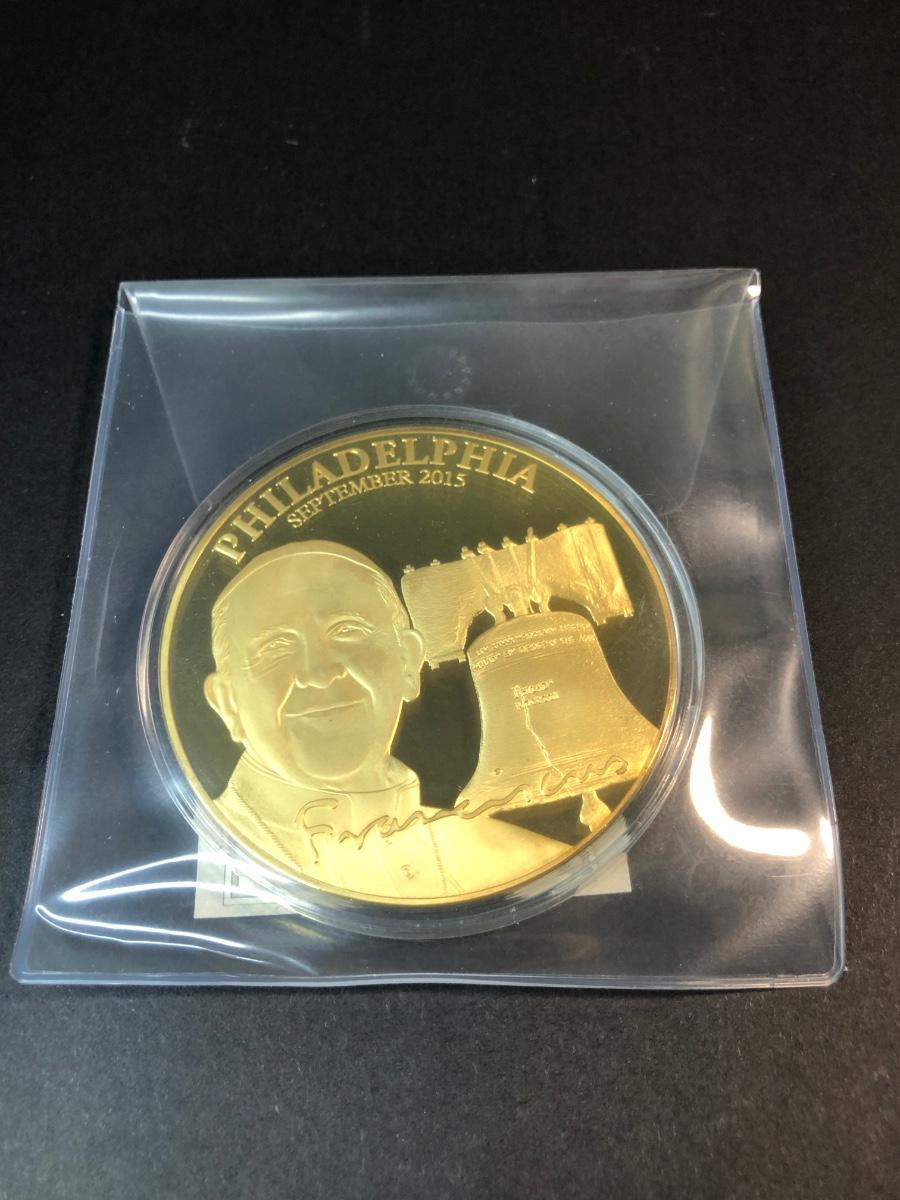 LOT 300MBC: Pope John Paul II Triple Statue by The Danbury Mint & 2015 Pope Francis Visit to Philadelphia Commemorative Coin