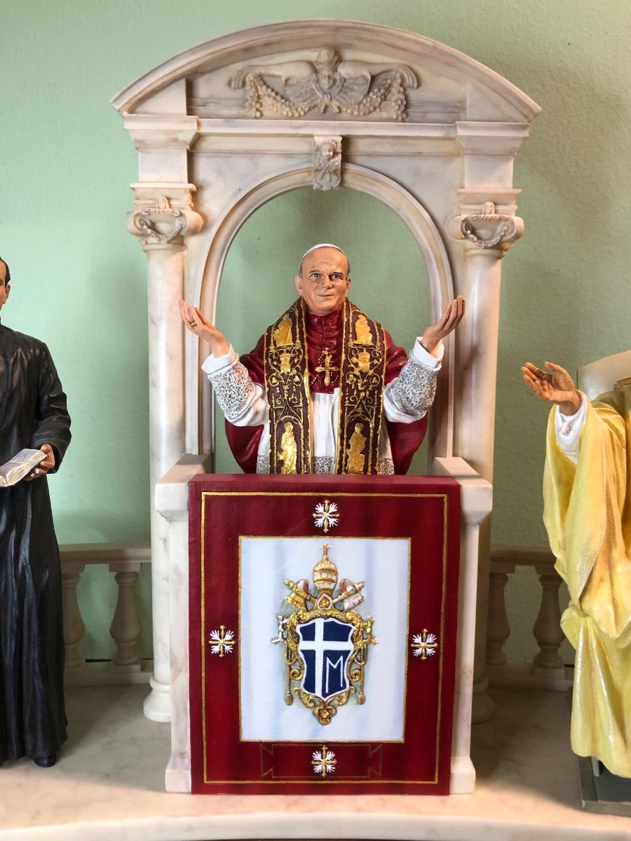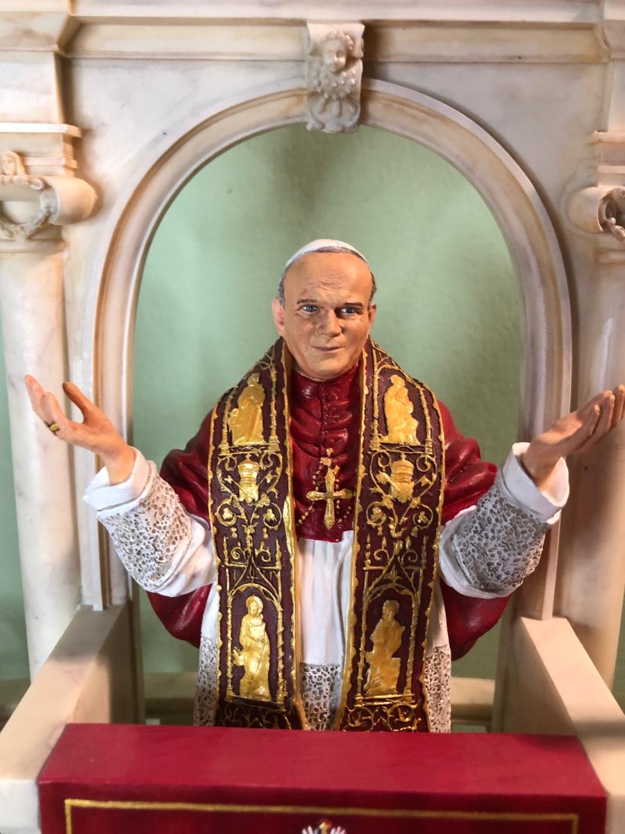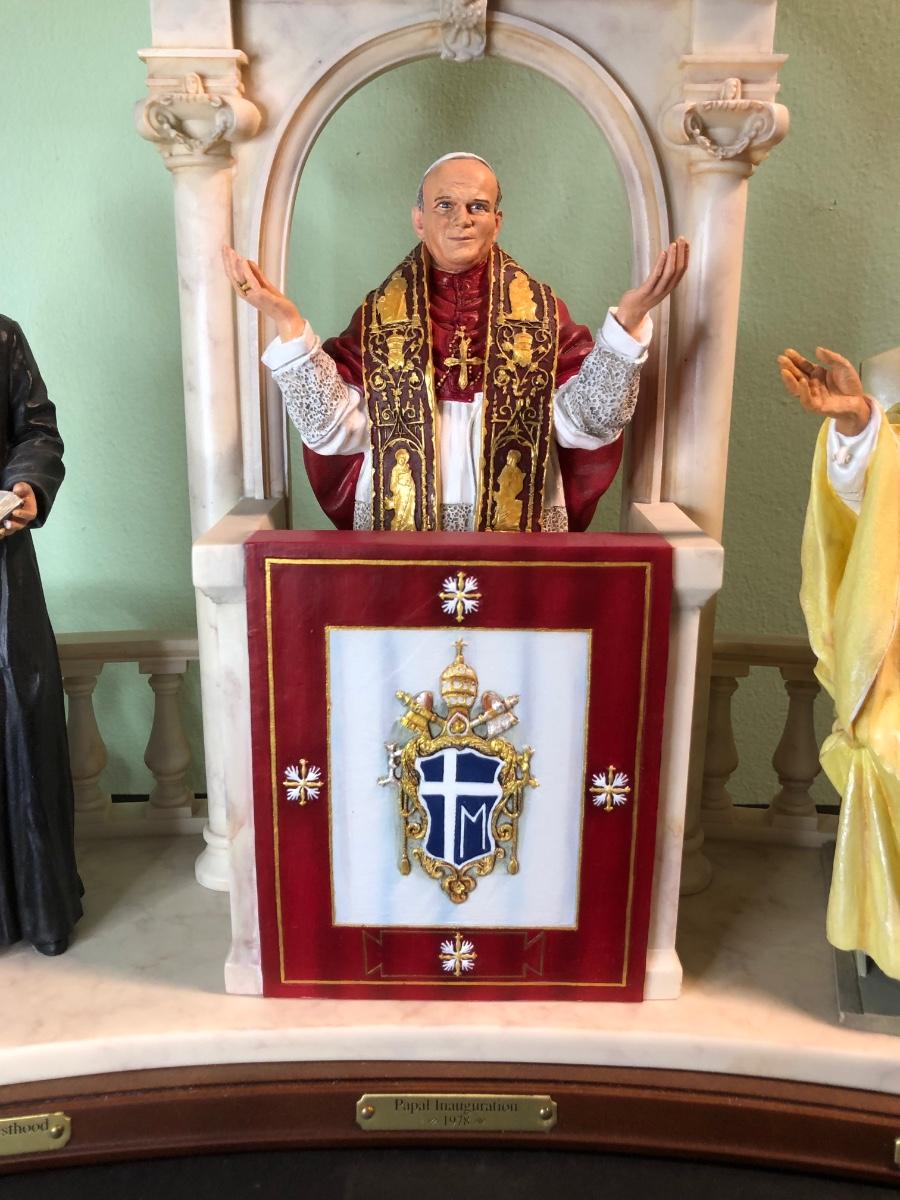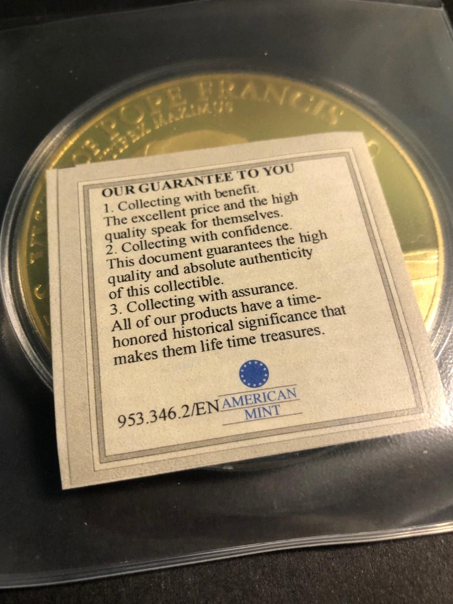 LOT 300MBC: Pope John Paul II Triple Statue by The Danbury Mint & 2015 Pope Francis Visit to Philadelphia Commemorative Coin