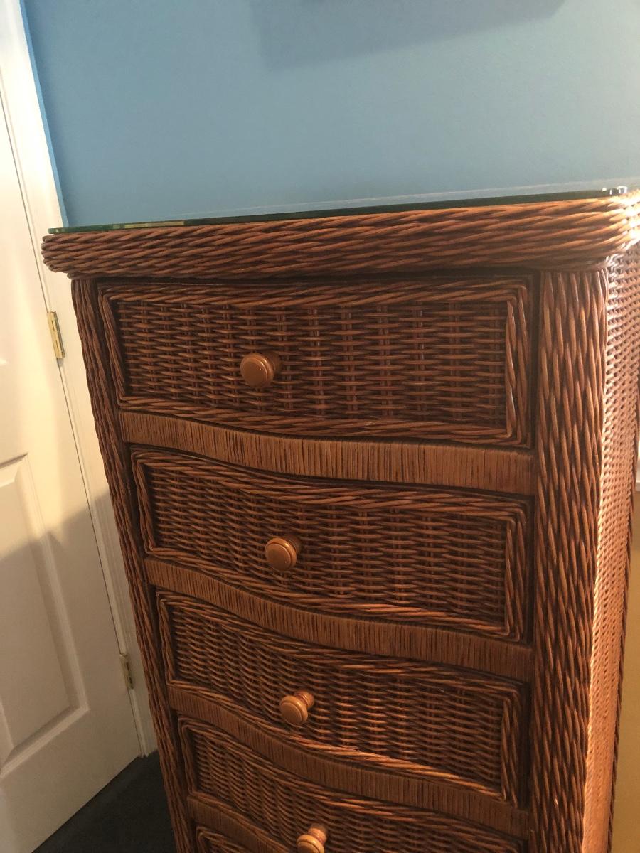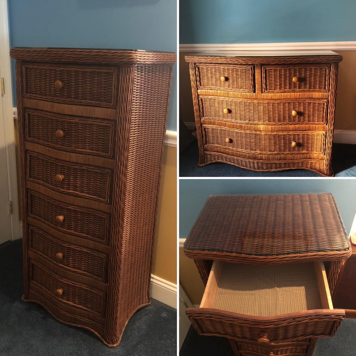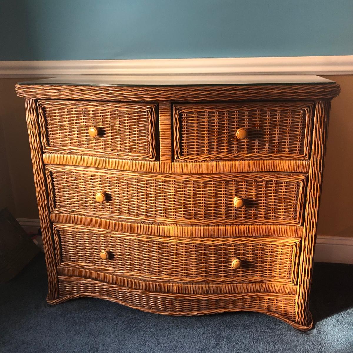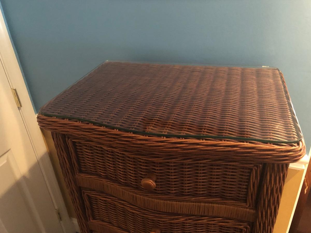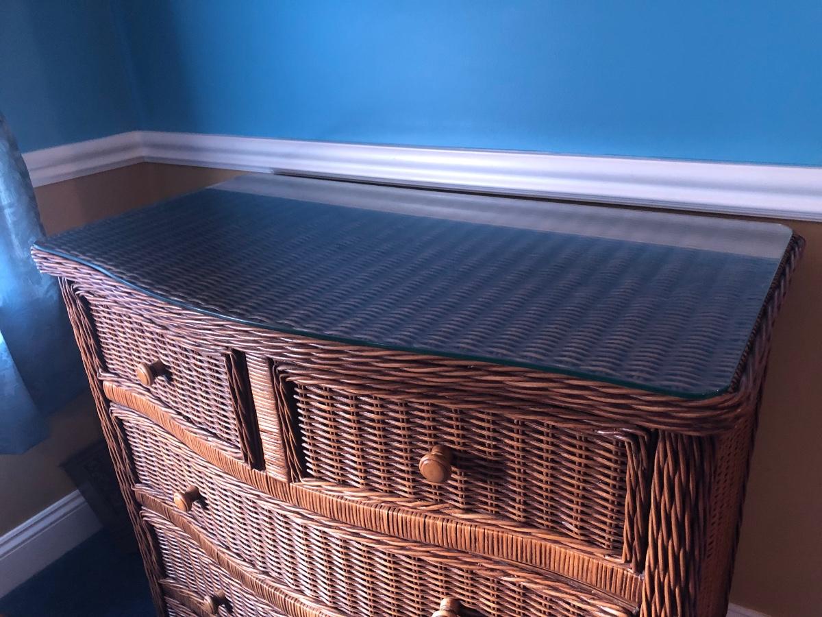 LOT 308MB: Glass Top Wicker Furniture Pieces (2)