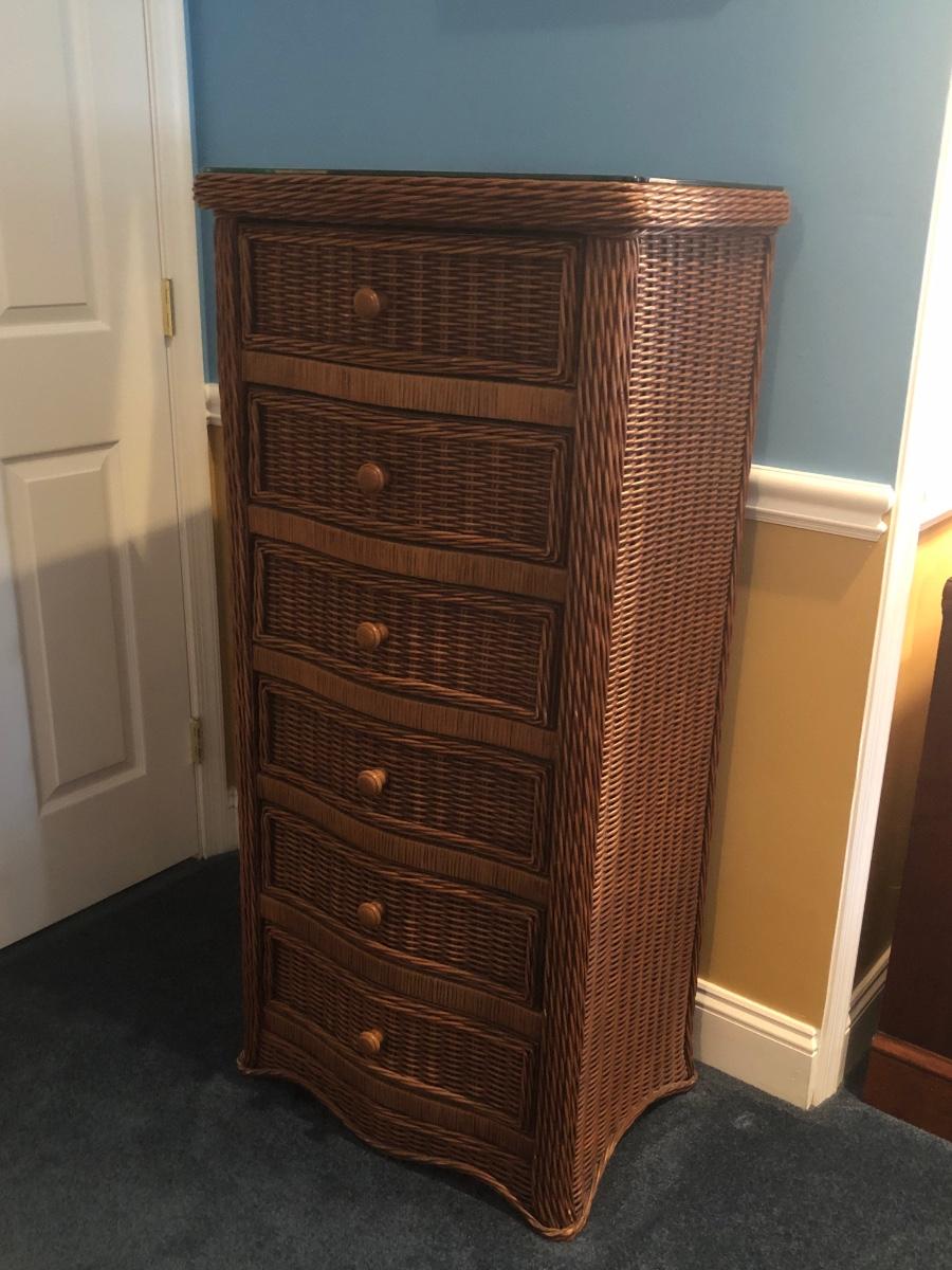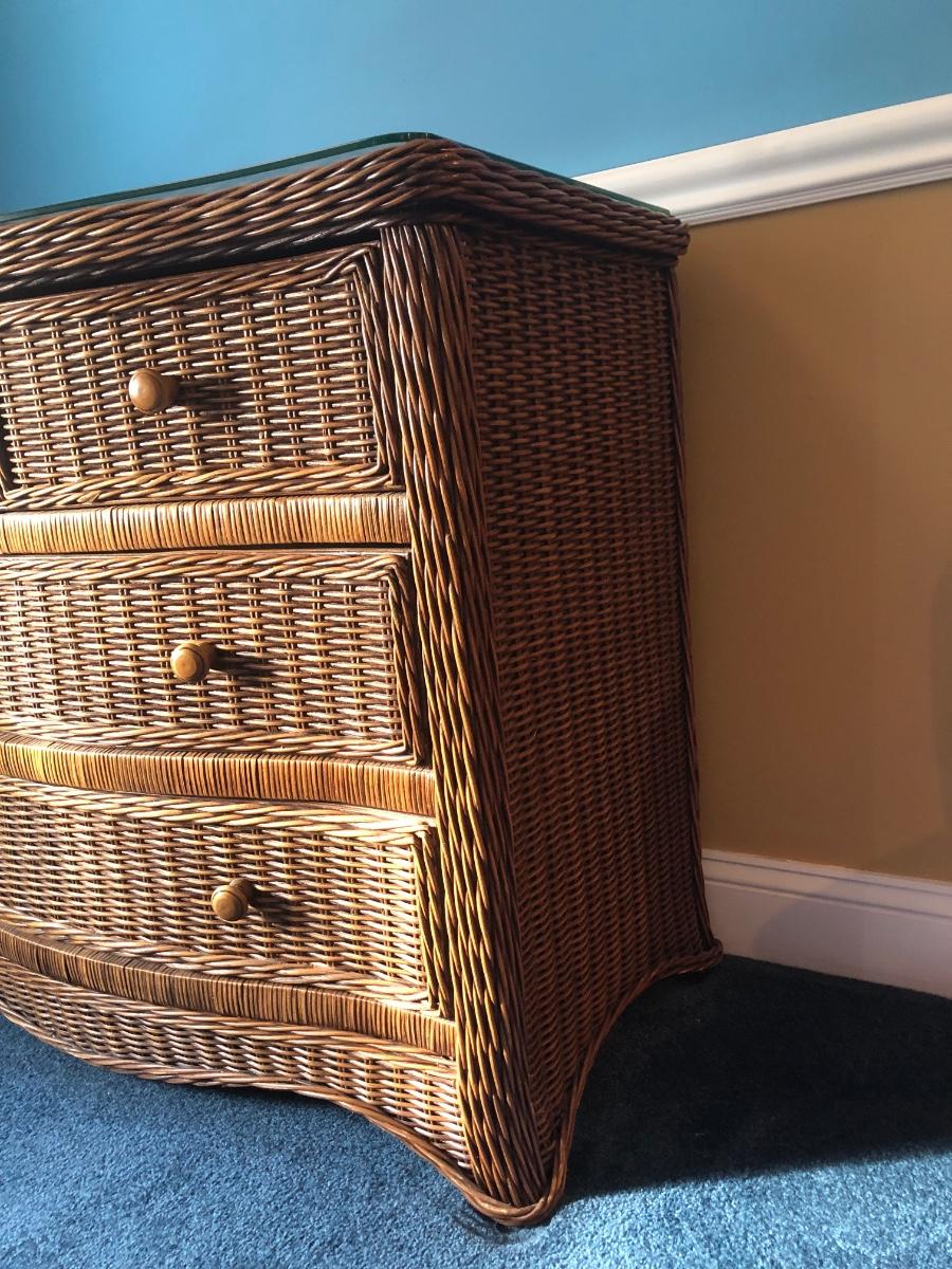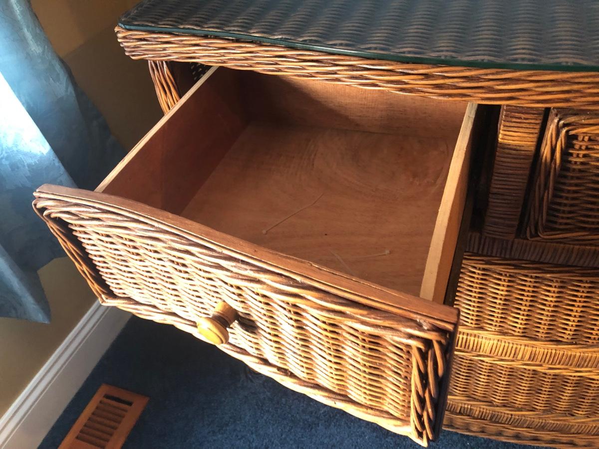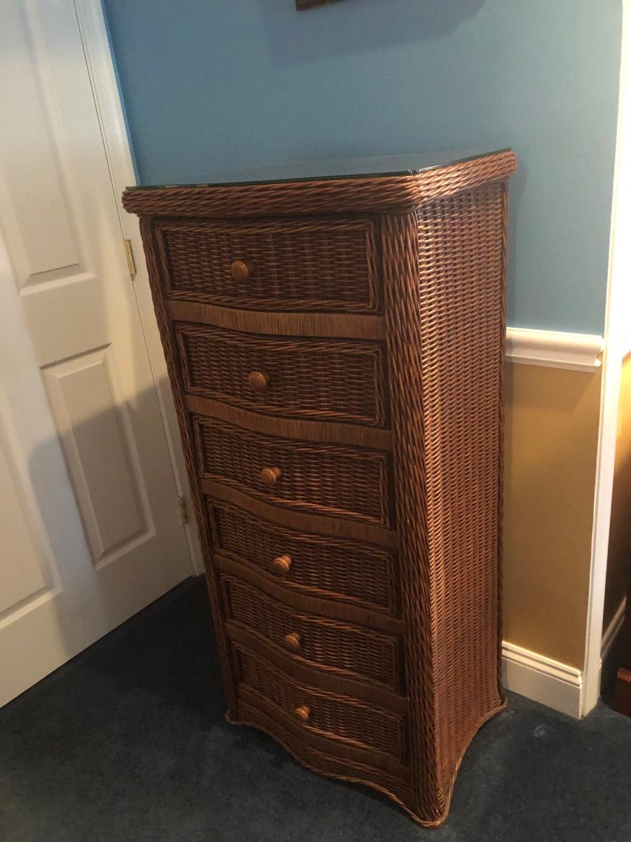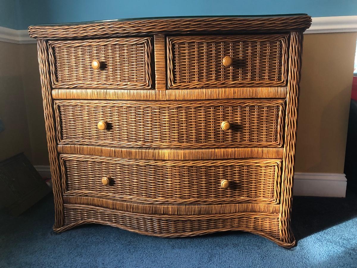 LOT 308MB: Glass Top Wicker Furniture Pieces (2)