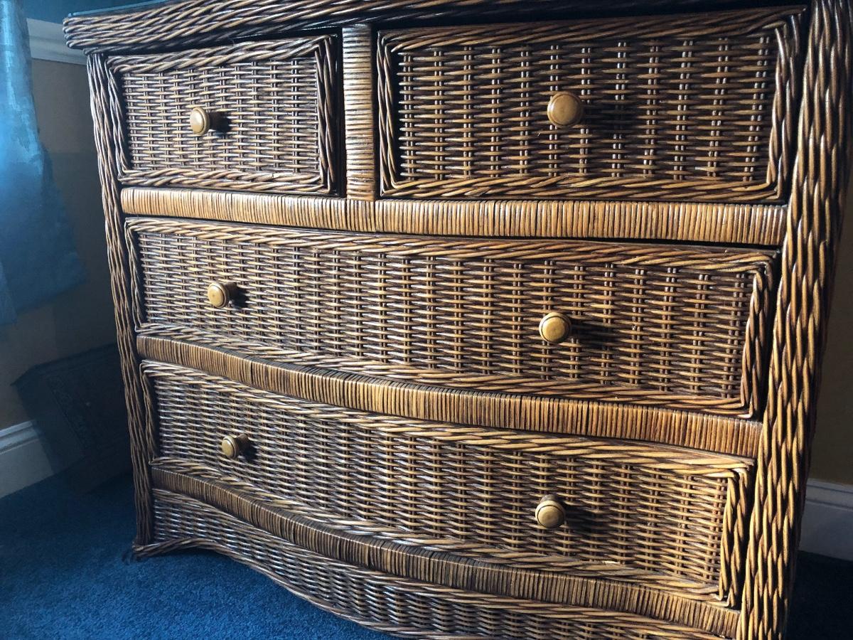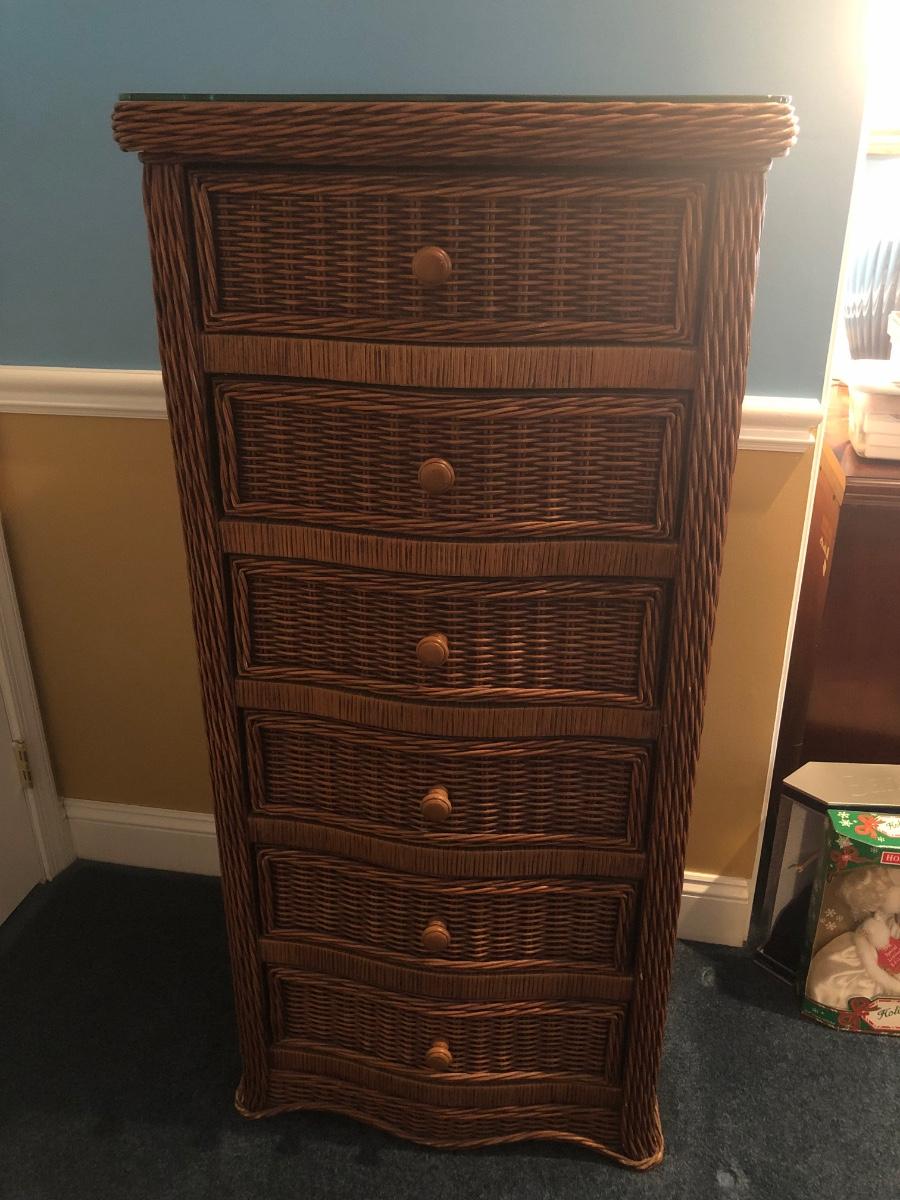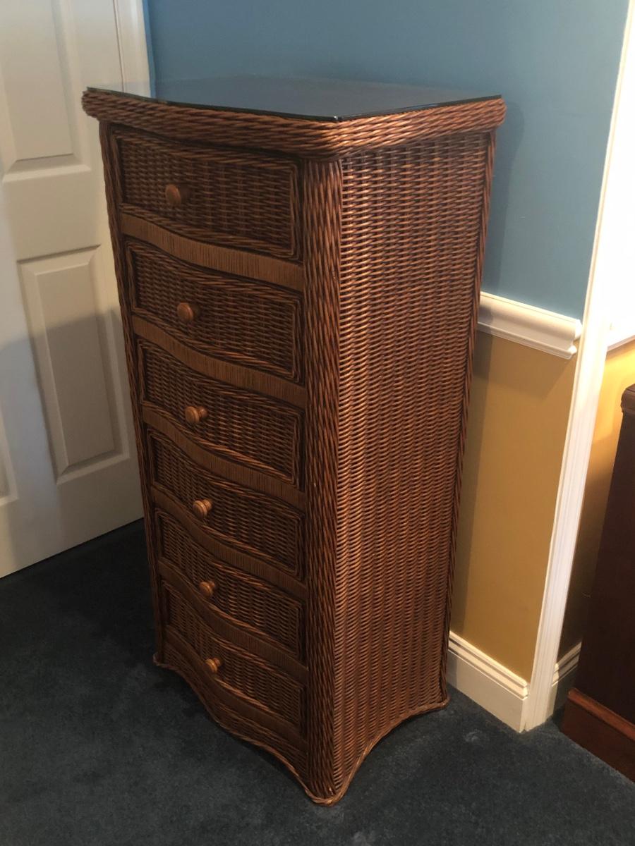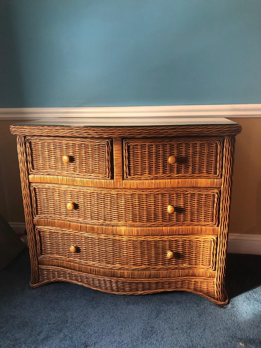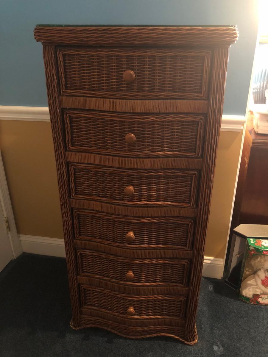 LOT 308MB: Glass Top Wicker Furniture Pieces (2)