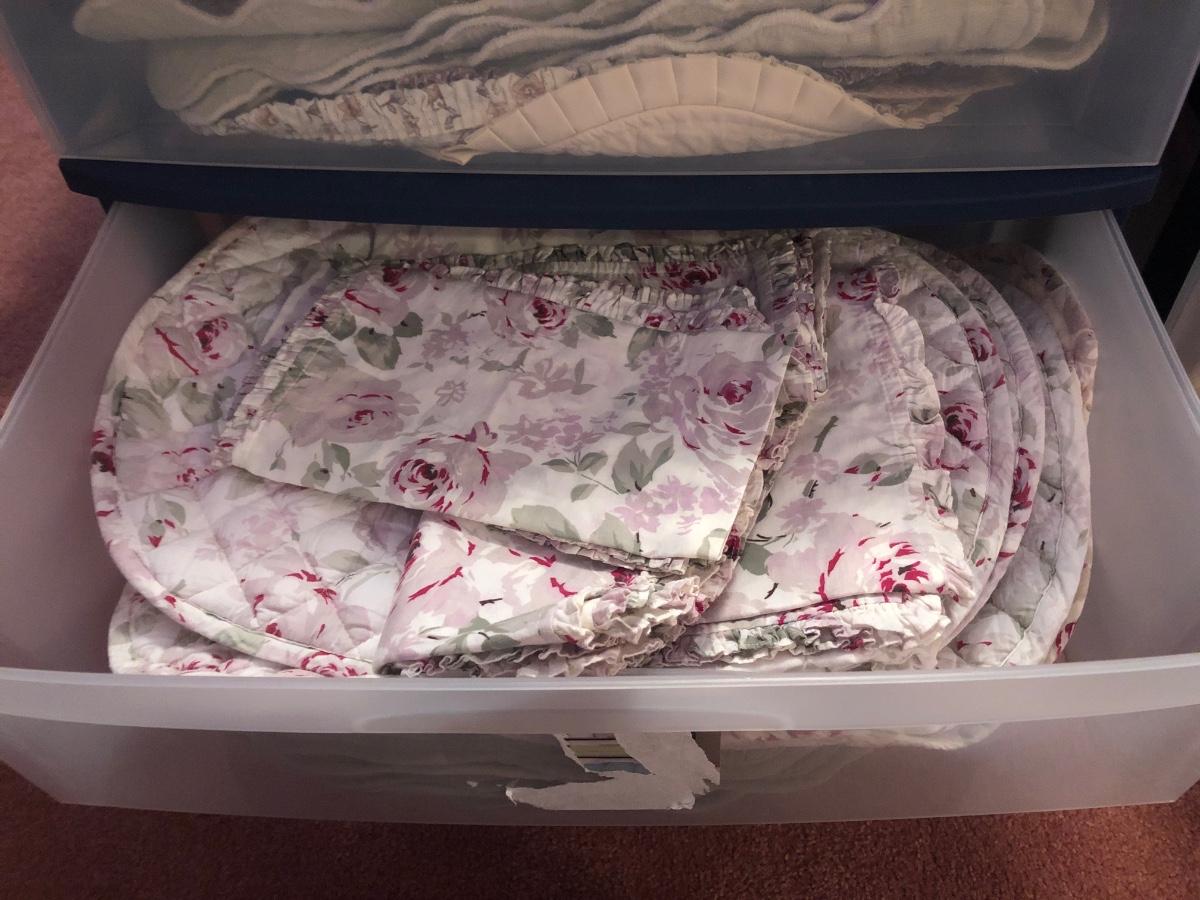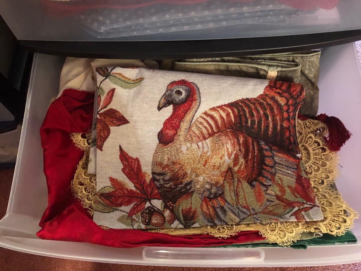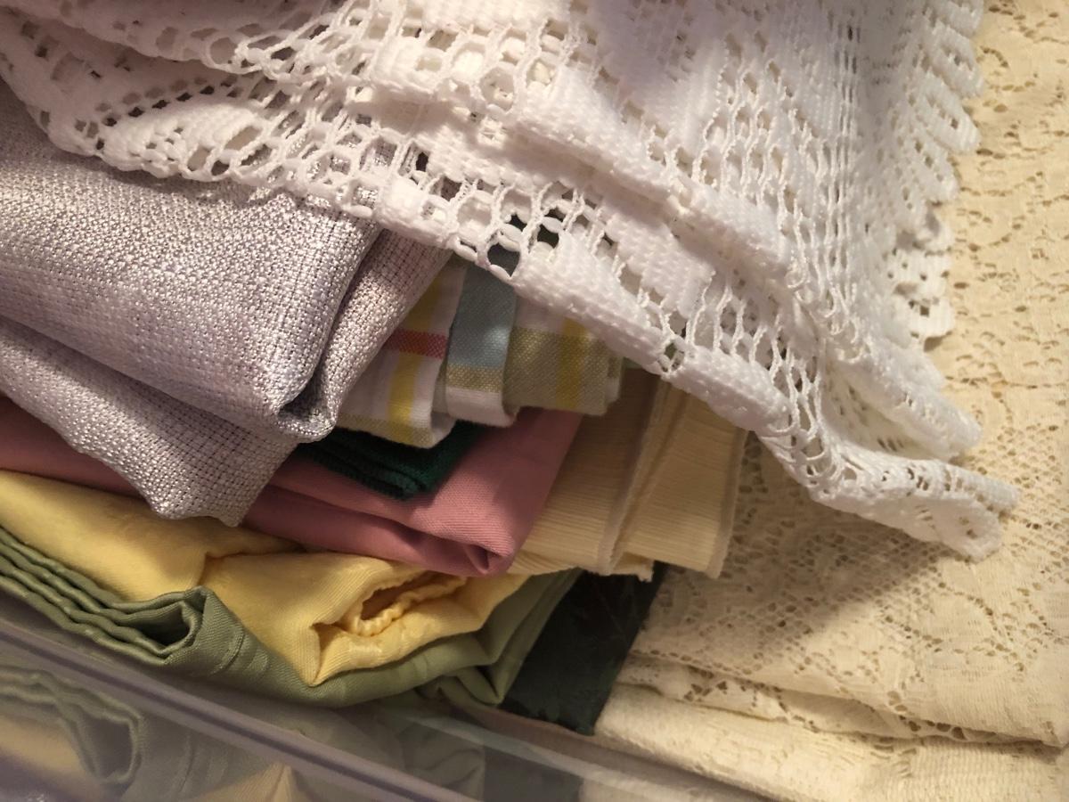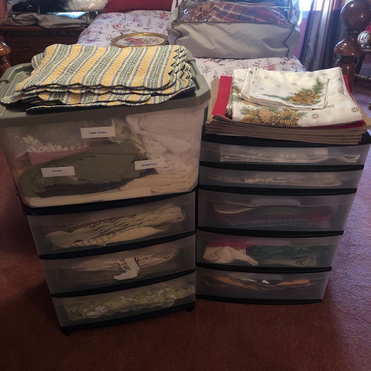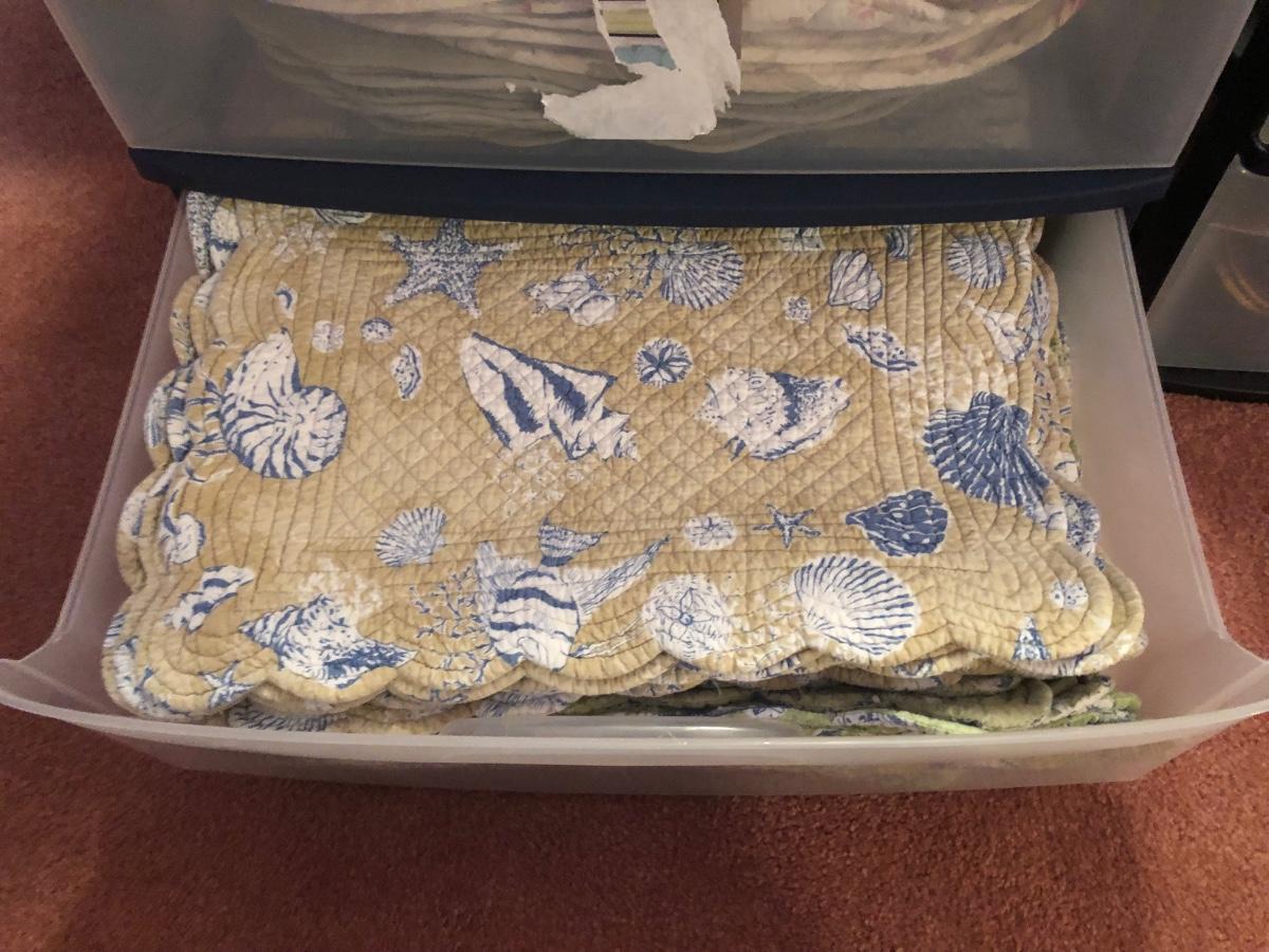 LOT 311PB: Steralite Plastic Drawers & Bin FULL of Kitchen & Dining Linens - Placemats, Runners, Tablecloths & More