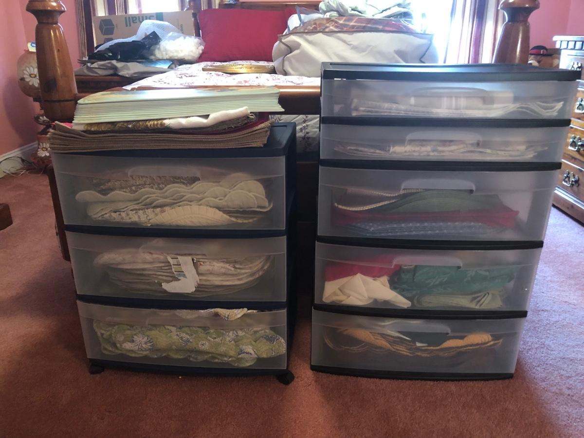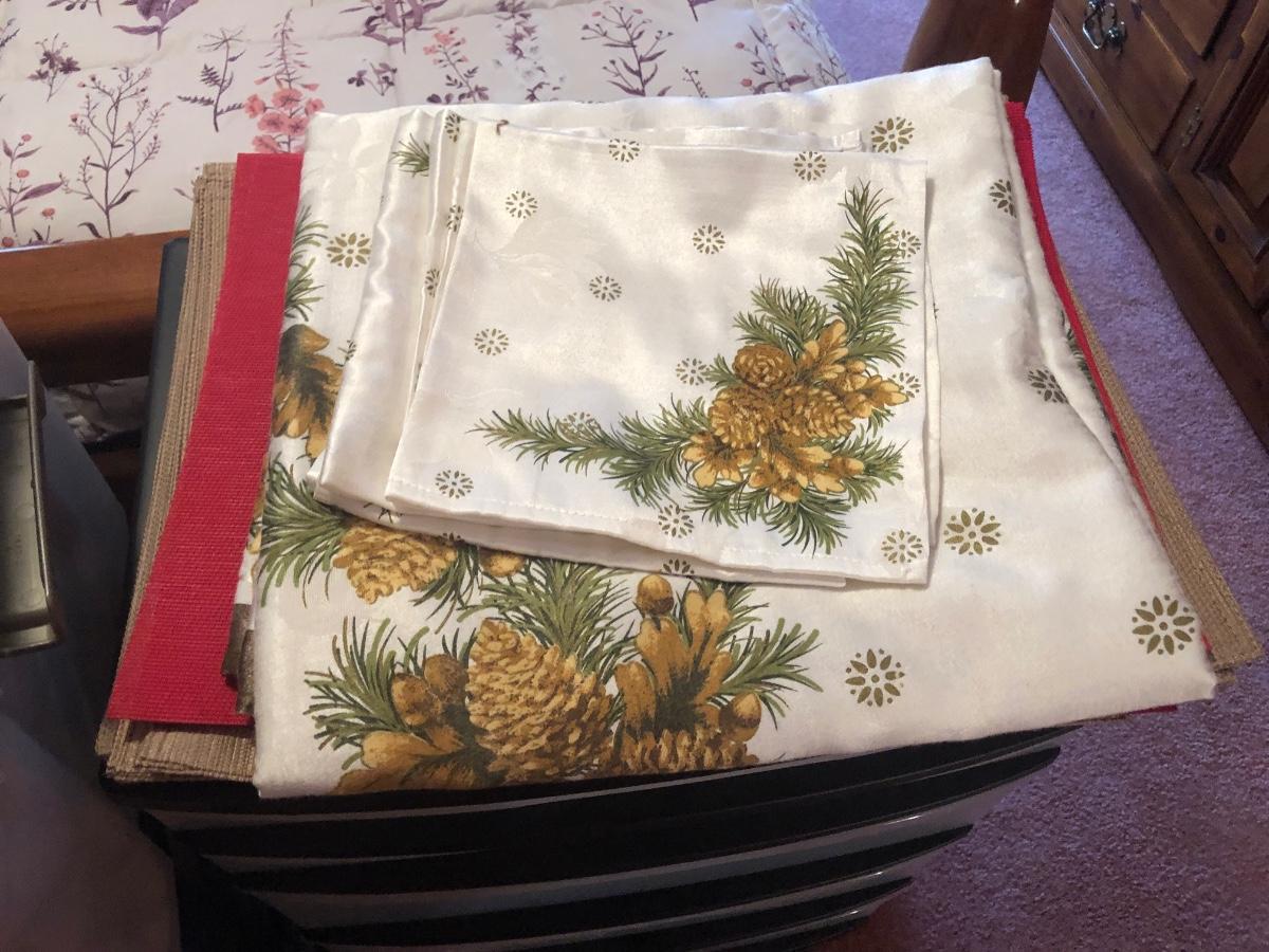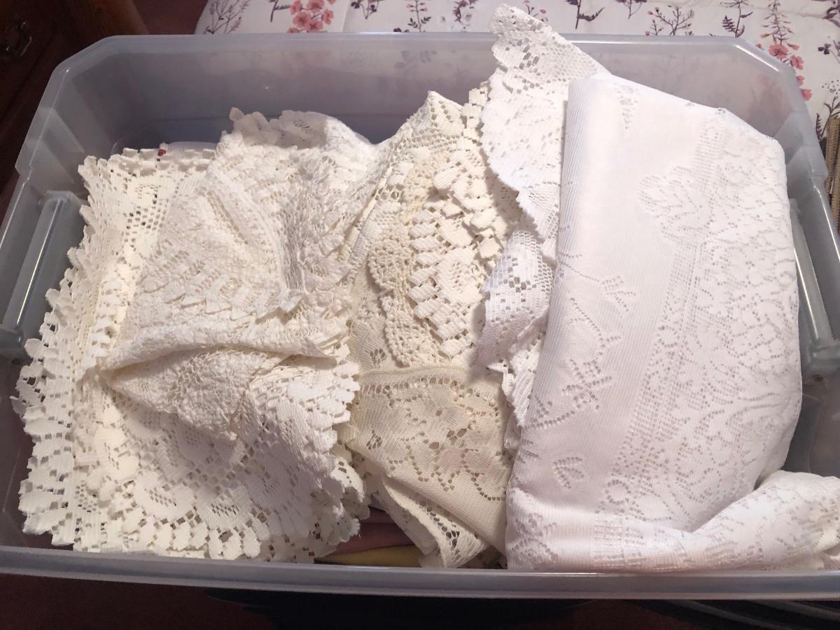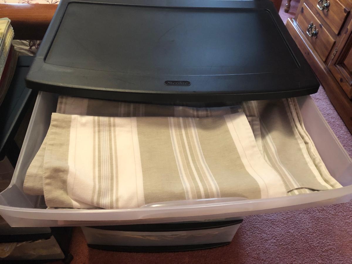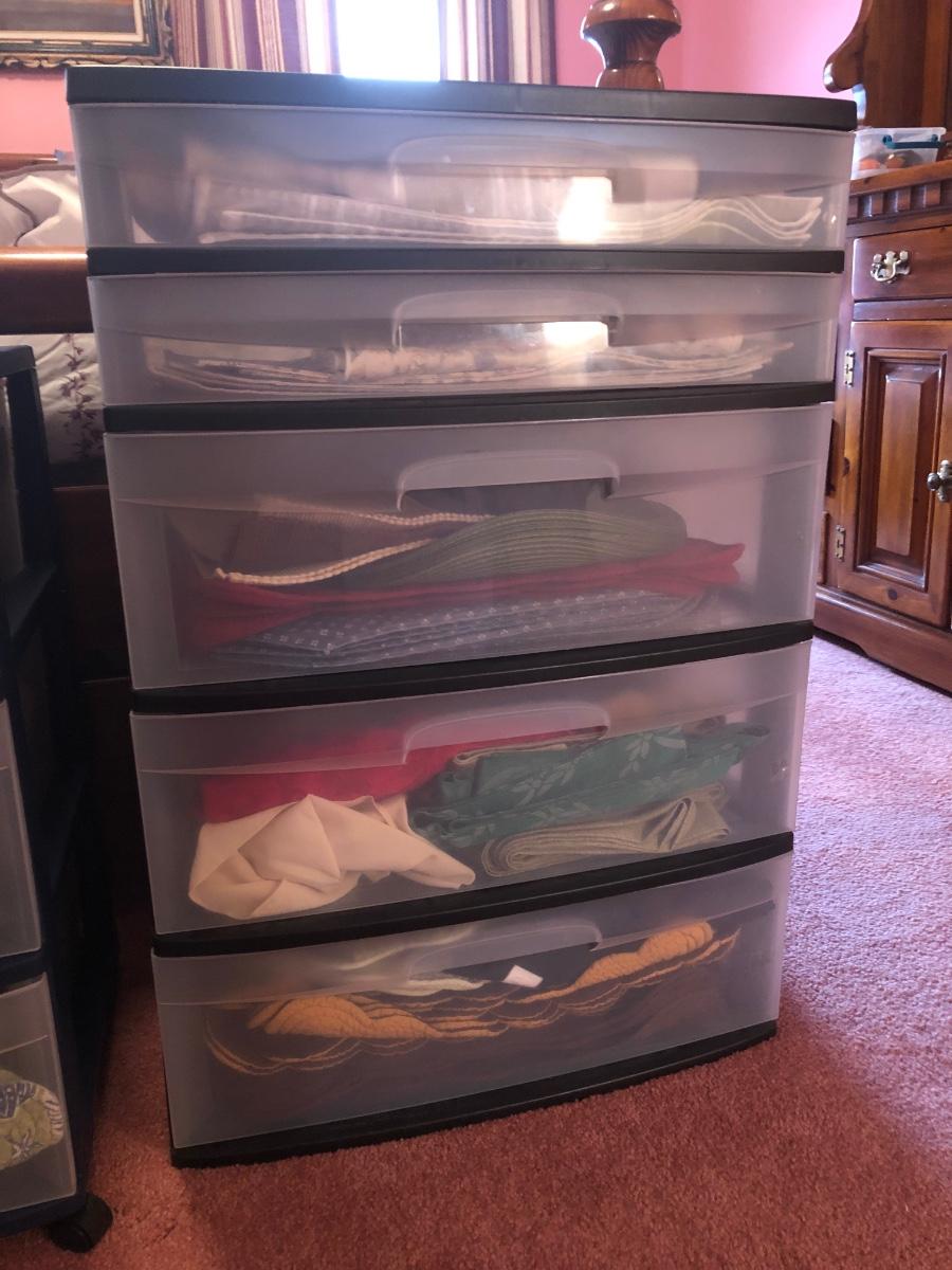 LOT 311PB: Steralite Plastic Drawers & Bin FULL of Kitchen & Dining Linens - Placemats, Runners, Tablecloths & More
