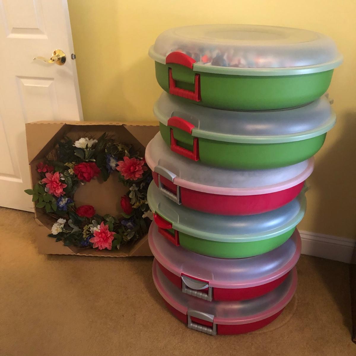 LOT 312FB: Sterilite Wreath Bins w/ Four Wreaths