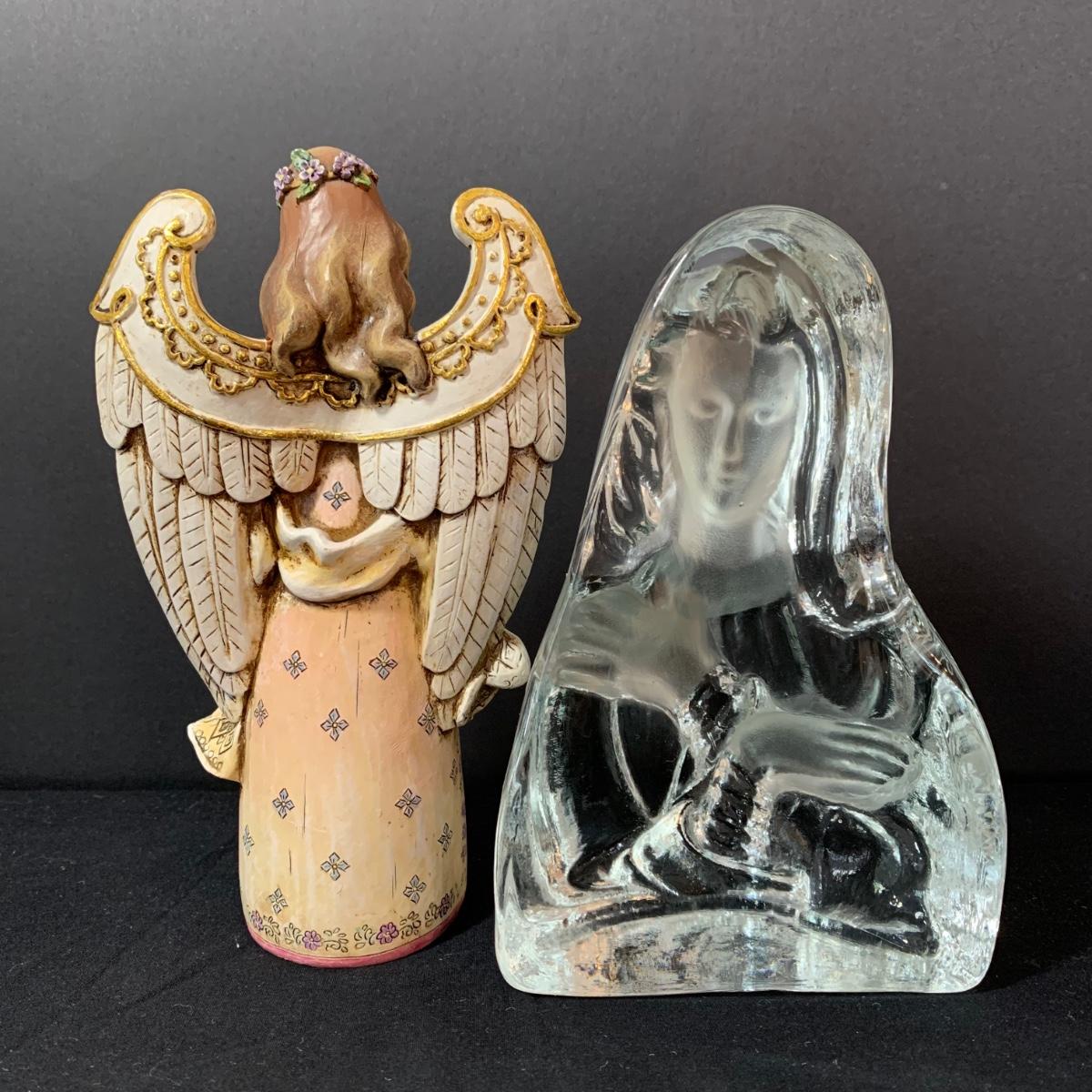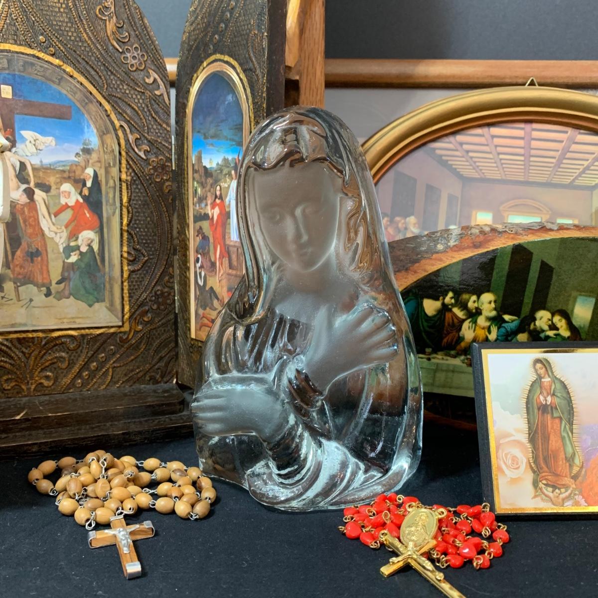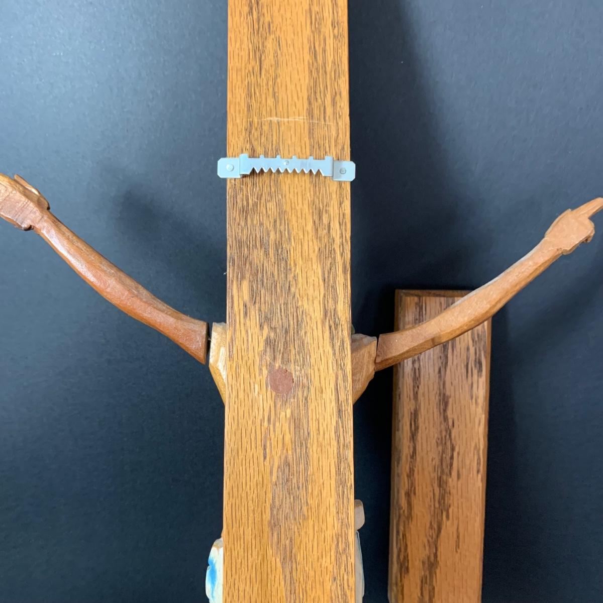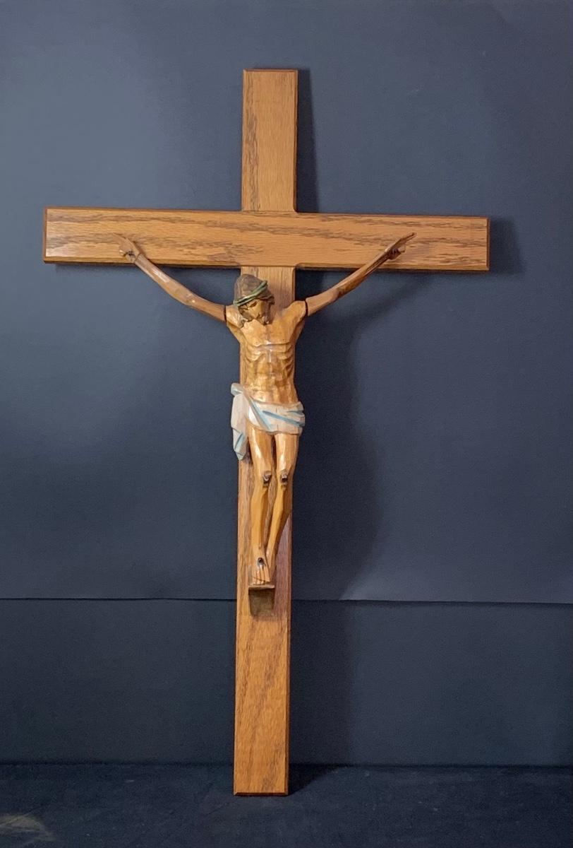 LOT 329K: Religious Collection: Large Wooden Jointed Crucifix, Rosaries, Last Supper Prints, Carved Wooden Sculpture & More
