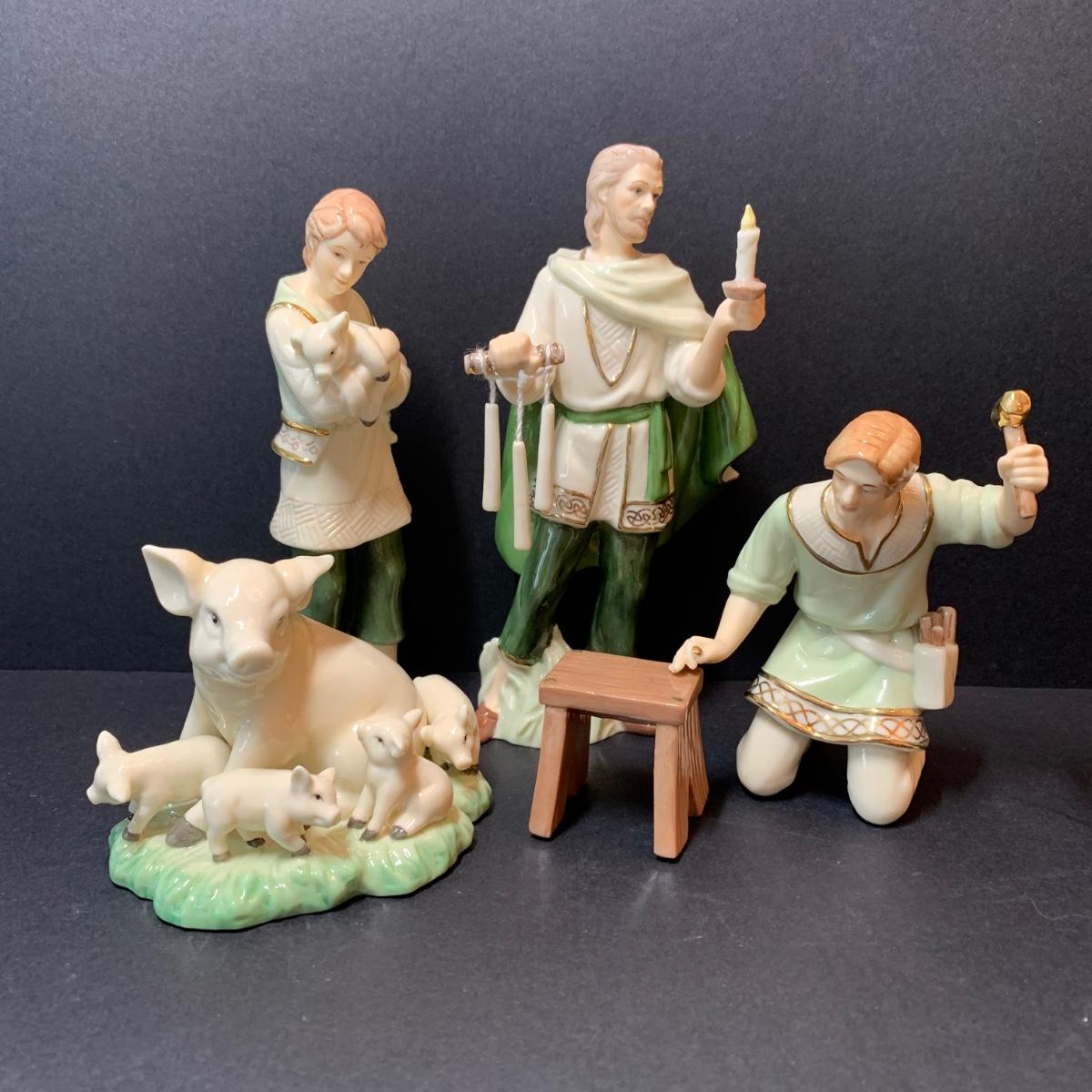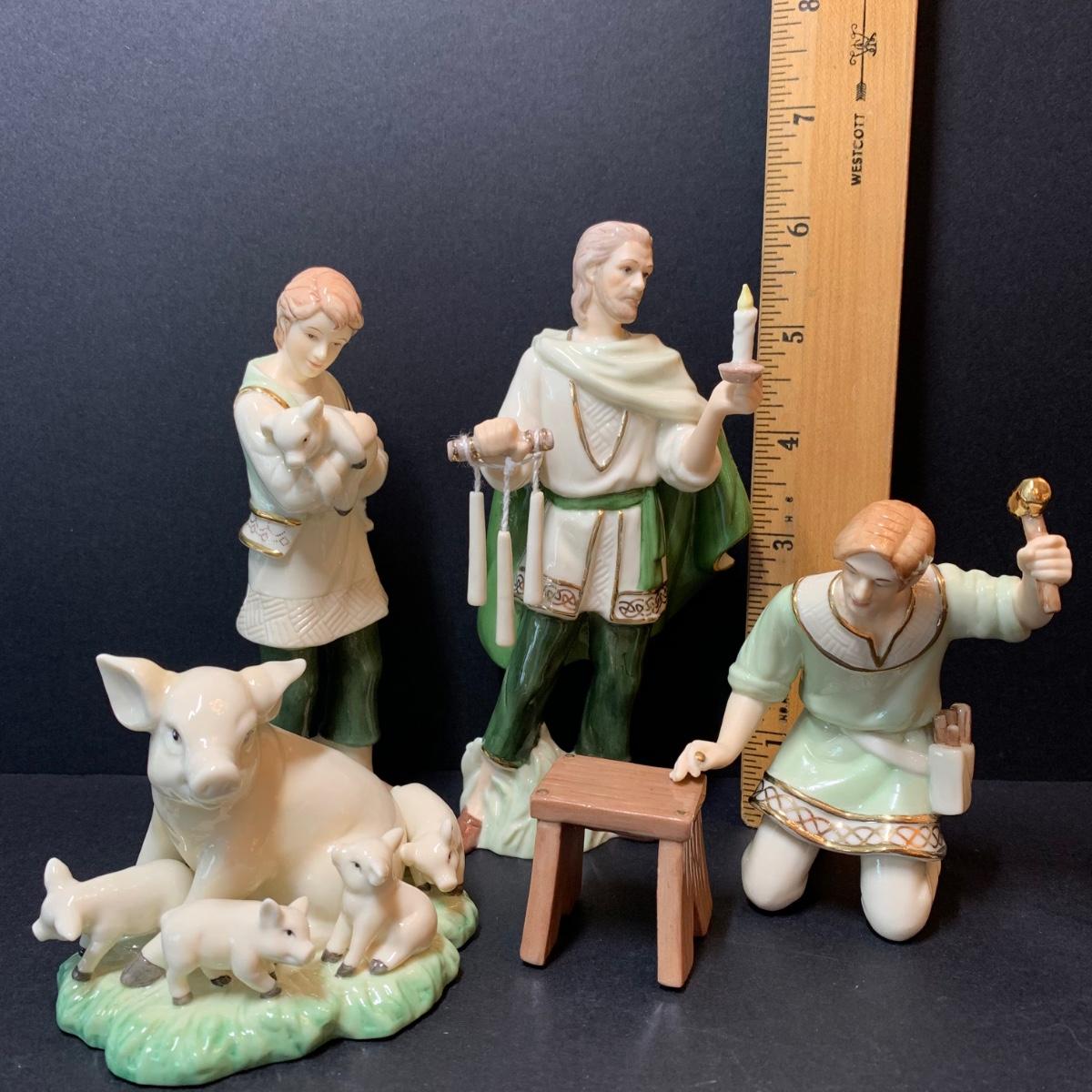 LOT 333D: Hawthorne Village Irish Nativity: Gentle Farmhand, Adoring Family, Skillful Carpenter, Hope Lights the Way