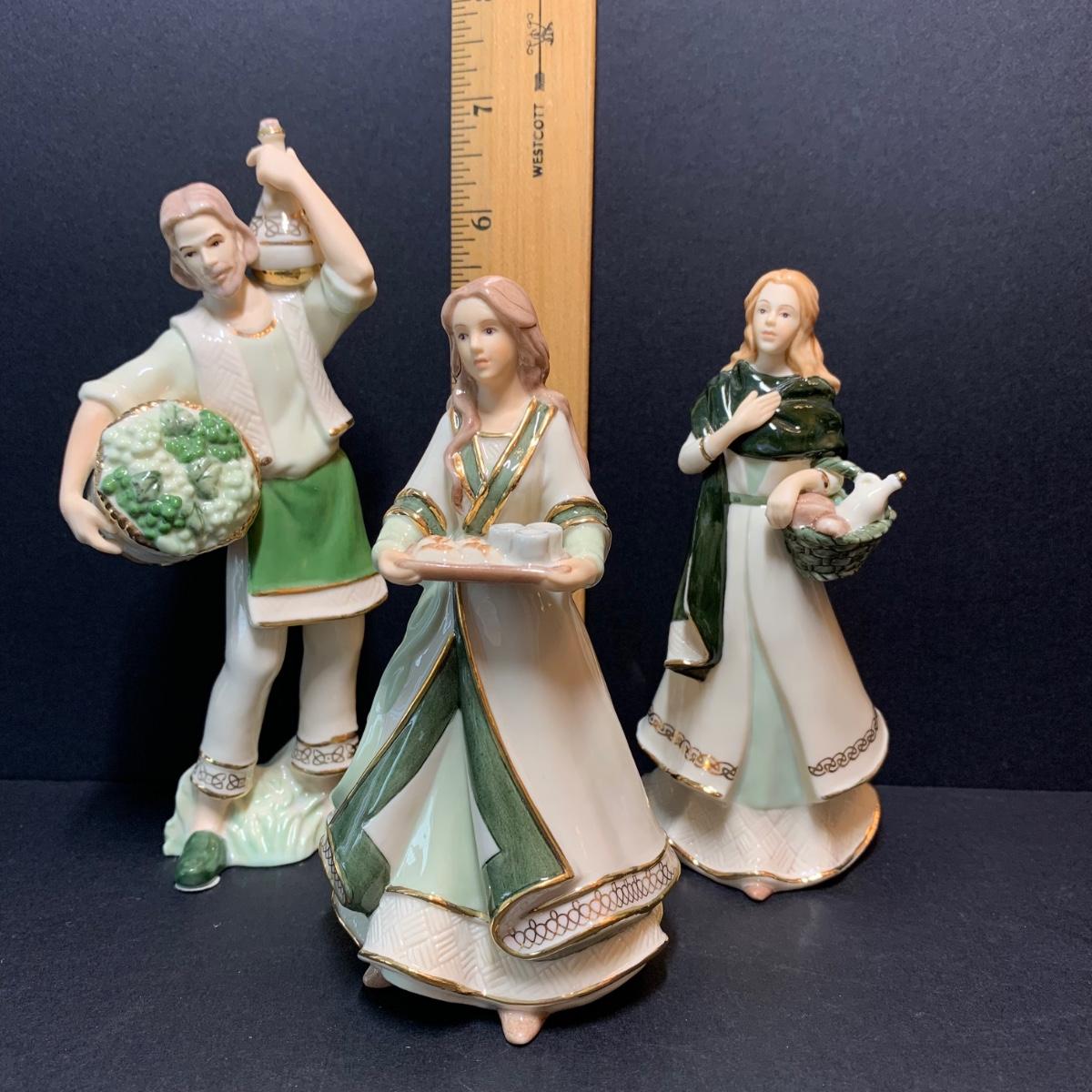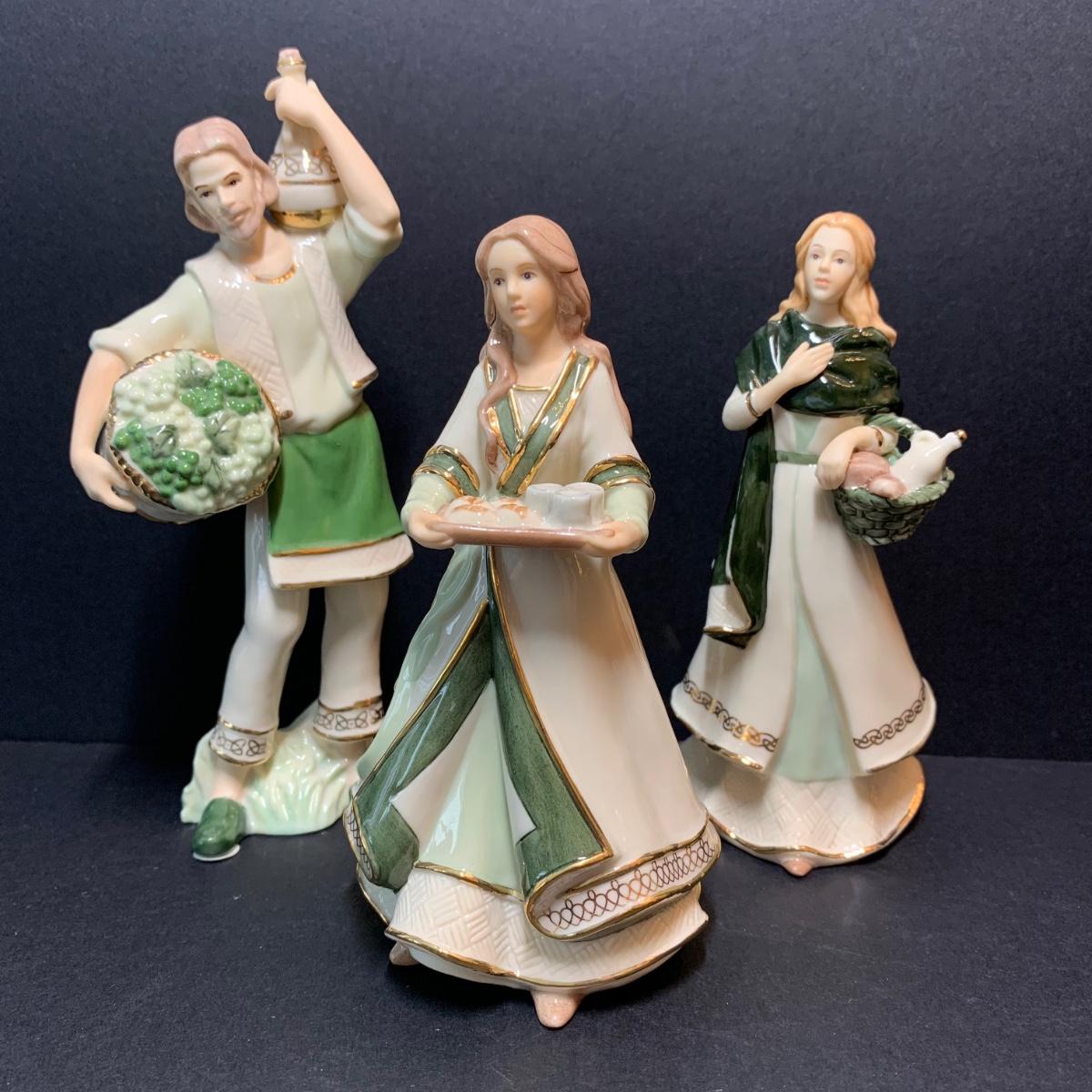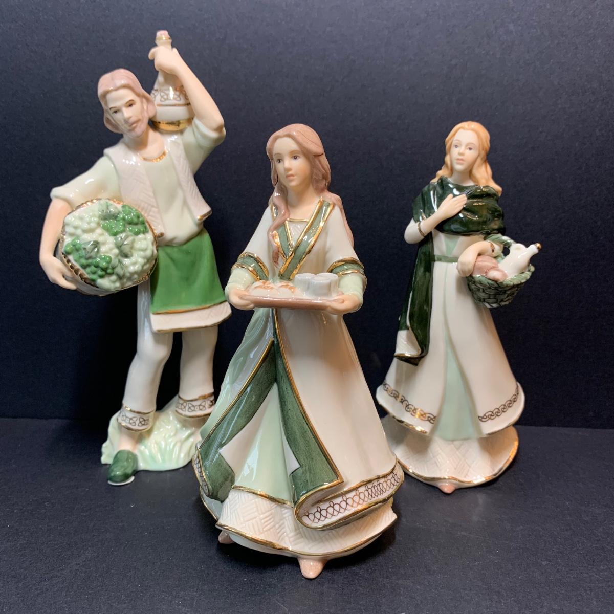 LOT 335D: Hawthorne Village Irish Nativity: Demure Servant Girl, Fruitful Bounty, Bread & Wine for the King
