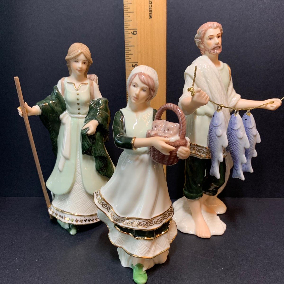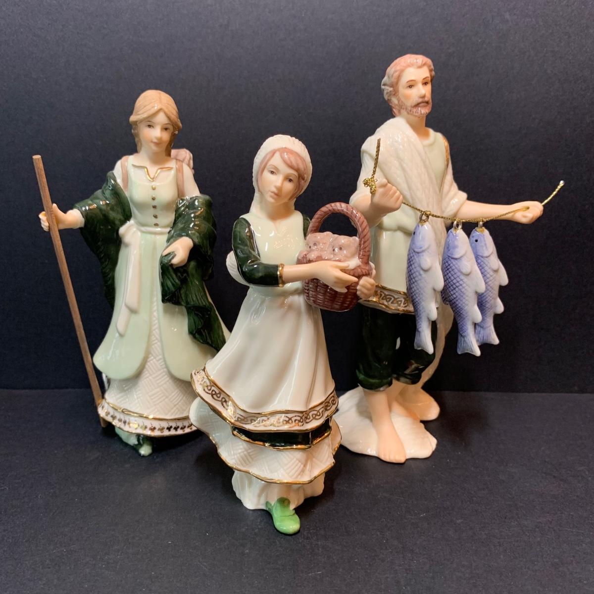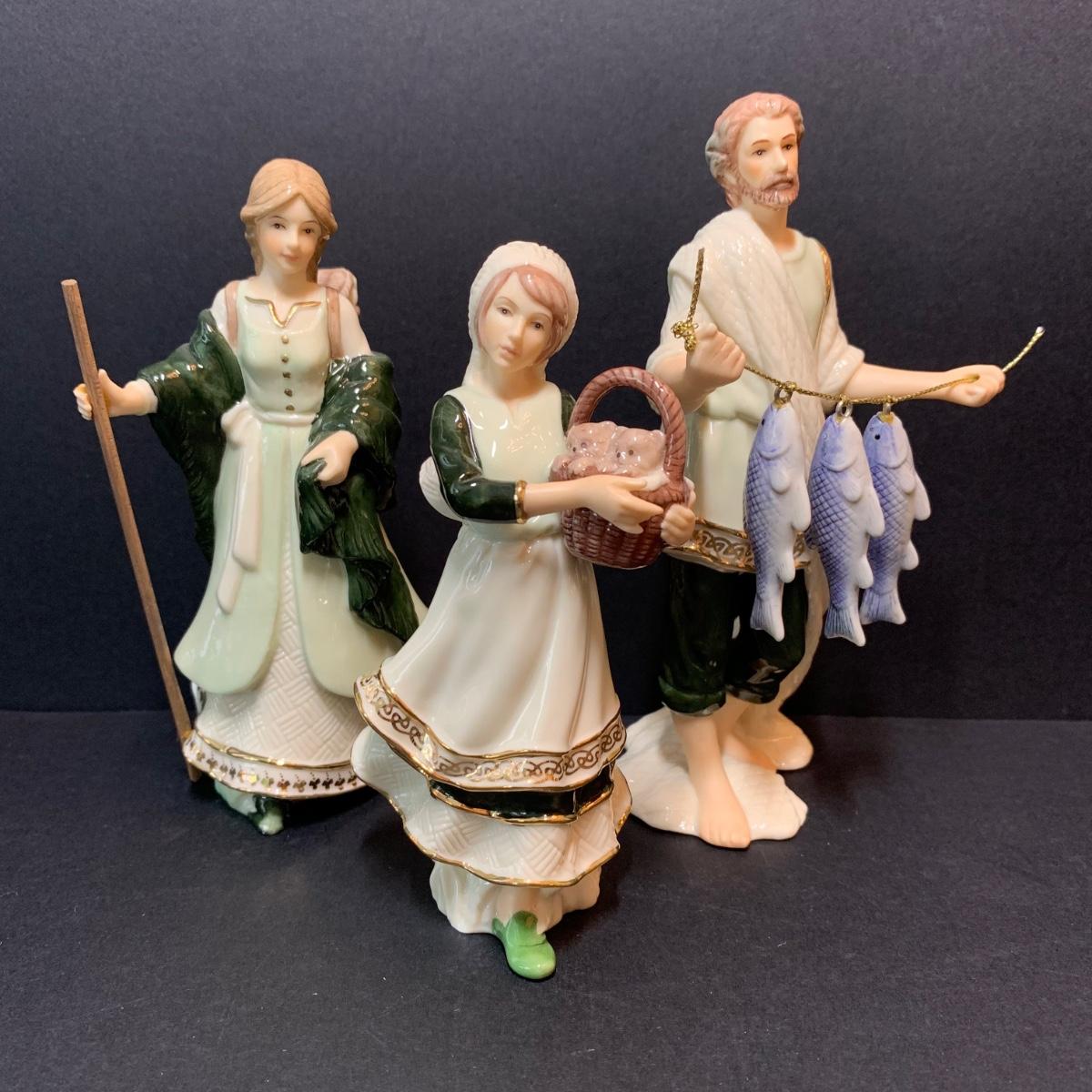 LOT 340D: Hawthorne Village Irish Nativity: Gift of Innocence, Winsome Market Goer, Diligent Fish Monger
