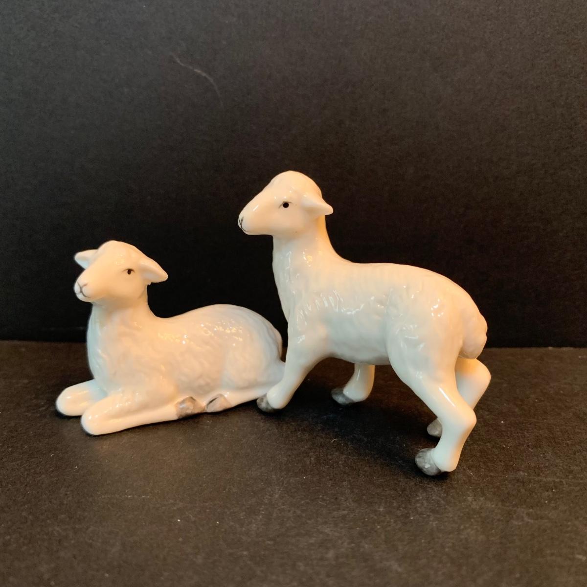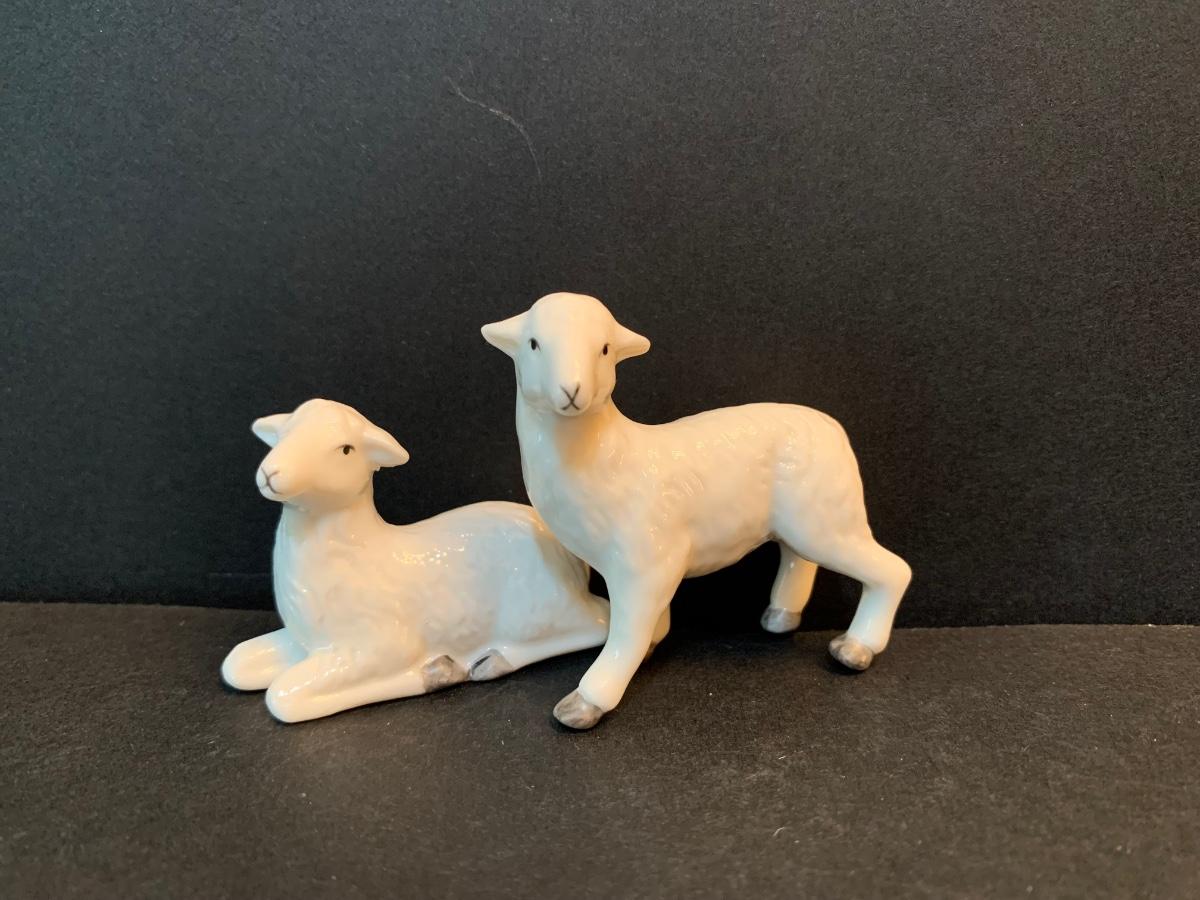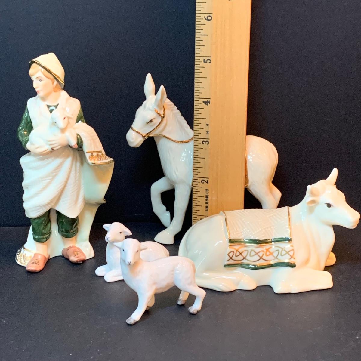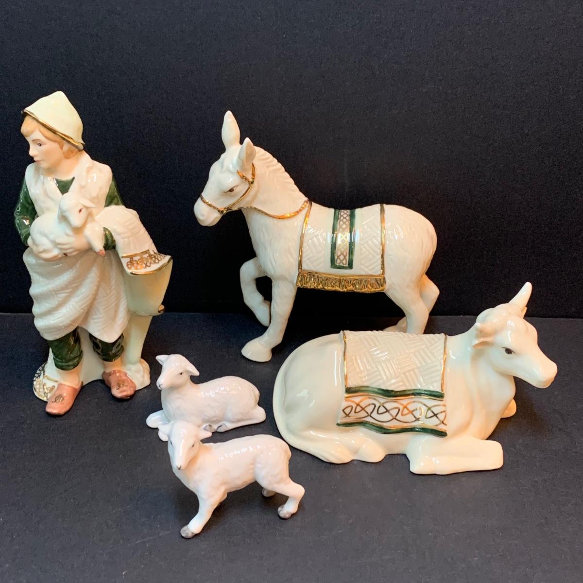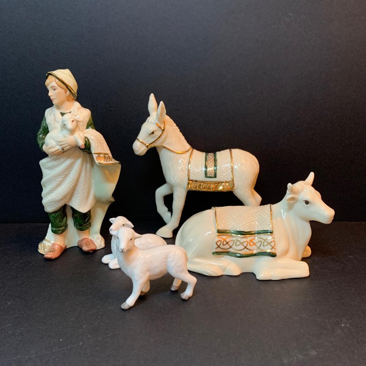 LOT 344D: Hawthorne Village Irish Nativity: Seated Bull, Standing Donkey, Shepard w/Lamb