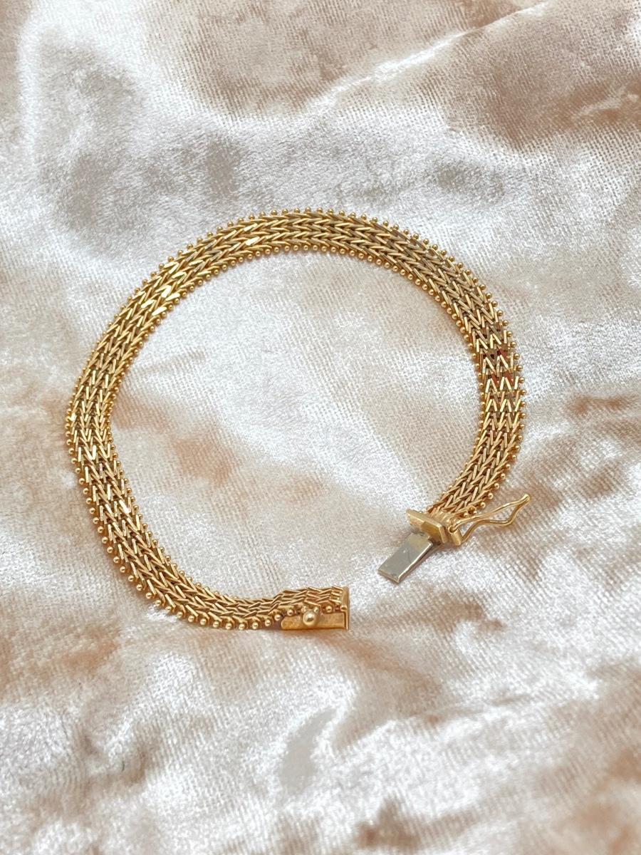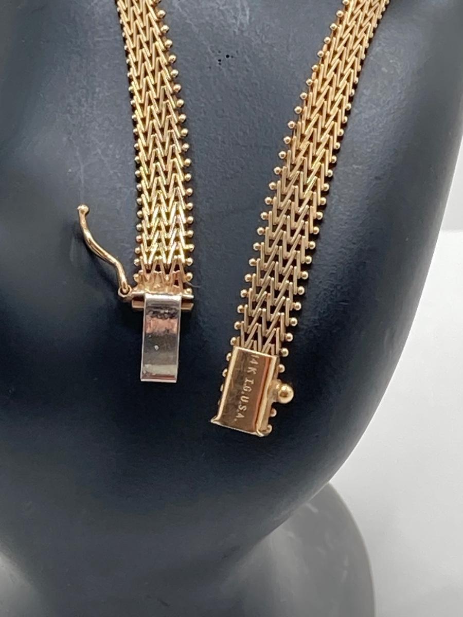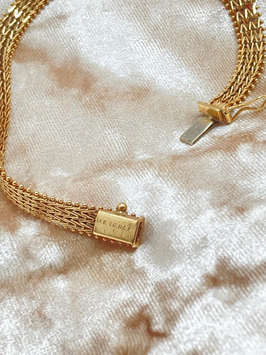 14K IGUSA Imperial Gold, Tw 10.4g, 7 1/2 inches - Please see all pictures as they are the best representation of the items. The pictures show condition, measurements if taken, and what is included in the lot. Due to the large amount that we photograph and the time frame, we are not always able to take measurements. All items unless noted, are pre-owned and have been used. If you purchased furniture, you must bring help. We do not allow one person to carry large furniture out on their own. Bring help, tools and a truck for the safety of our client’s homes, and your personal safety. Any damages that result to the property including walls, and floors due to moving of the furniture will be charged to the buyer. Company policy. Thank you.