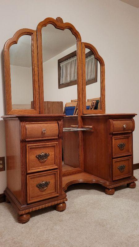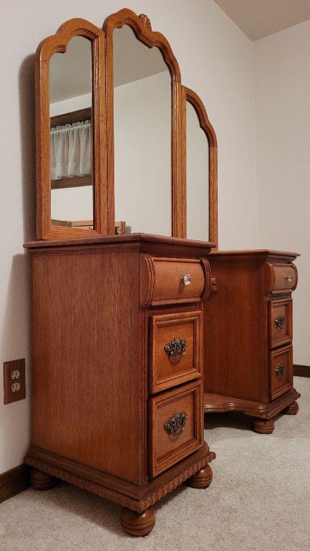 Lot 985: Vintage 3-Pane Mirror Vanity Desk
