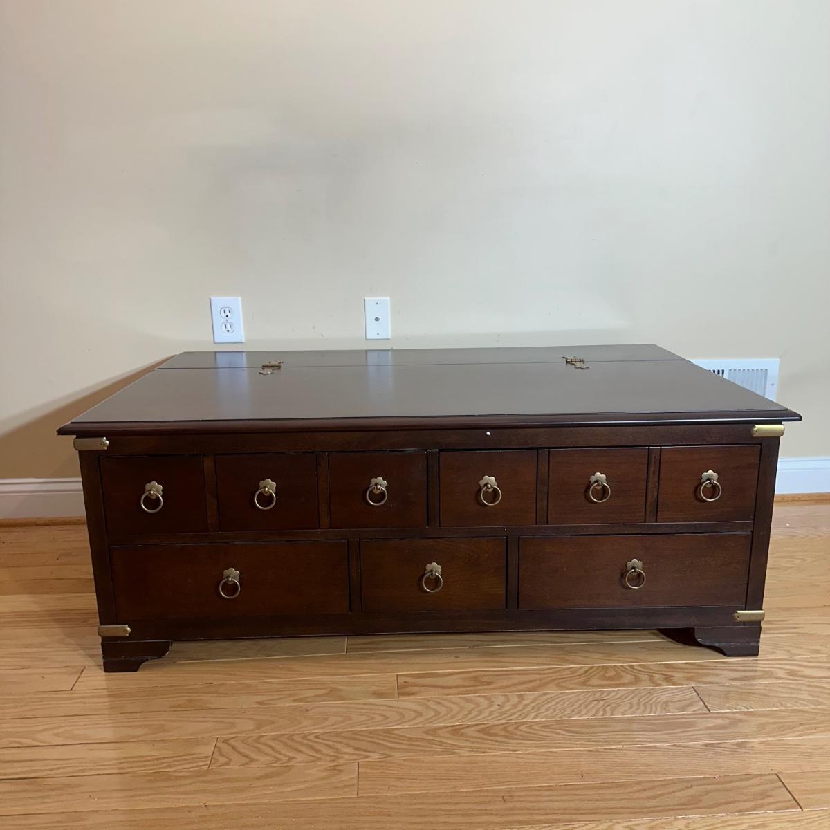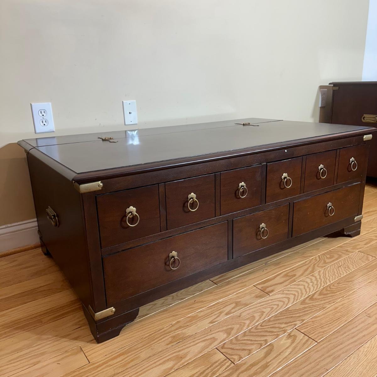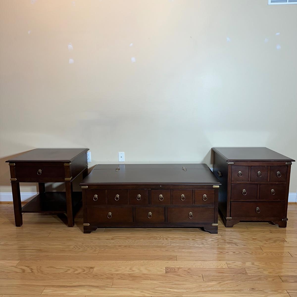 LOT 3L: Raymour & Flanigan Vintage Trunk Style Coffee Table + 2 End Tables