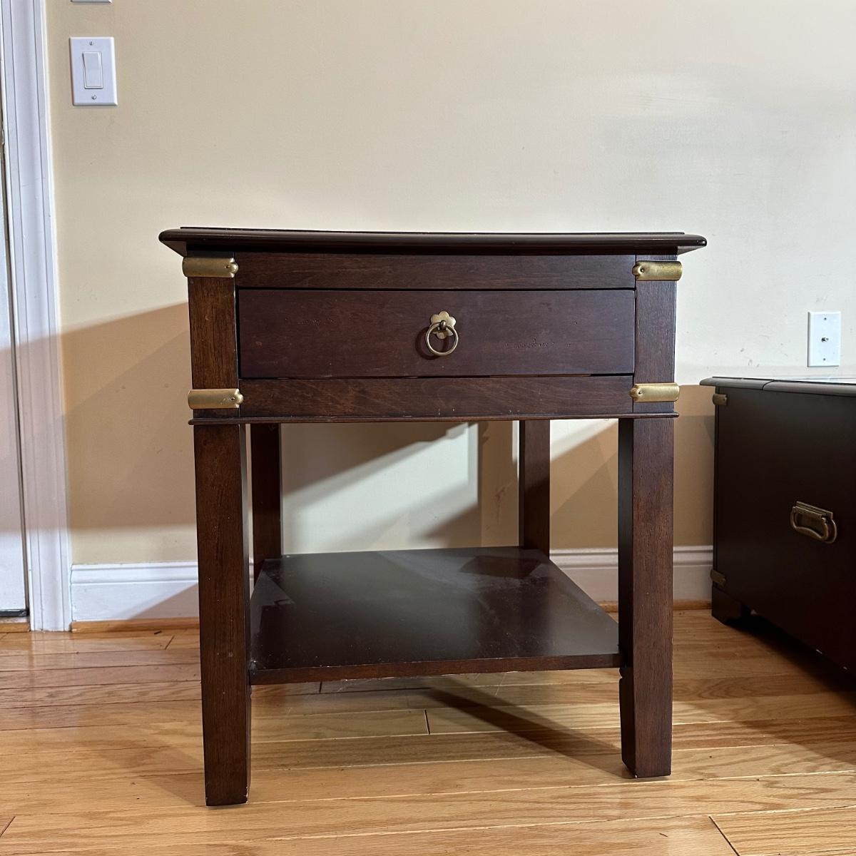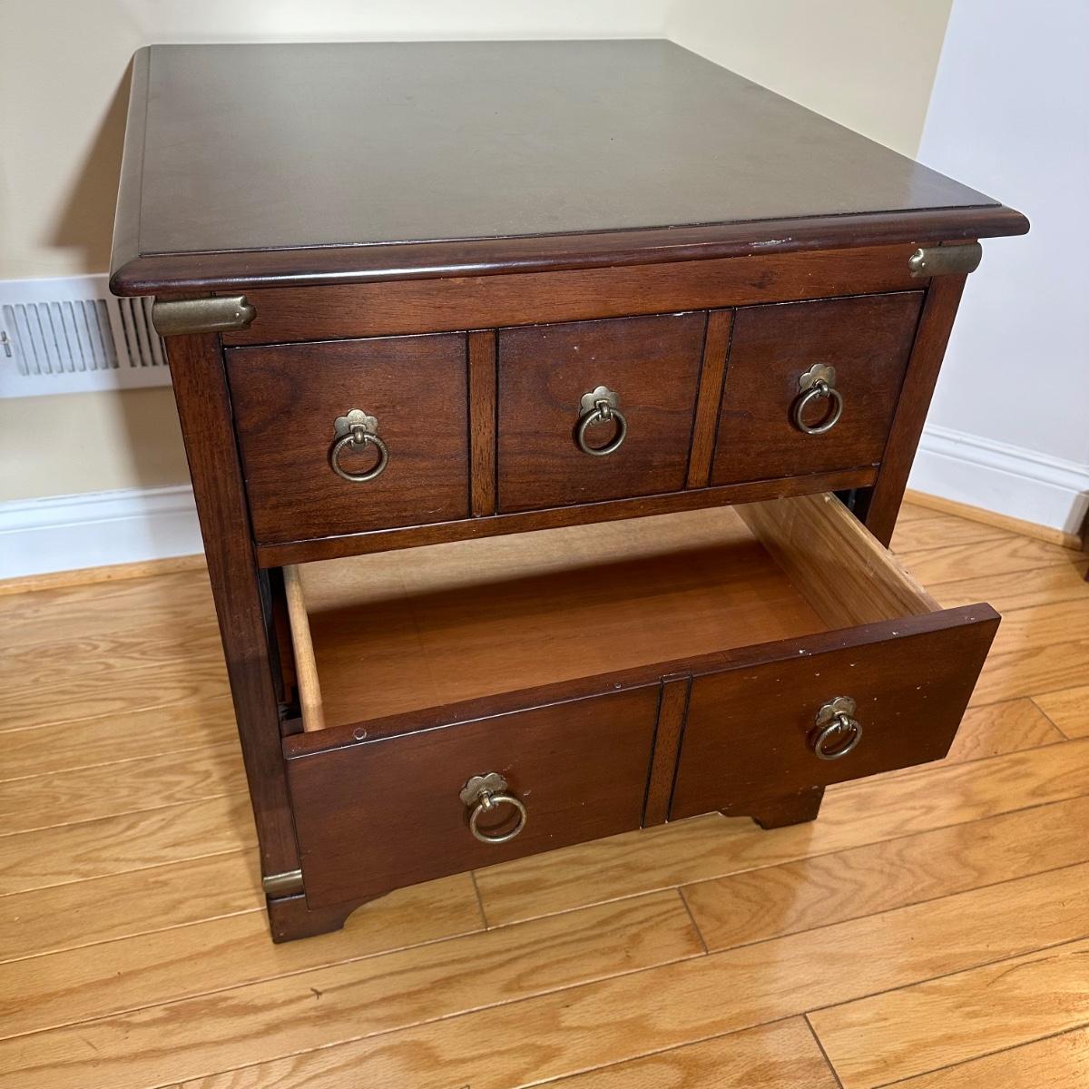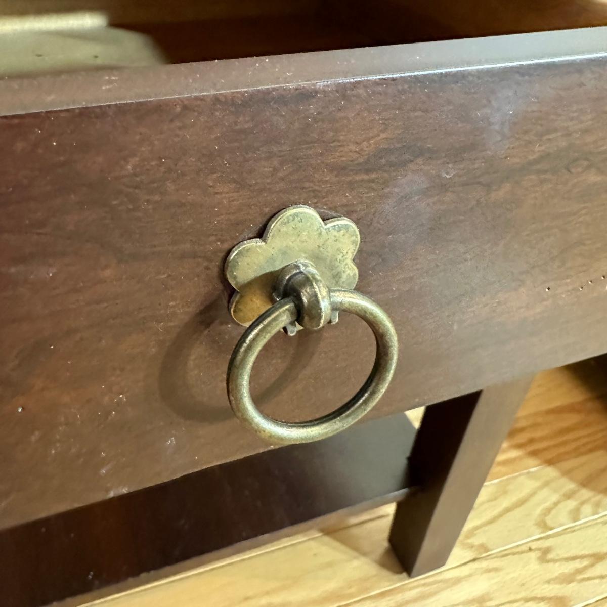 Table - 19.5x50x35.5, end tables - 26.5x24.5x26.5 - Please see all pictures as they are the best representation of the items. The pictures show condition, measurements if taken, and what is included in the lot. Due to the large amount that we photograph and the time frame, we are not always able to take measurements. All items unless noted, are pre-owned and have been used. If you purchased furniture, you must bring help. We do not allow one person to carry large furniture out on their own. Bring help, tools and a truck for the safety of our client’s homes, and your personal safety. Any damages that result to the property including walls, and floors due to moving of the furniture will be charged to the buyer. Company policy. Thank you.