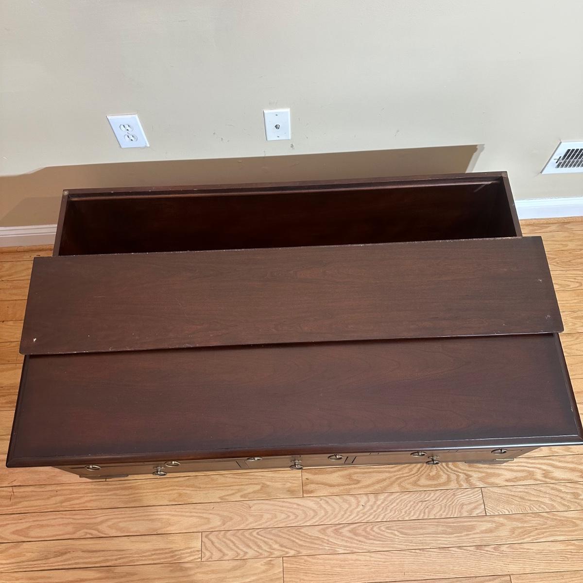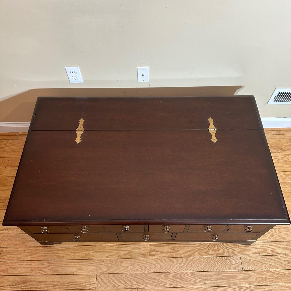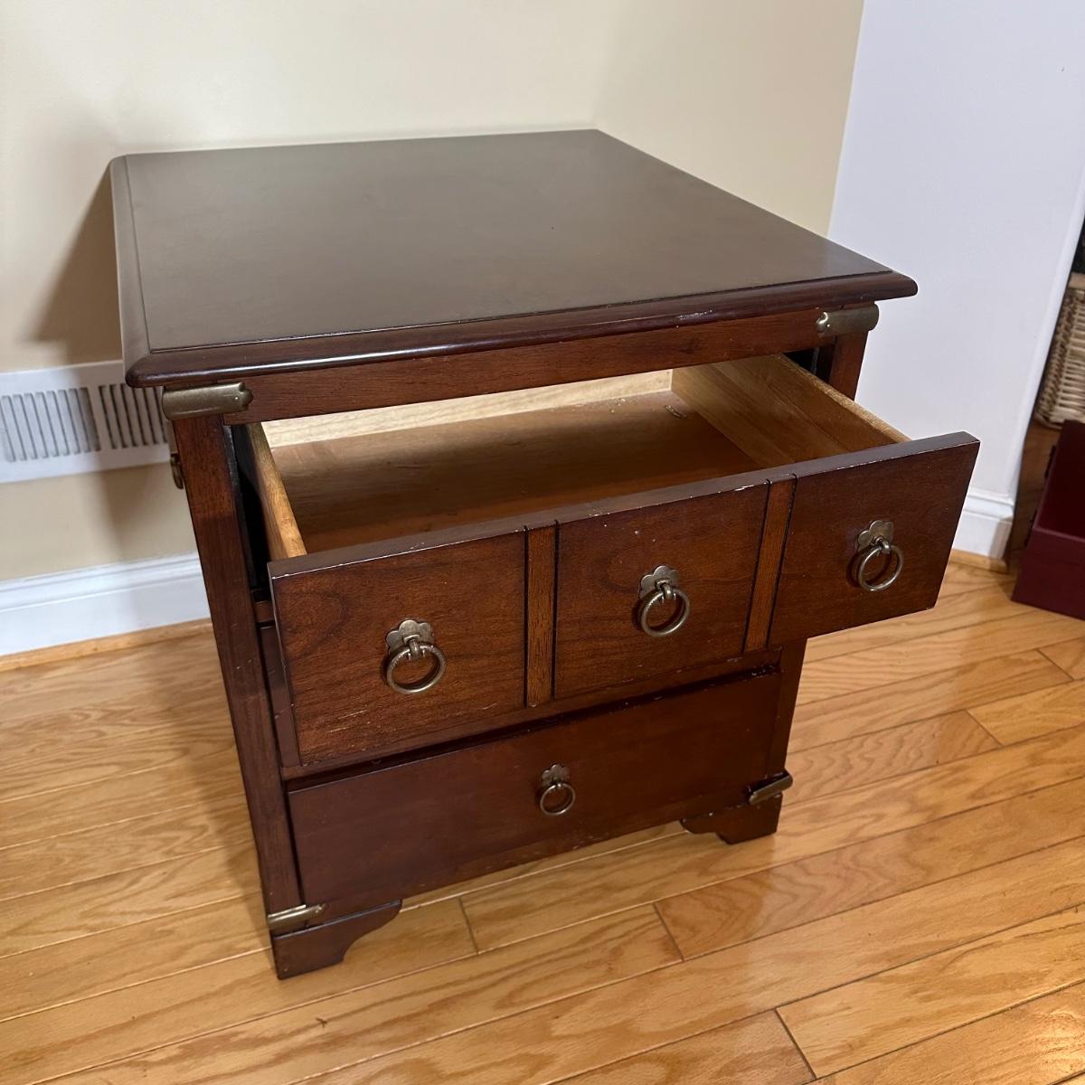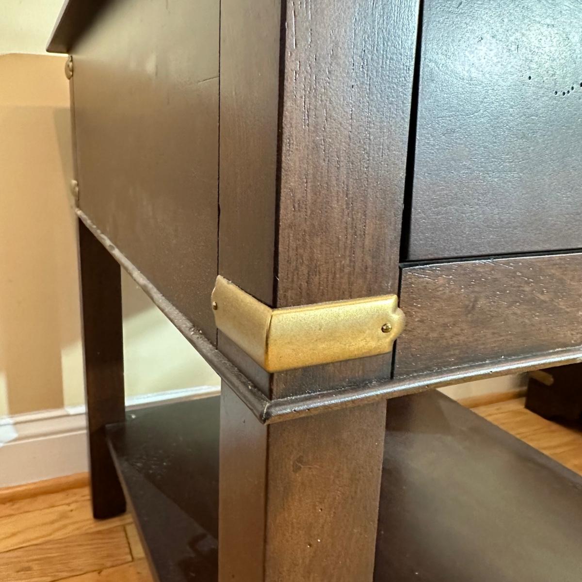 Table - 19.5x50x35.5, end tables - 26.5x24.5x26.5 - Please see all pictures as they are the best representation of the items. The pictures show condition, measurements if taken, and what is included in the lot. Due to the large amount that we photograph and the time frame, we are not always able to take measurements. All items unless noted, are pre-owned and have been used. If you purchased furniture, you must bring help. We do not allow one person to carry large furniture out on their own. Bring help, tools and a truck for the safety of our client’s homes, and your personal safety. Any damages that result to the property including walls, and floors due to moving of the furniture will be charged to the buyer. Company policy. Thank you.