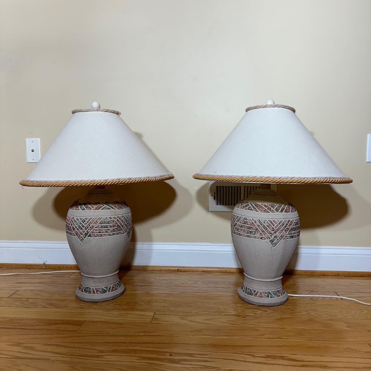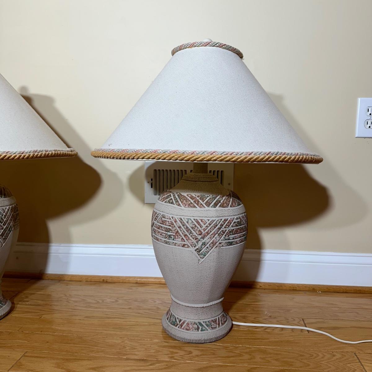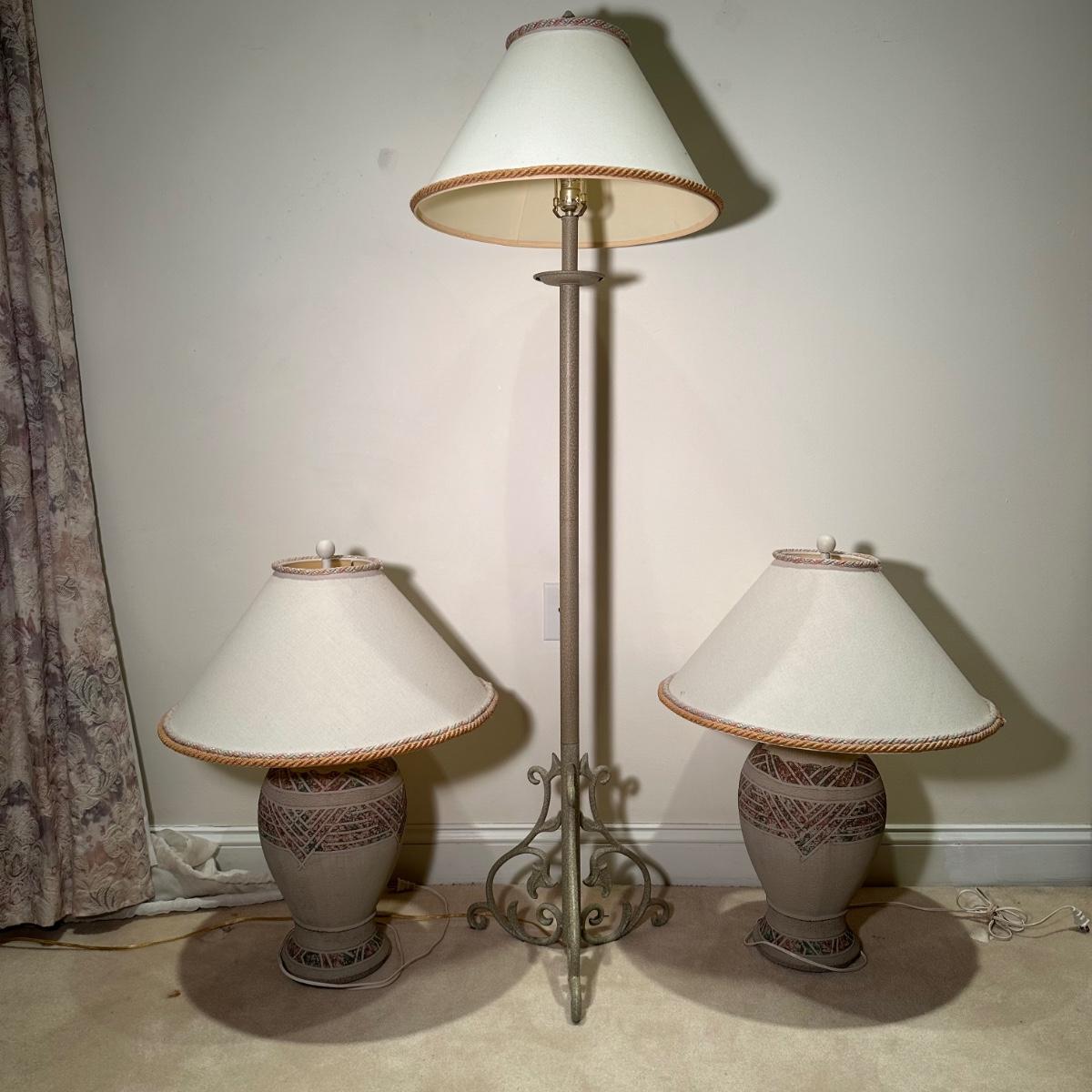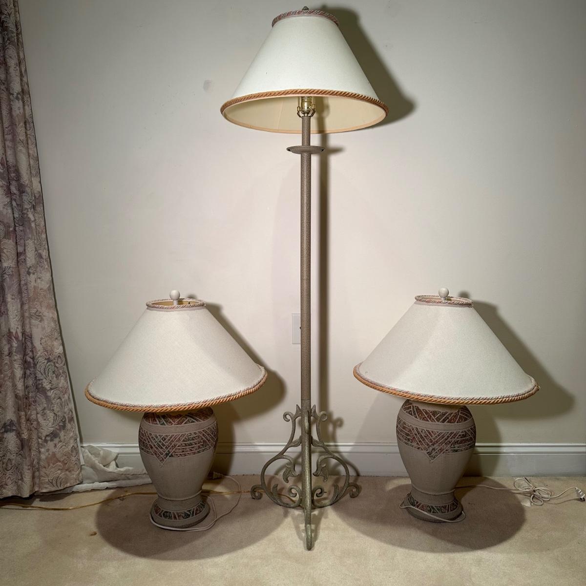 Big lamp- 64.19.5, small lamps- 28x22 - Please see all pictures as they are the best representation of the items. The pictures show condition, measurements if taken, and what is included in the lot. Due to the large amount that we photograph and the time frame, we are not always able to take measurements. All items unless noted, are pre-owned and have been used. If you purchased furniture, you must bring help. We do not allow one person to carry large furniture out on their own. Bring help, tools and a truck for the safety of our client’s homes, and your personal safety. Any damages that result to the property including walls, and floors due to moving of the furniture will be charged to the buyer. Company policy. Thank you.