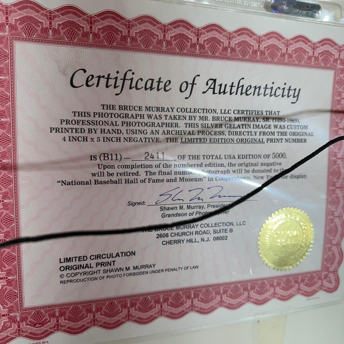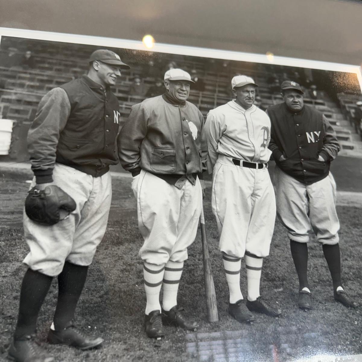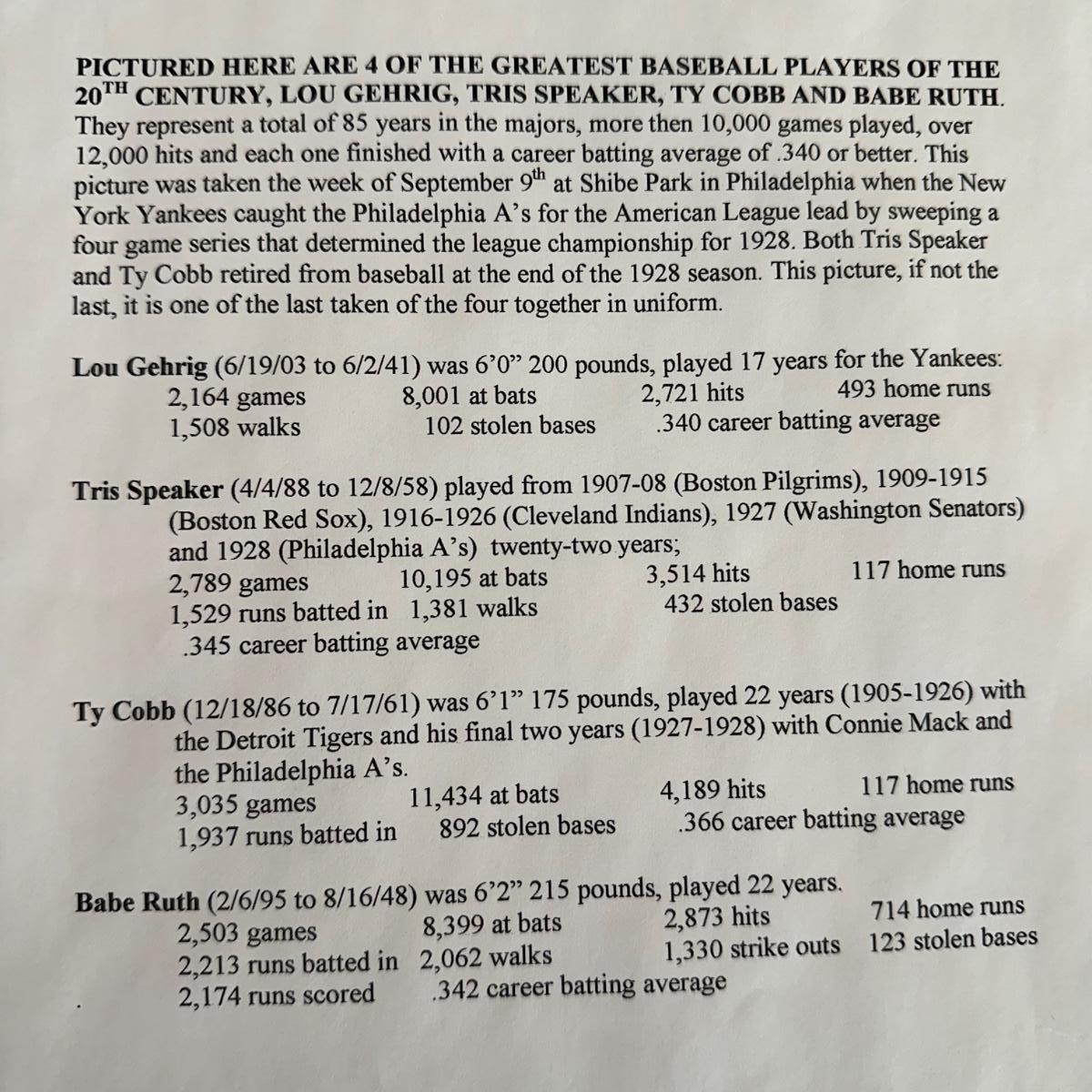 LOT 17L: Gehrig, Tris Speaker, Ty Cobb and Babe Ruth at Shibe Park 1928 Photo By Bruce Murray - Numbered & Authenticated