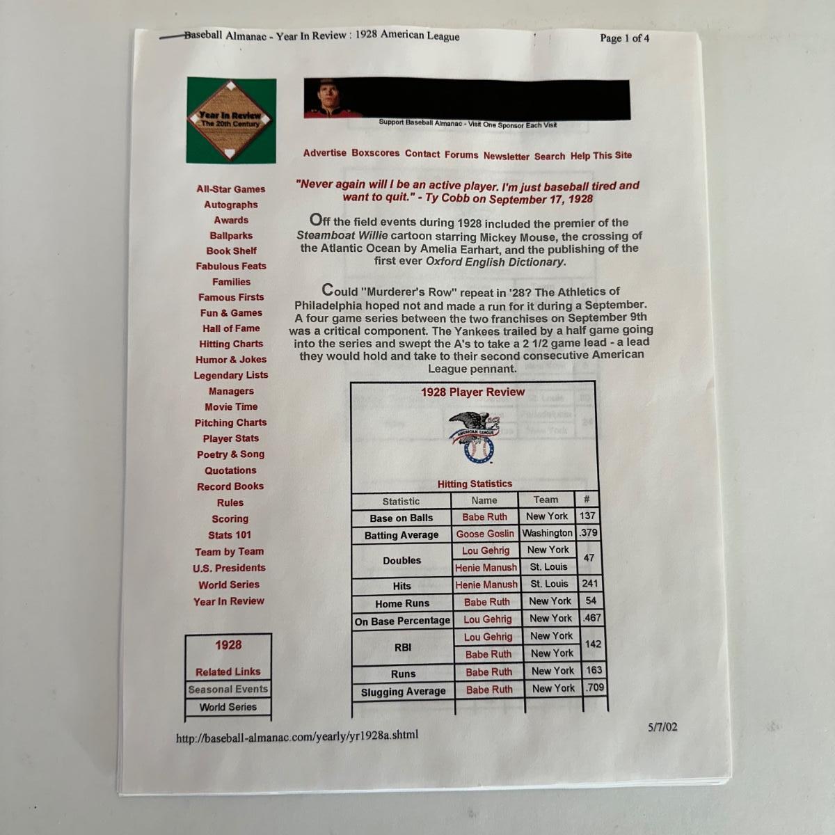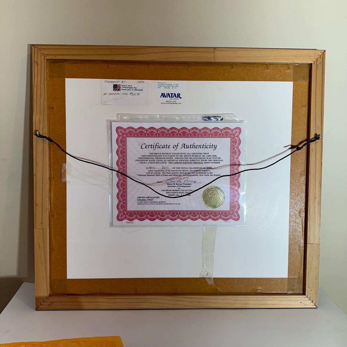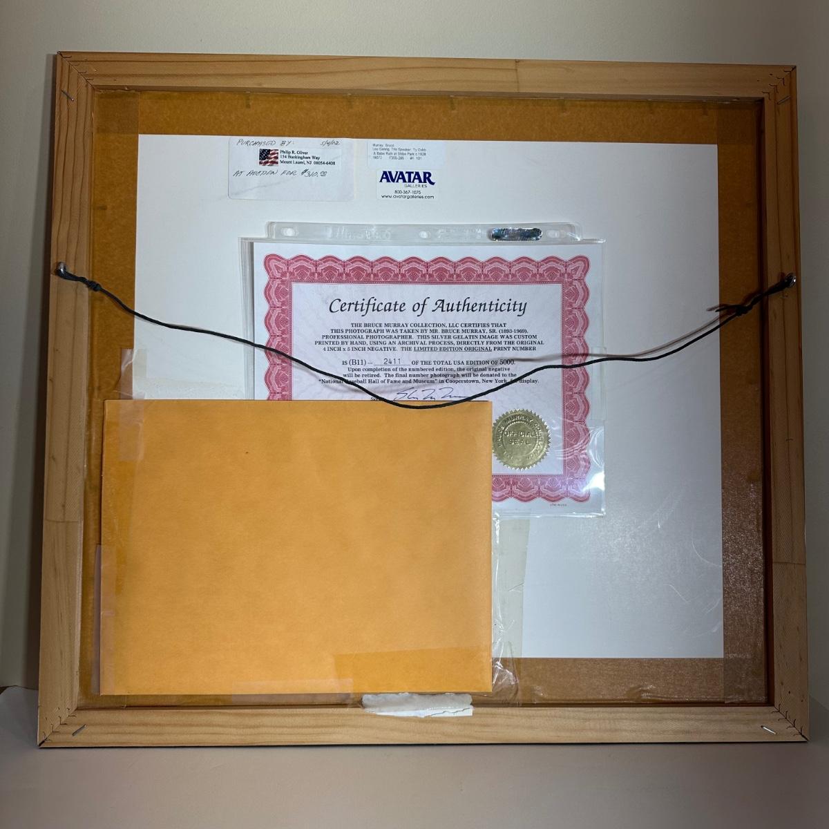 LOT 17L: Gehrig, Tris Speaker, Ty Cobb and Babe Ruth at Shibe Park 1928 Photo By Bruce Murray - Numbered & Authenticated
