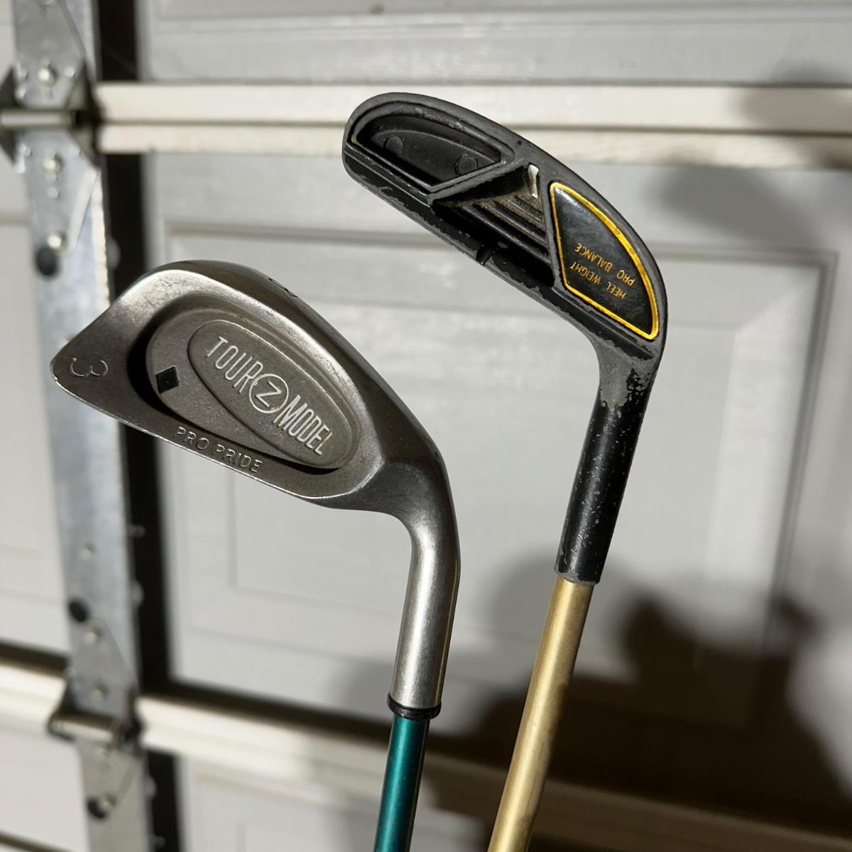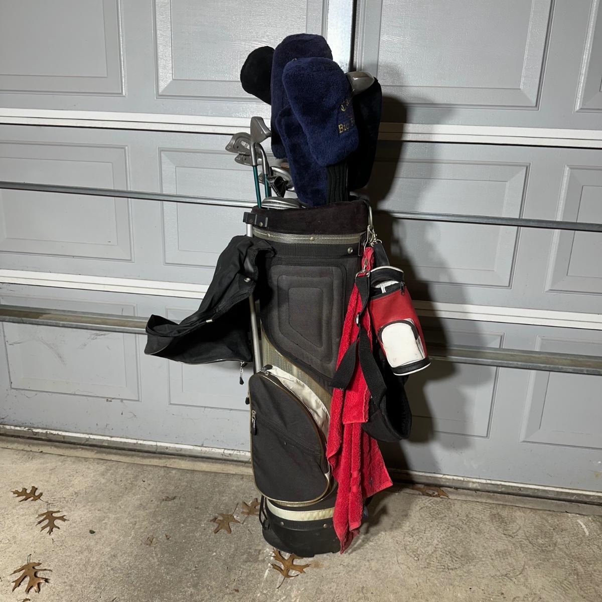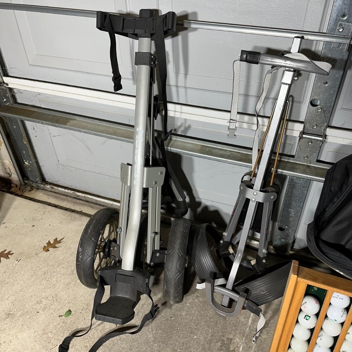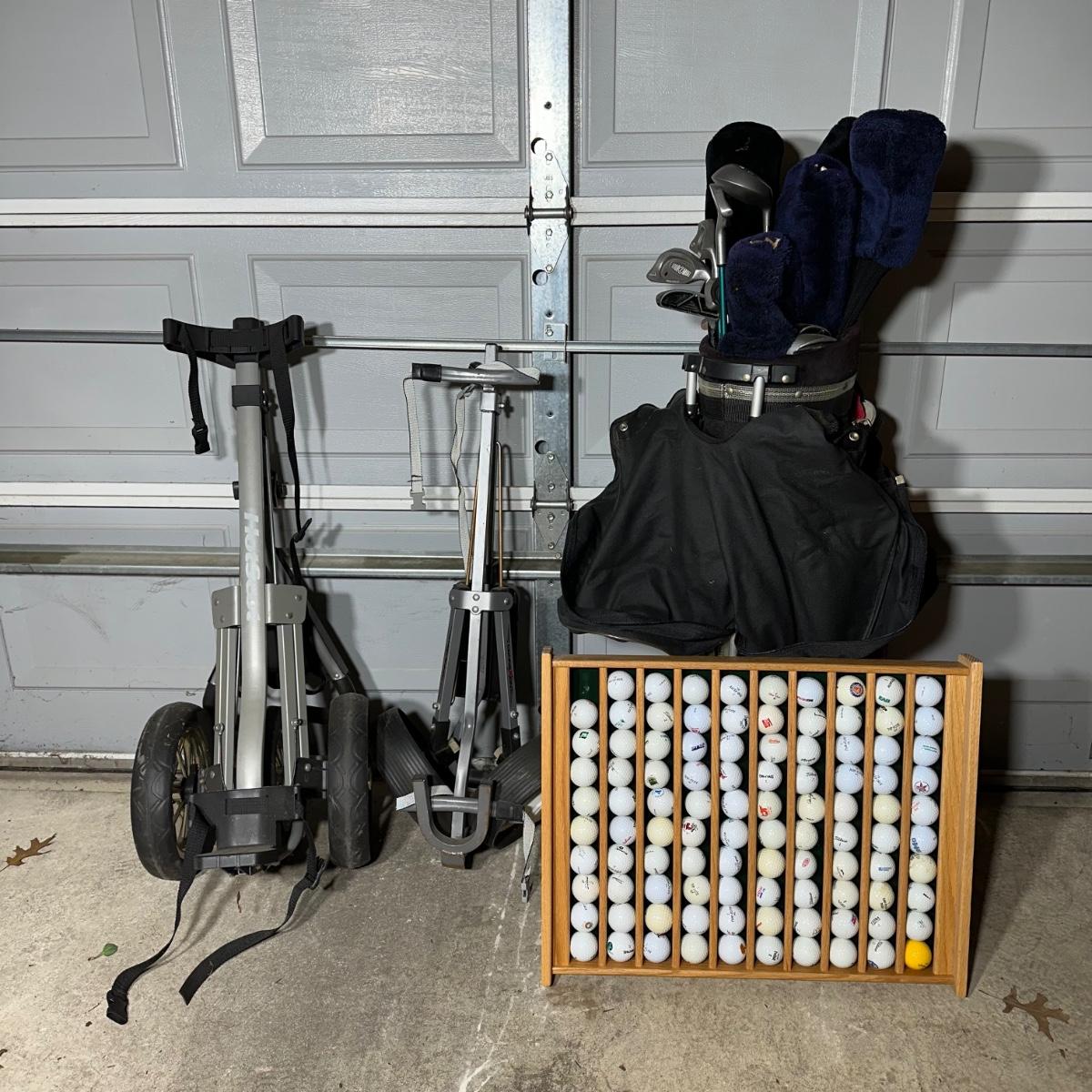 LOT 32G: Collection Of Golf Clubs, Push Carts & Golf Ball Display