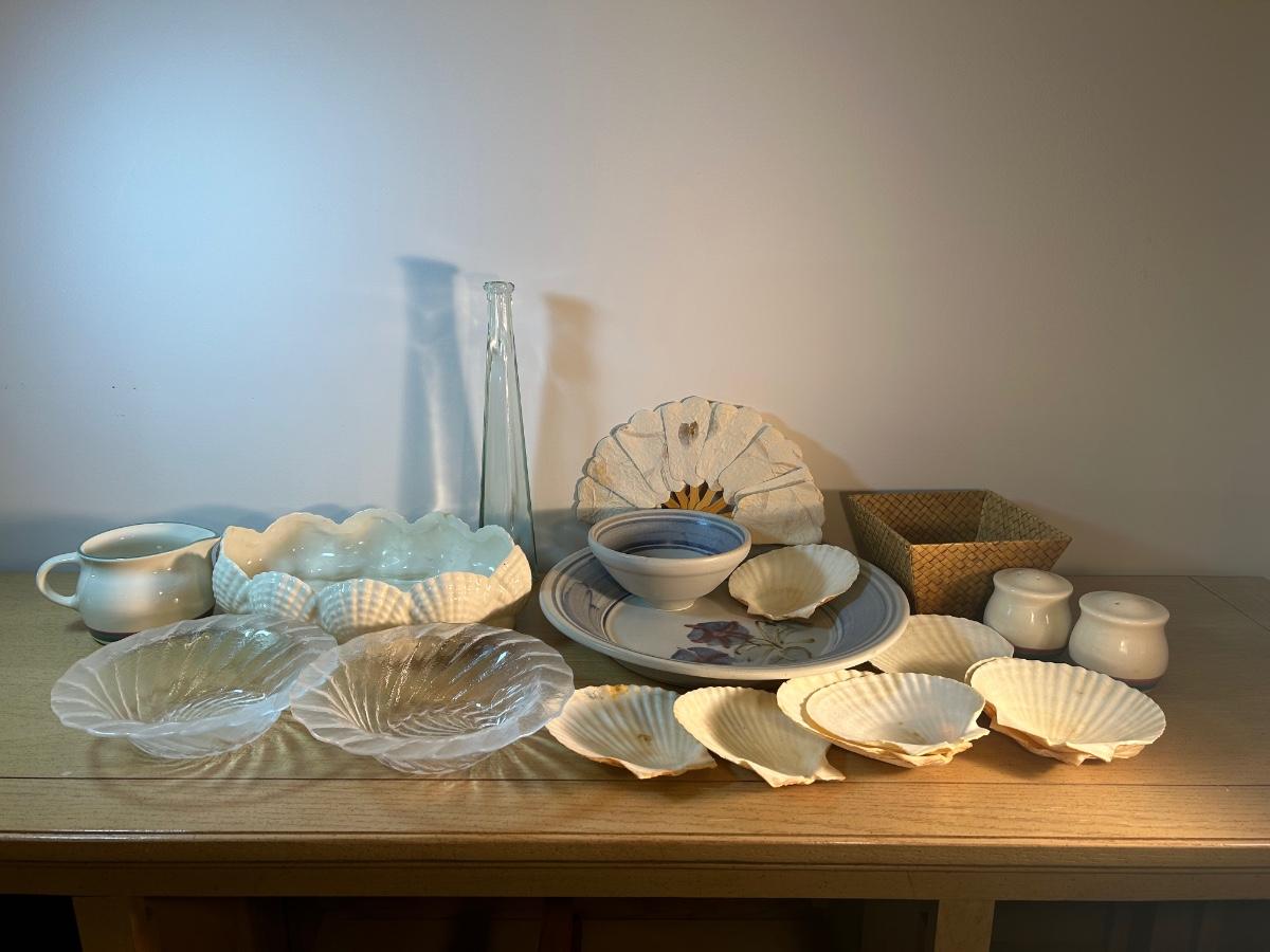 LOT 42K: Shell Dish, Shell Plates, Beach Themed Serving Dish And More