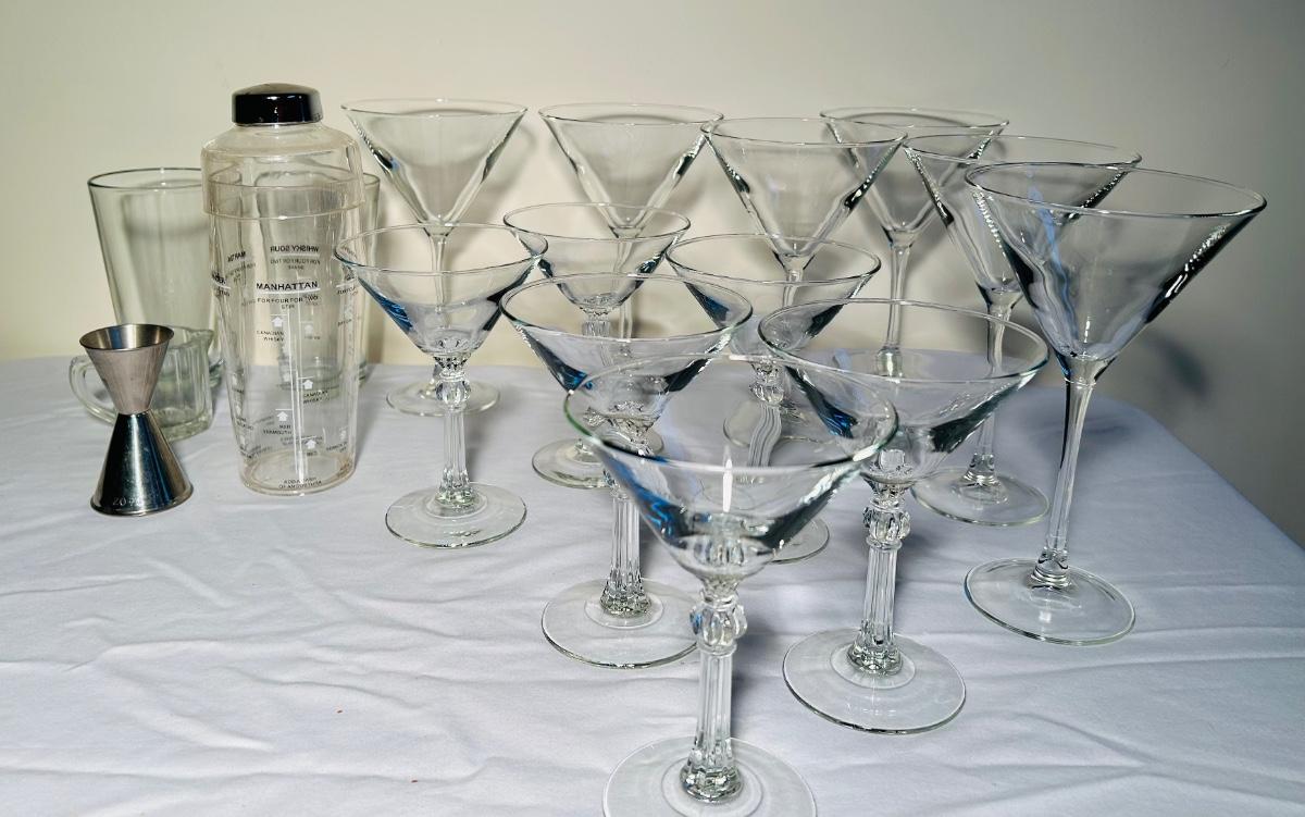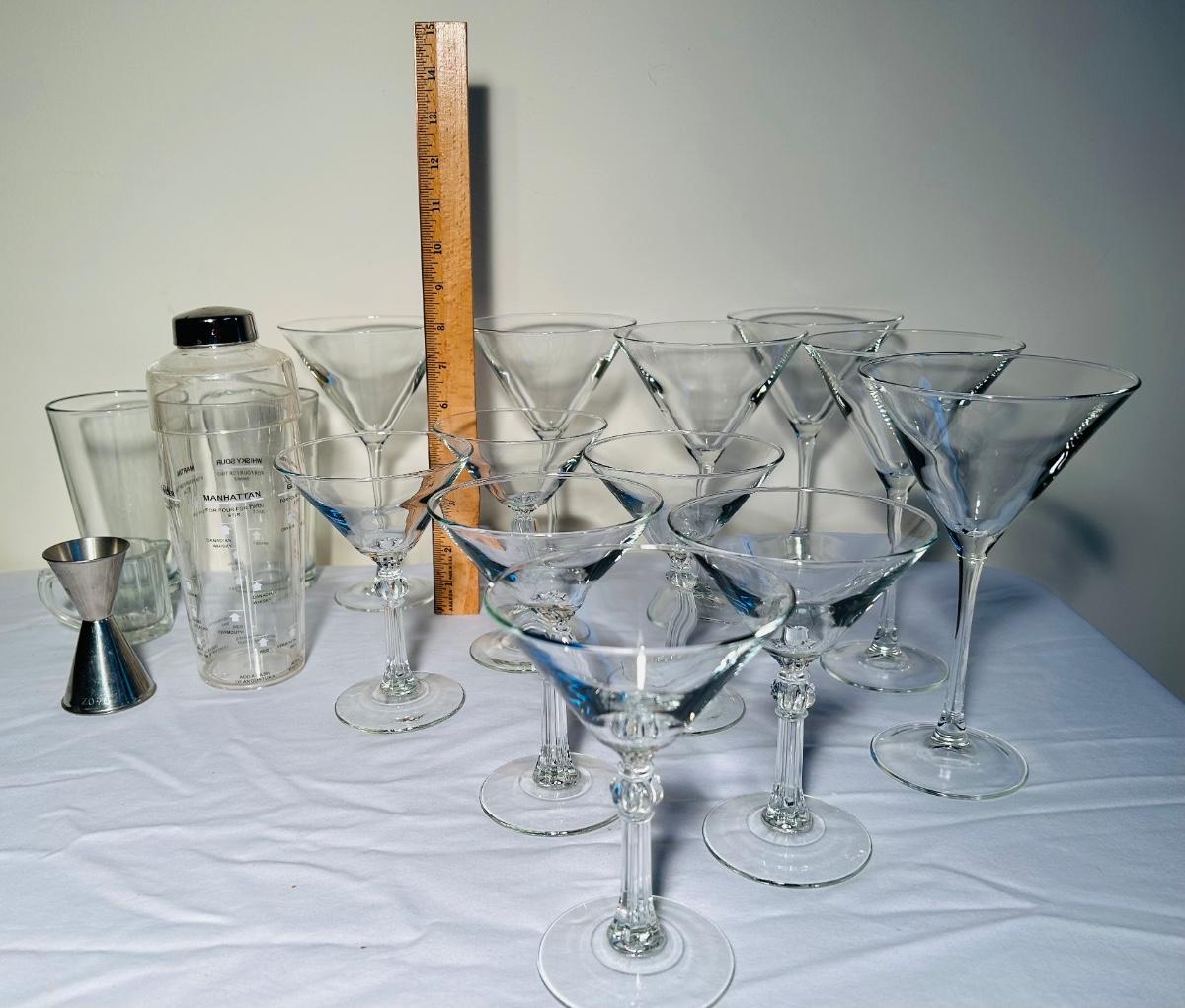 LOT 53K: Martini Glasses, Shaker Bottle And More
