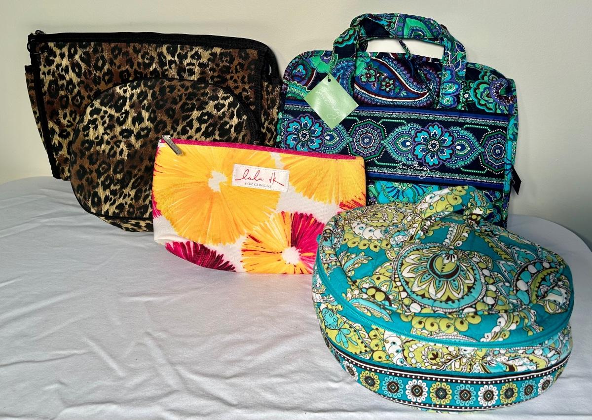 LOT 54K: Oscar De la renta Make Up Bags, Clinique Make Up Bag And Vera Bradly Toiletry Bags