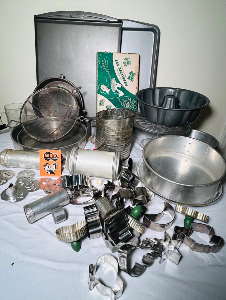 LOT 60K: Vintage Bake-king Pans, Cookie Cutters, Baking Utensils And More