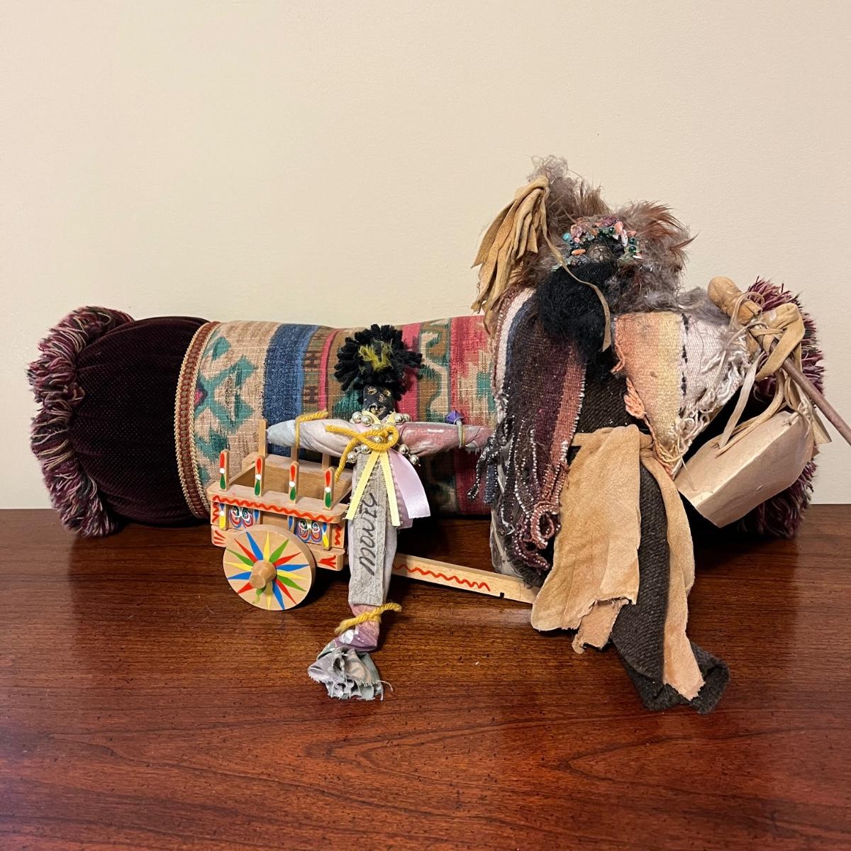 LOT 96X: Native American Tribal Drummer Doll, Good Luck VooDoo Doll, Costa Rican Miniature Wooden Oxcart and More