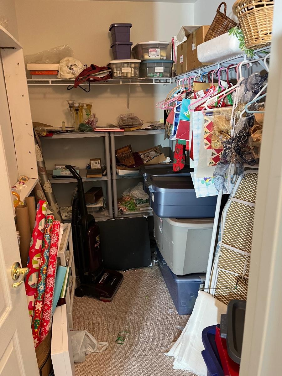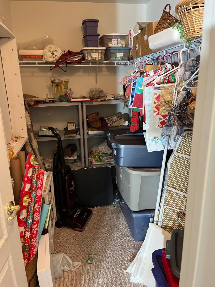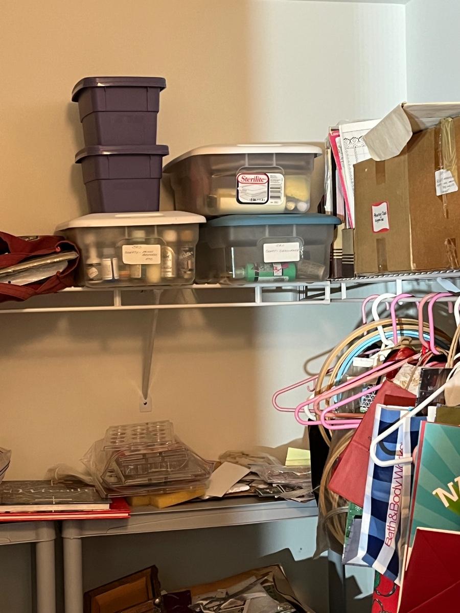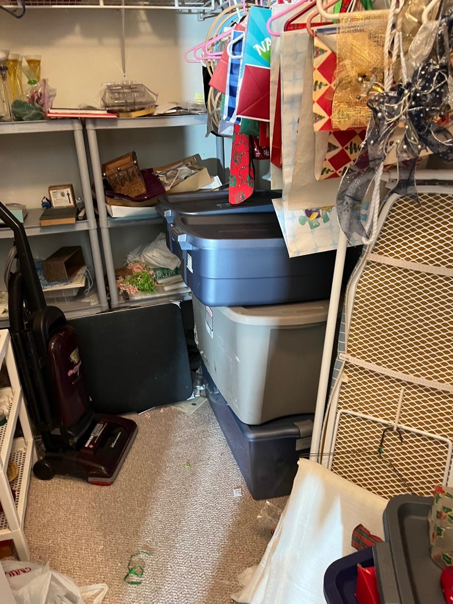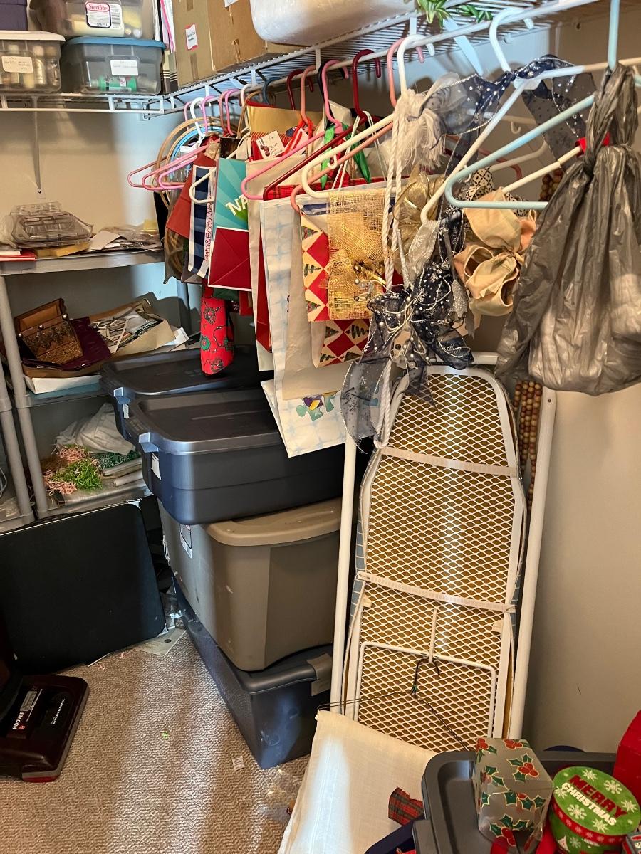 LOT 107B: Entire Contents of Crafting Closet - Supplies, Gift Wrapping, Vacuum Cleaner, Ironing Board and So Much More