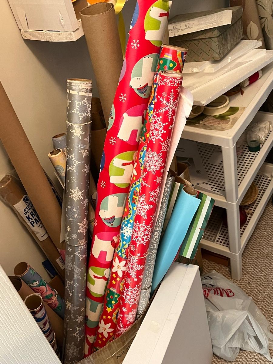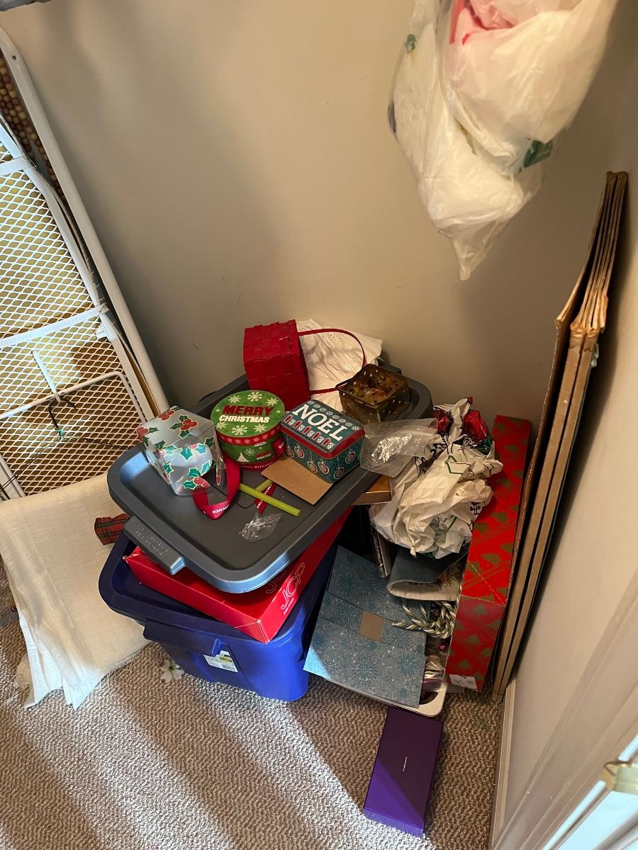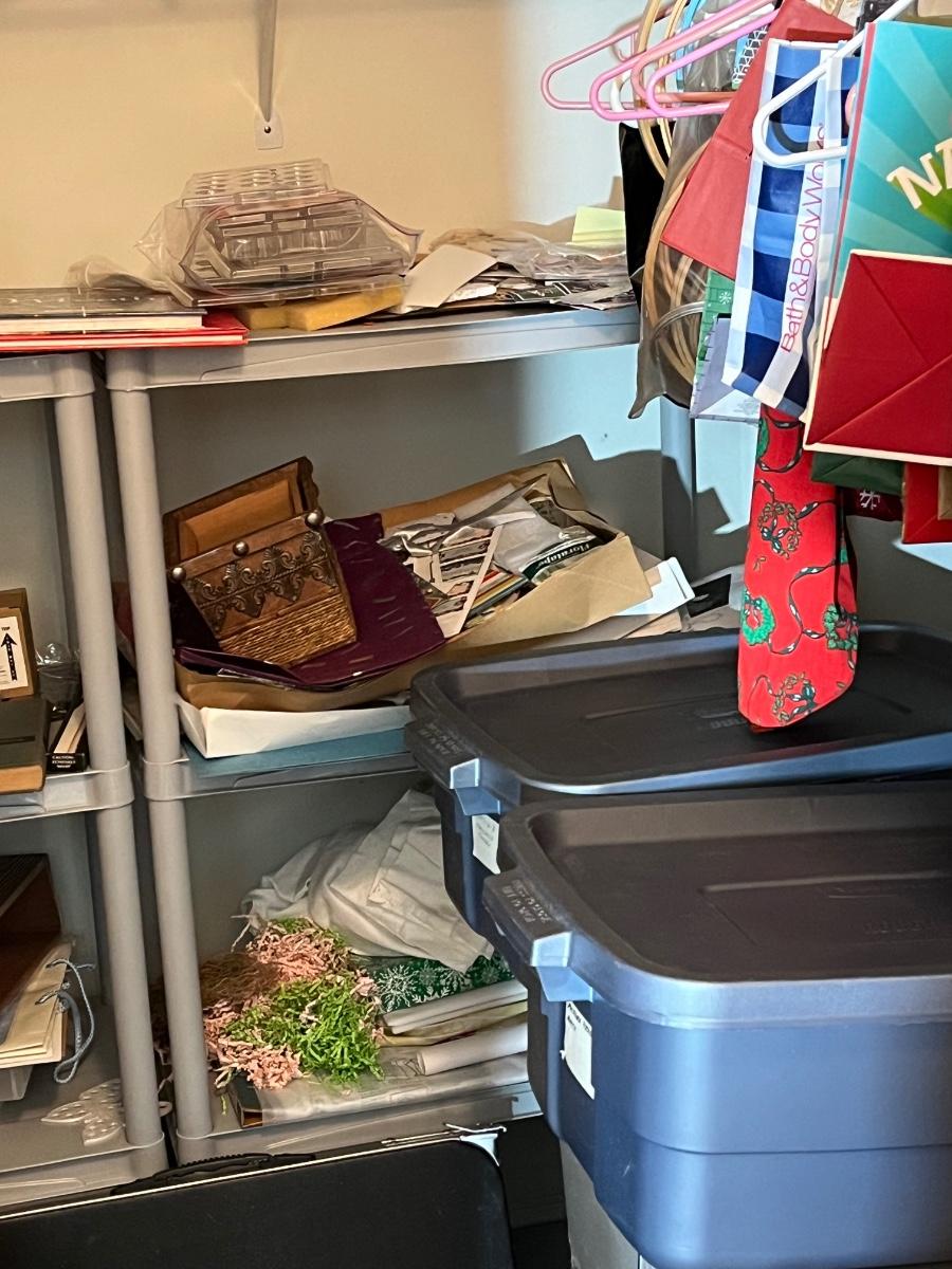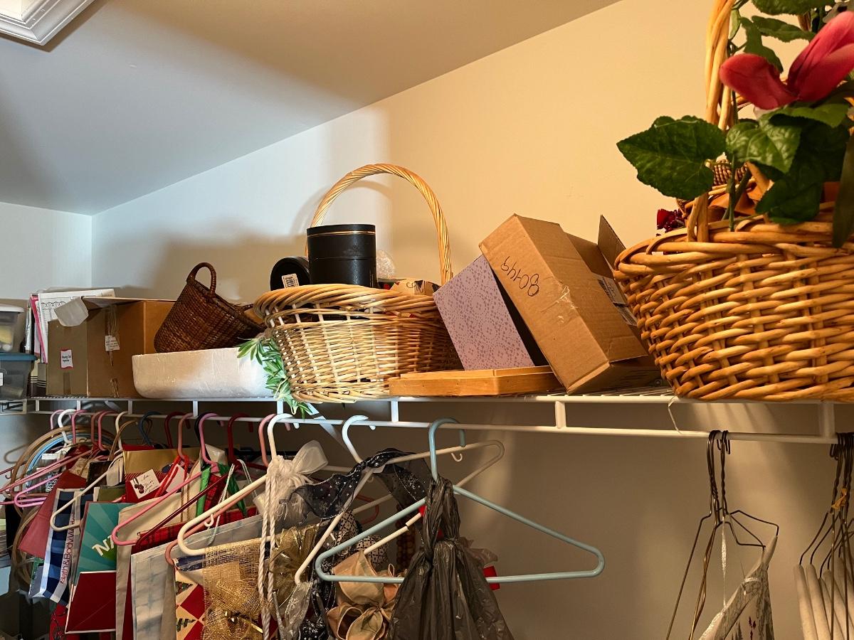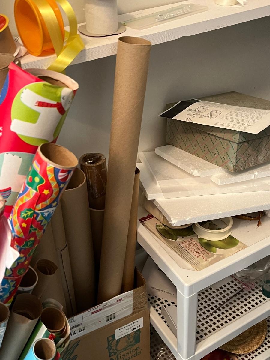 LOT 107B: Entire Contents of Crafting Closet - Supplies, Gift Wrapping, Vacuum Cleaner, Ironing Board and So Much More