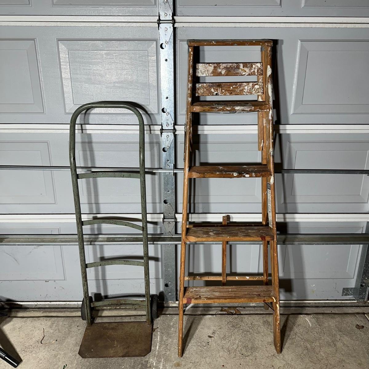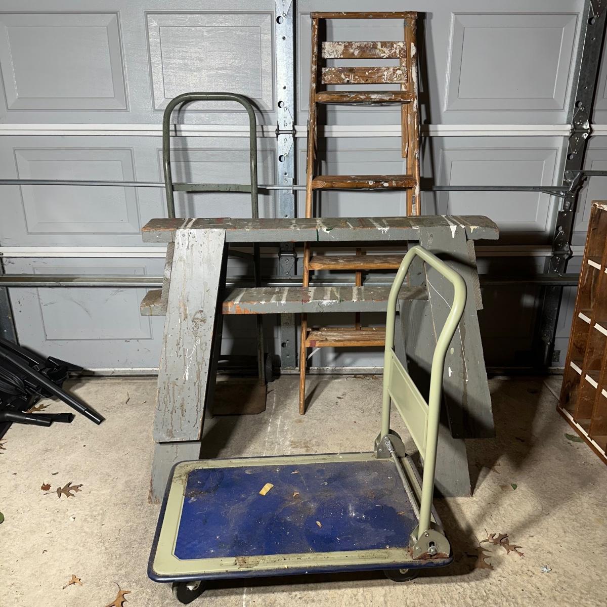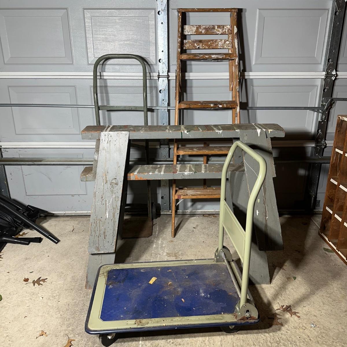 LOT 133G: Ladder, Hand Truck, Saw Horses & More