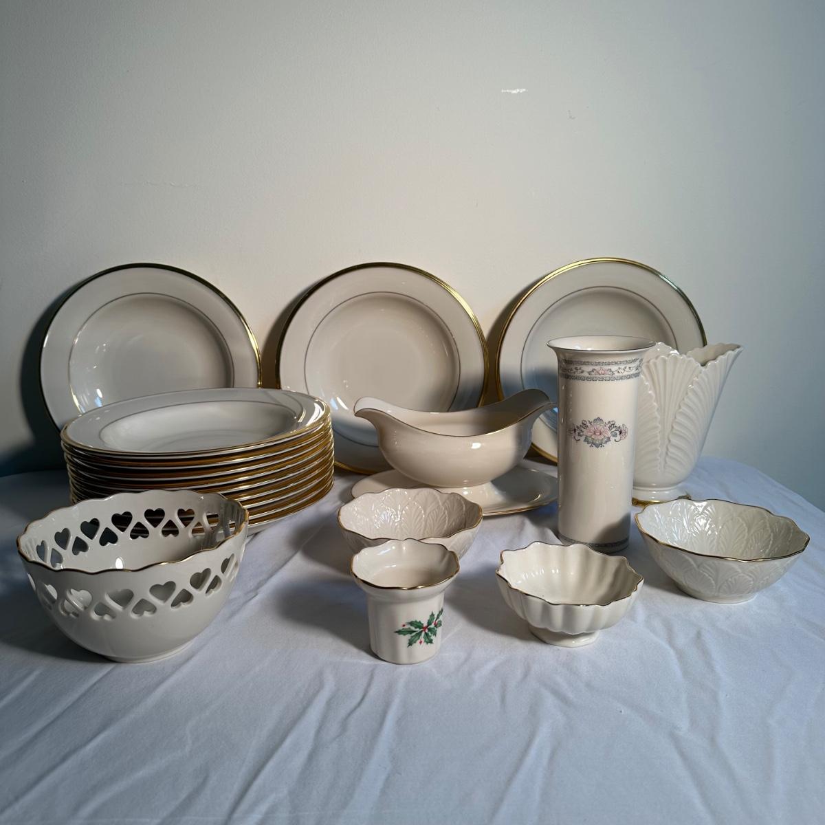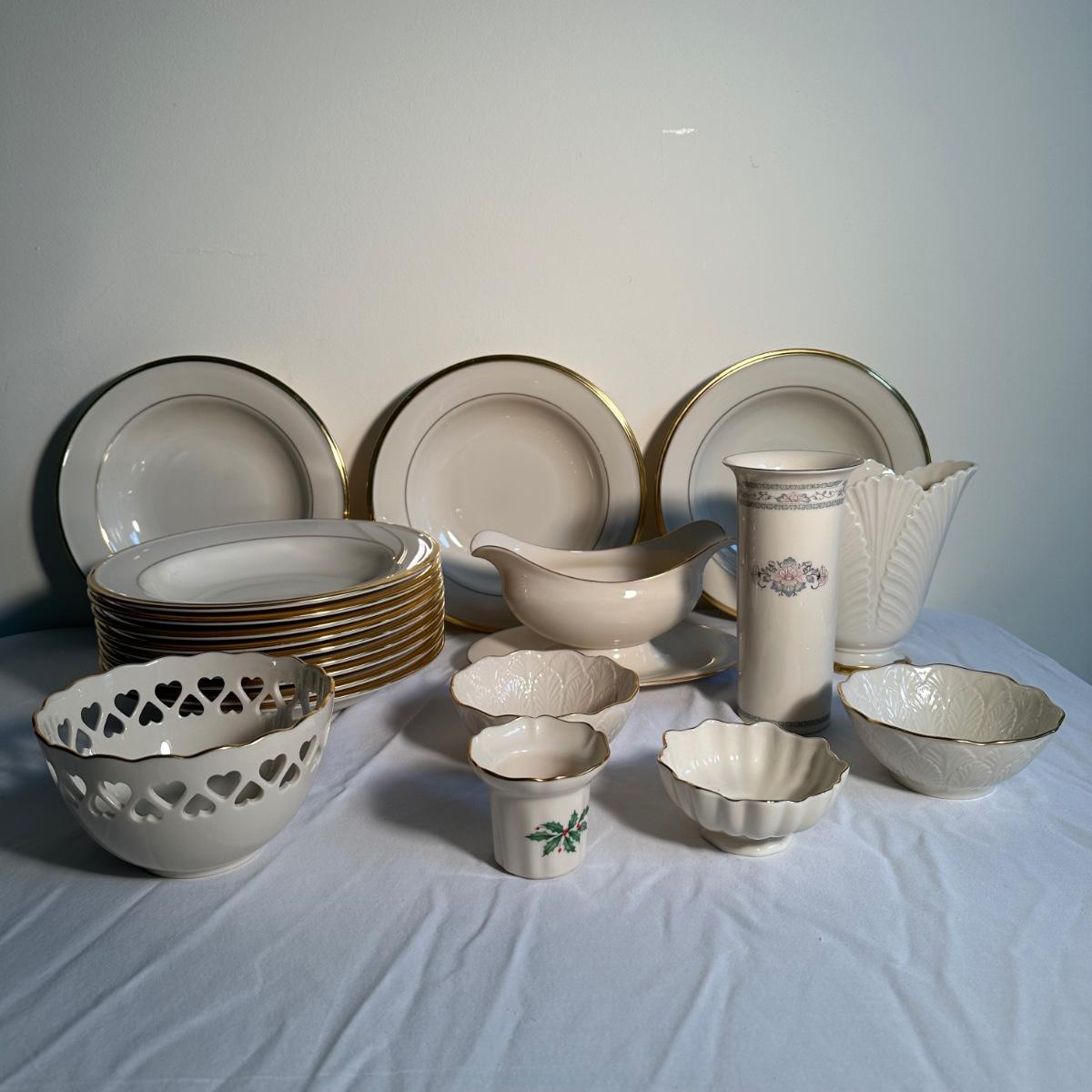 LOT 136D: Vintage Lenox Golden Rim Tableware Set
