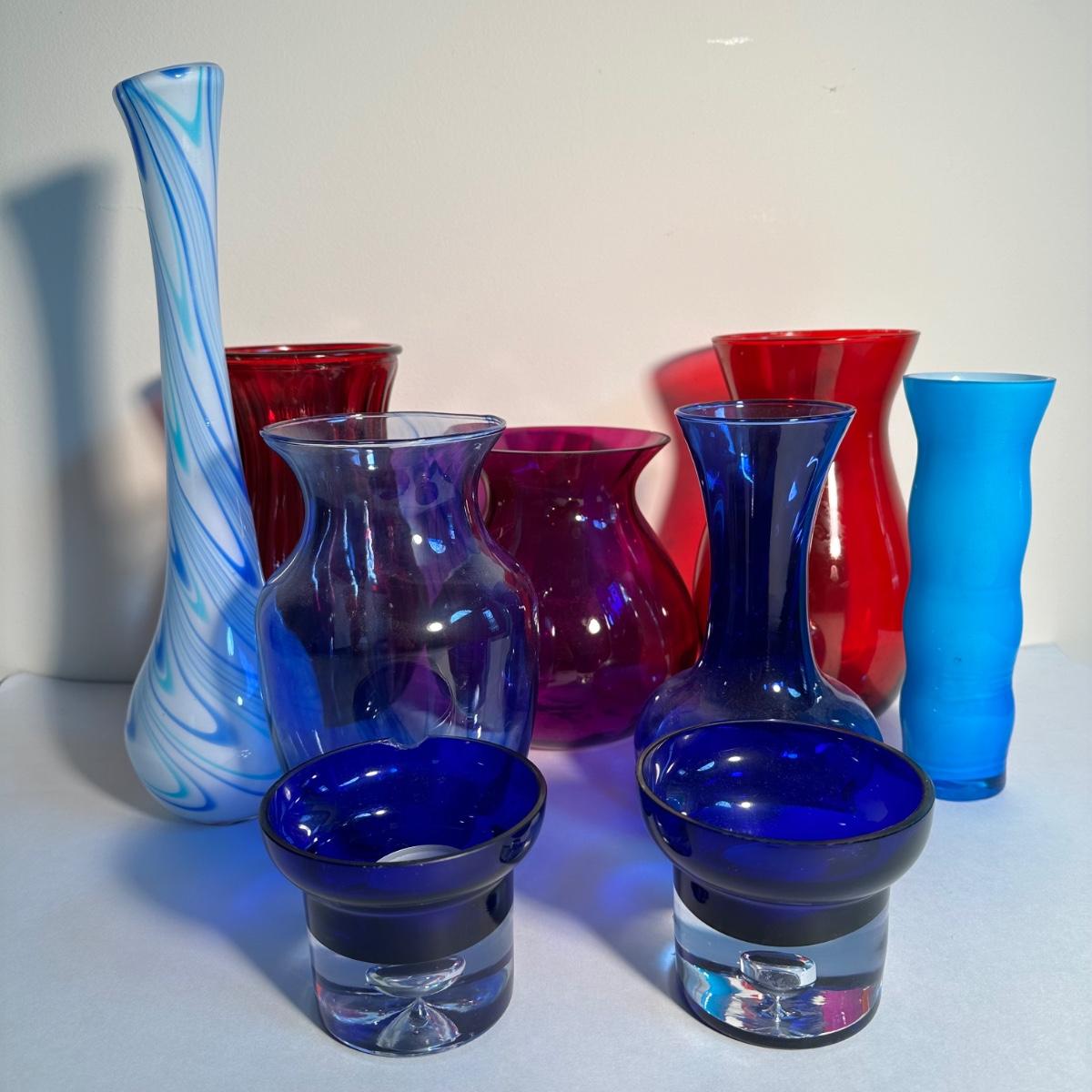 LOT 139D: Collection Of Colored Glass Vases & Candle Holders