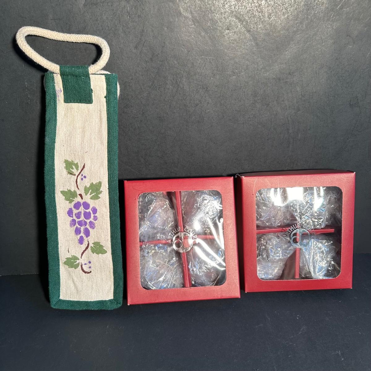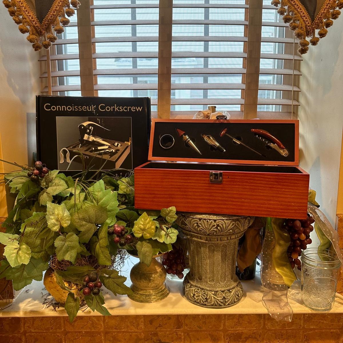 LOT 147K: Wine Themed Decor w/ Connoisseur Corkscrew, Napkin Rings & More