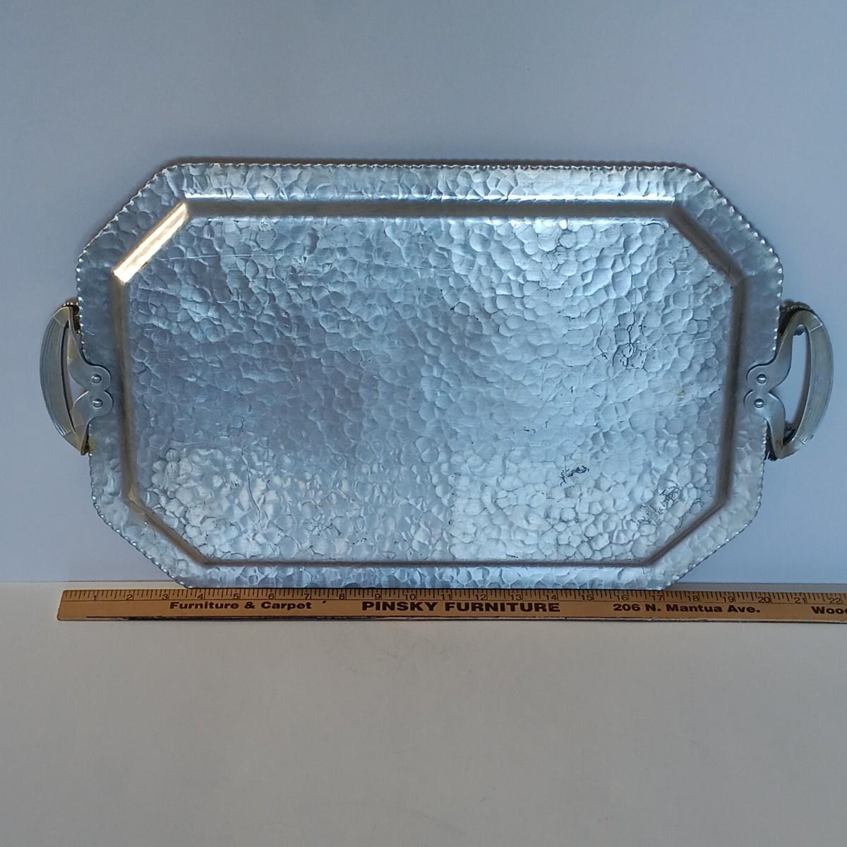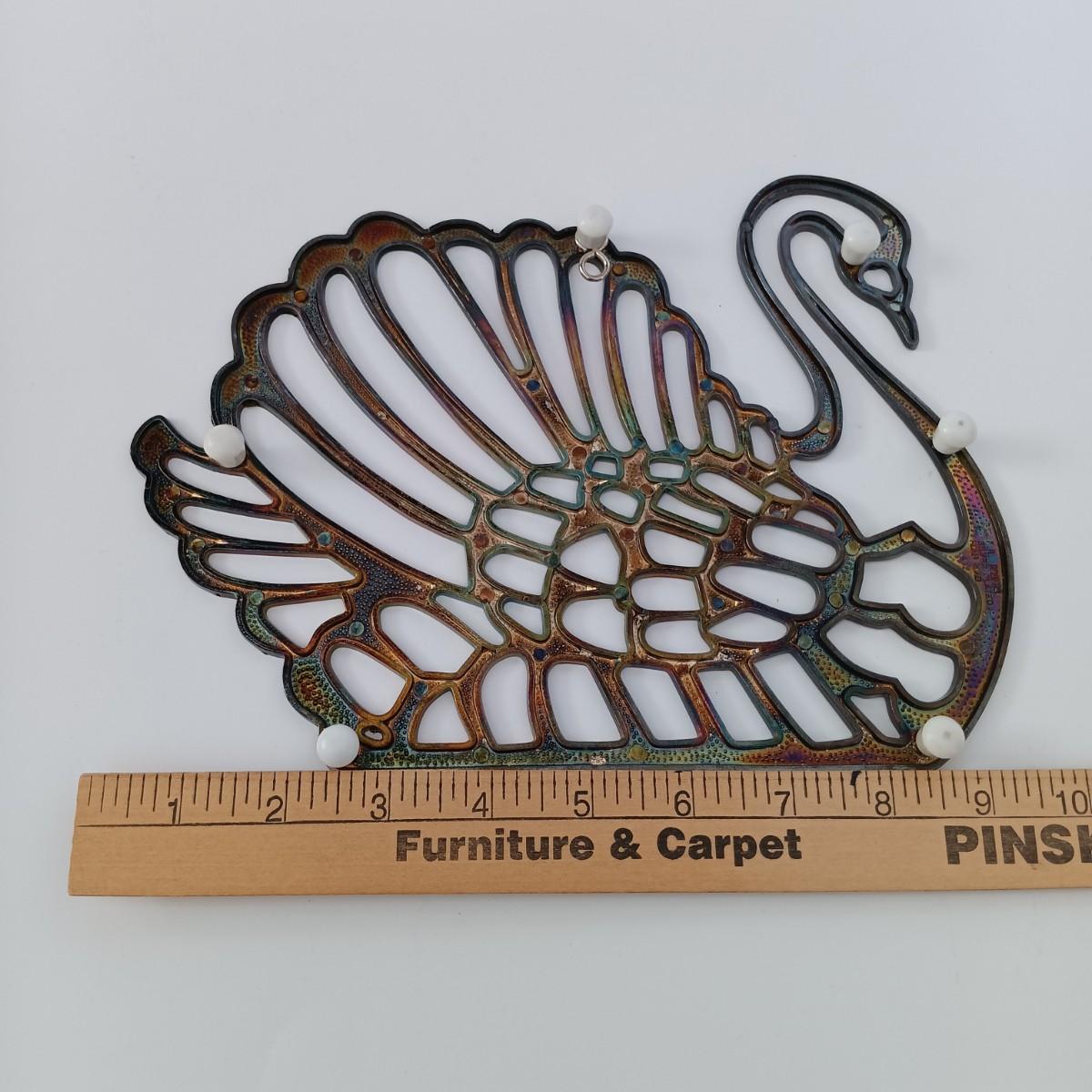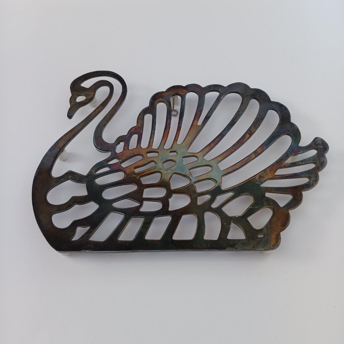 LOT 8L: F.B. Rogers Silverplated Swan Trivet, Trade Continental Handwrought Tray, Williamsburg Stieff Pewter Pitcher & More