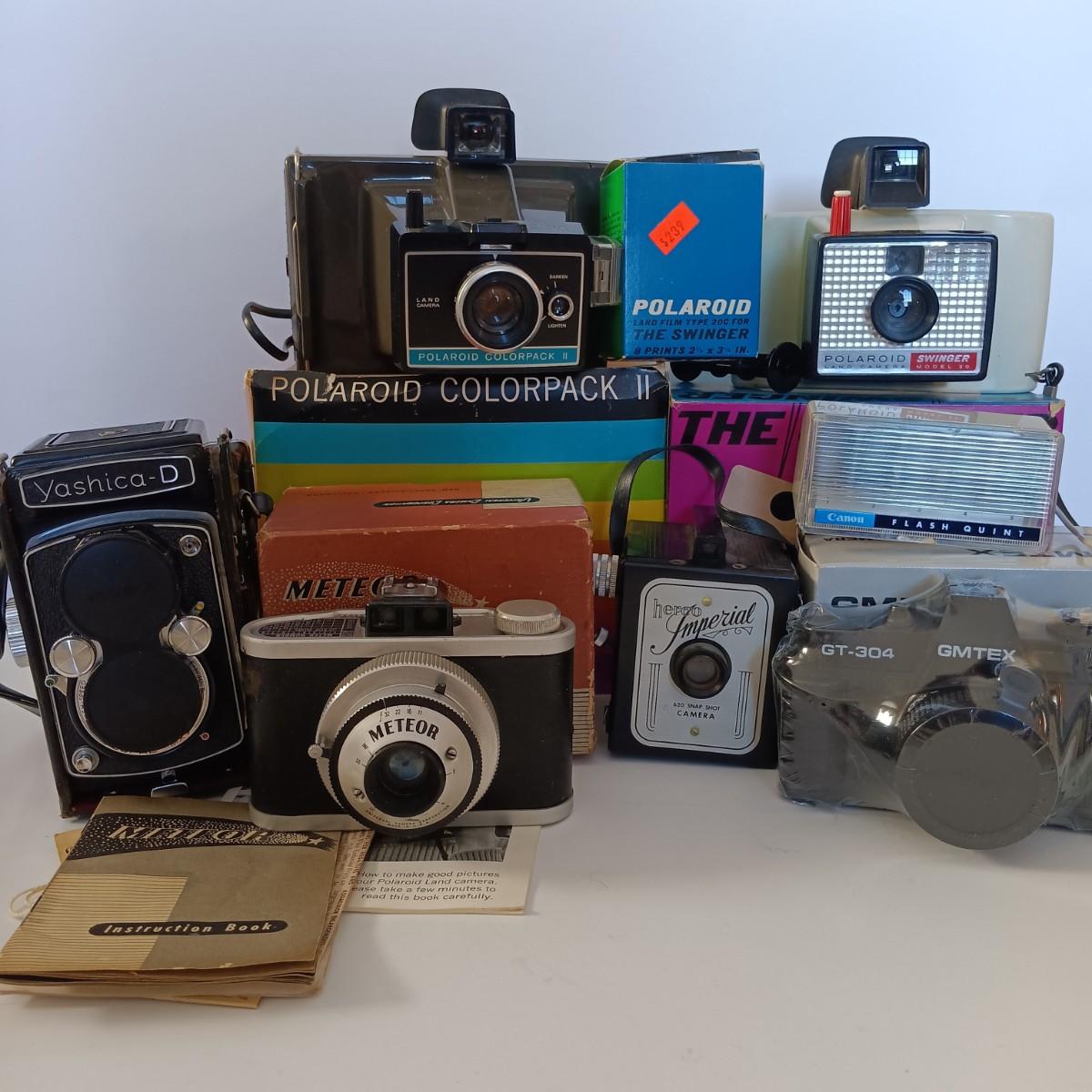 LOT 10L: Vintage Meteor Universal Camera, Yashica-D Film Camera, 2 Polaroid Land Cameras & More