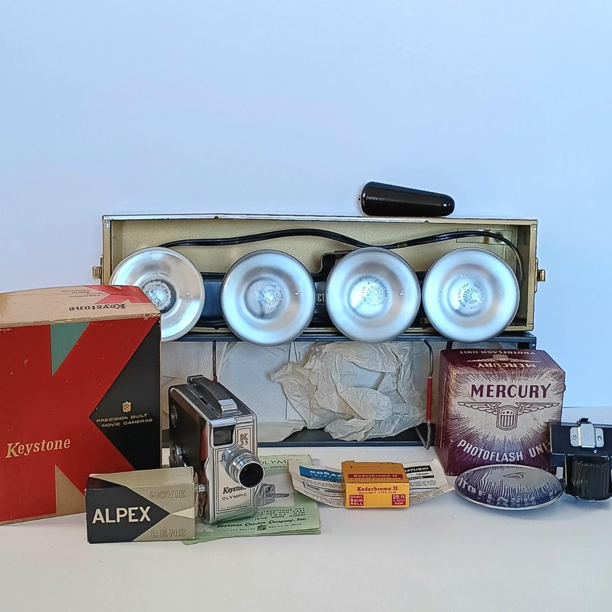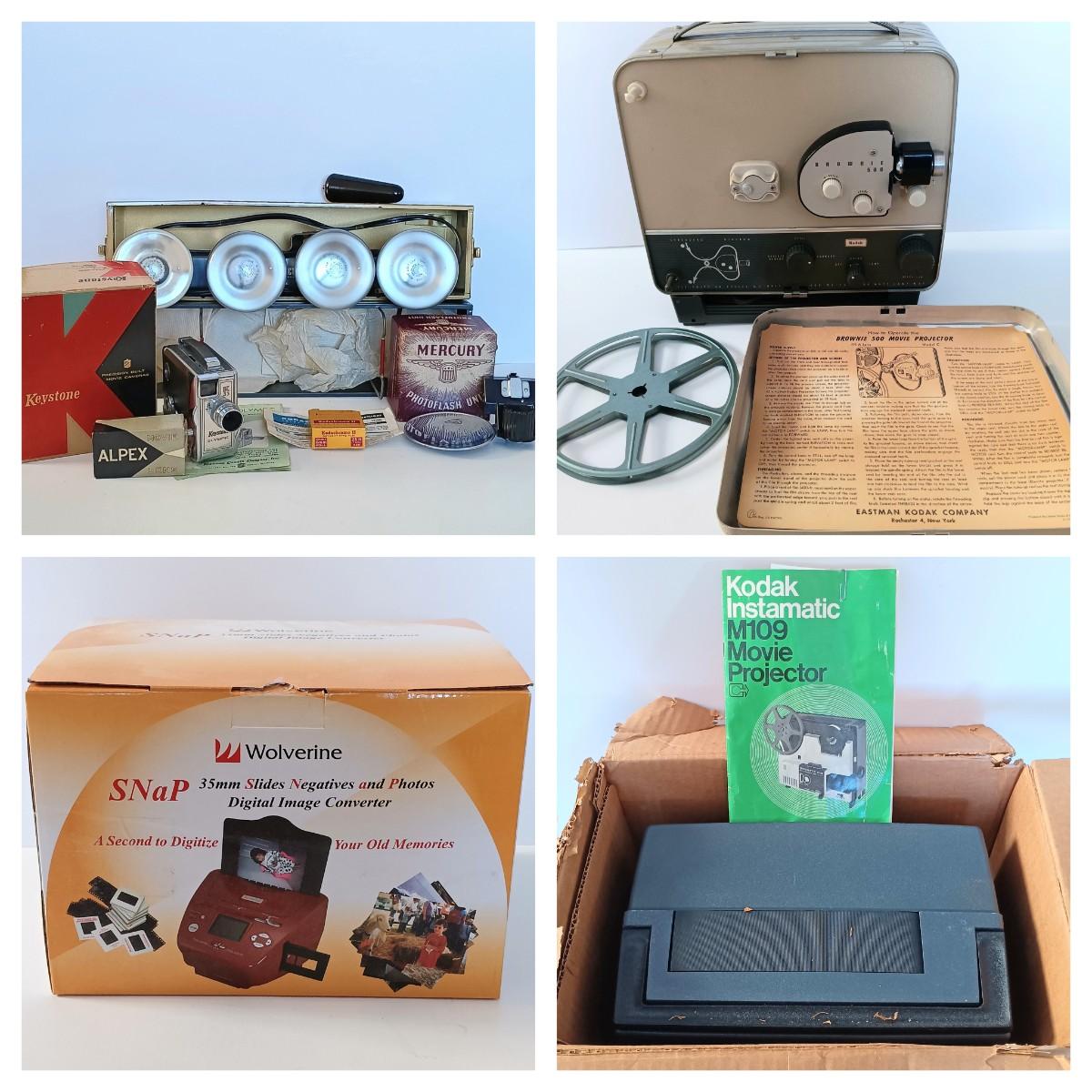 LOT 11L: Kodak Brownie 500 Movie Projector w/ 35mm Slides Digital Converter, Keystone K-33 Olympic 8mm Camera & More