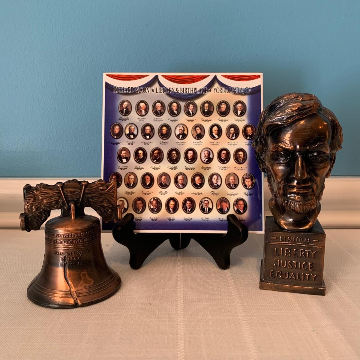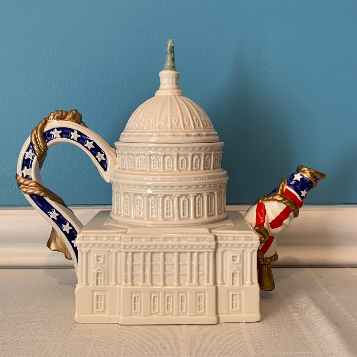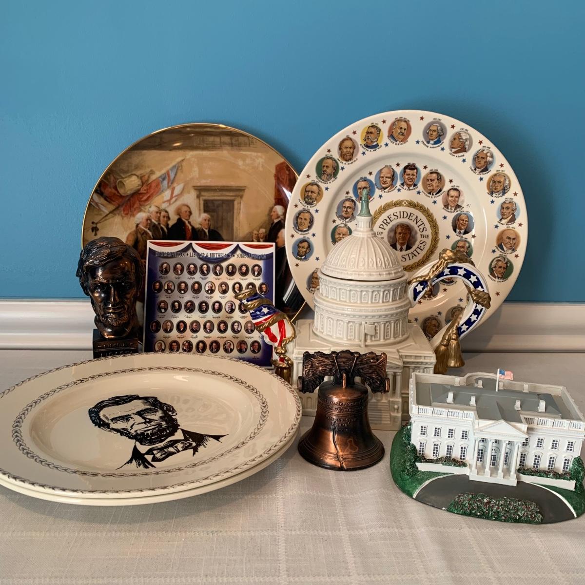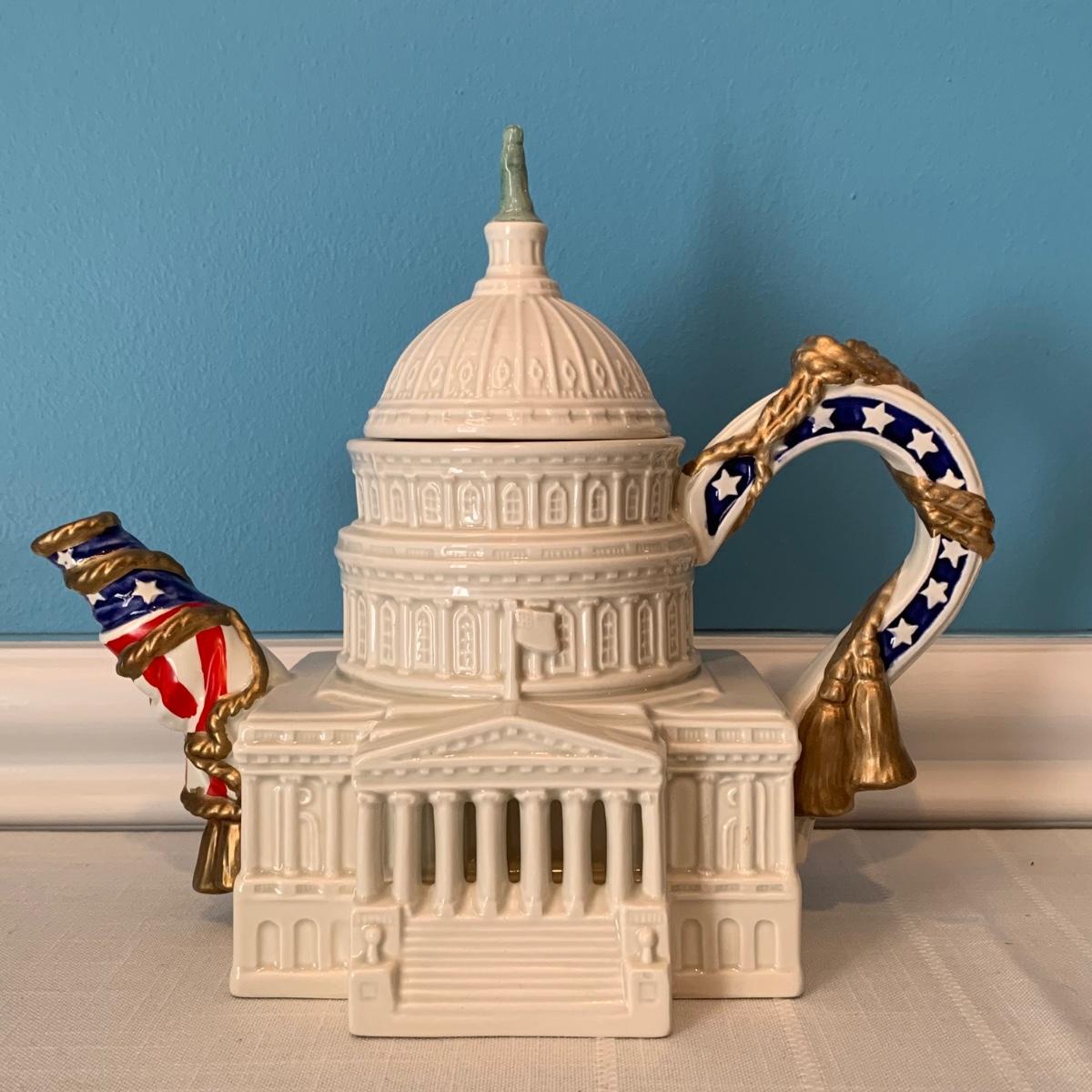 LOT 22L: Patriotic Collection: Fitz & Floyd "The U.S. Capitol Building" Teapot, Danbury Mint "The White House", President Lincoln Bust, Liberty Bell & More