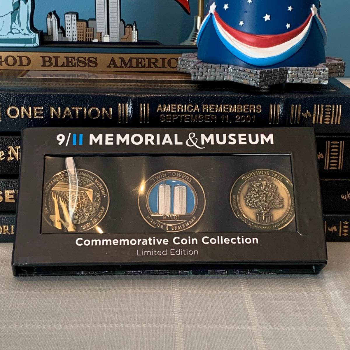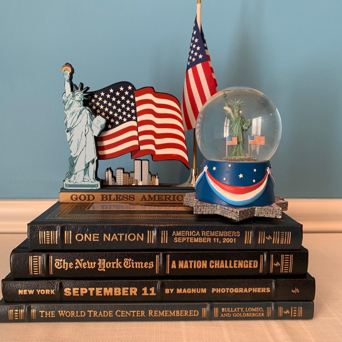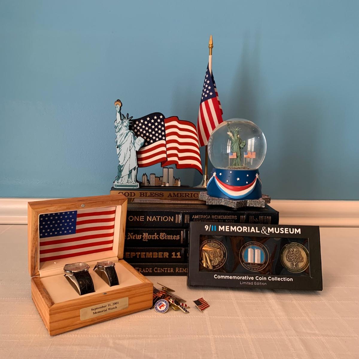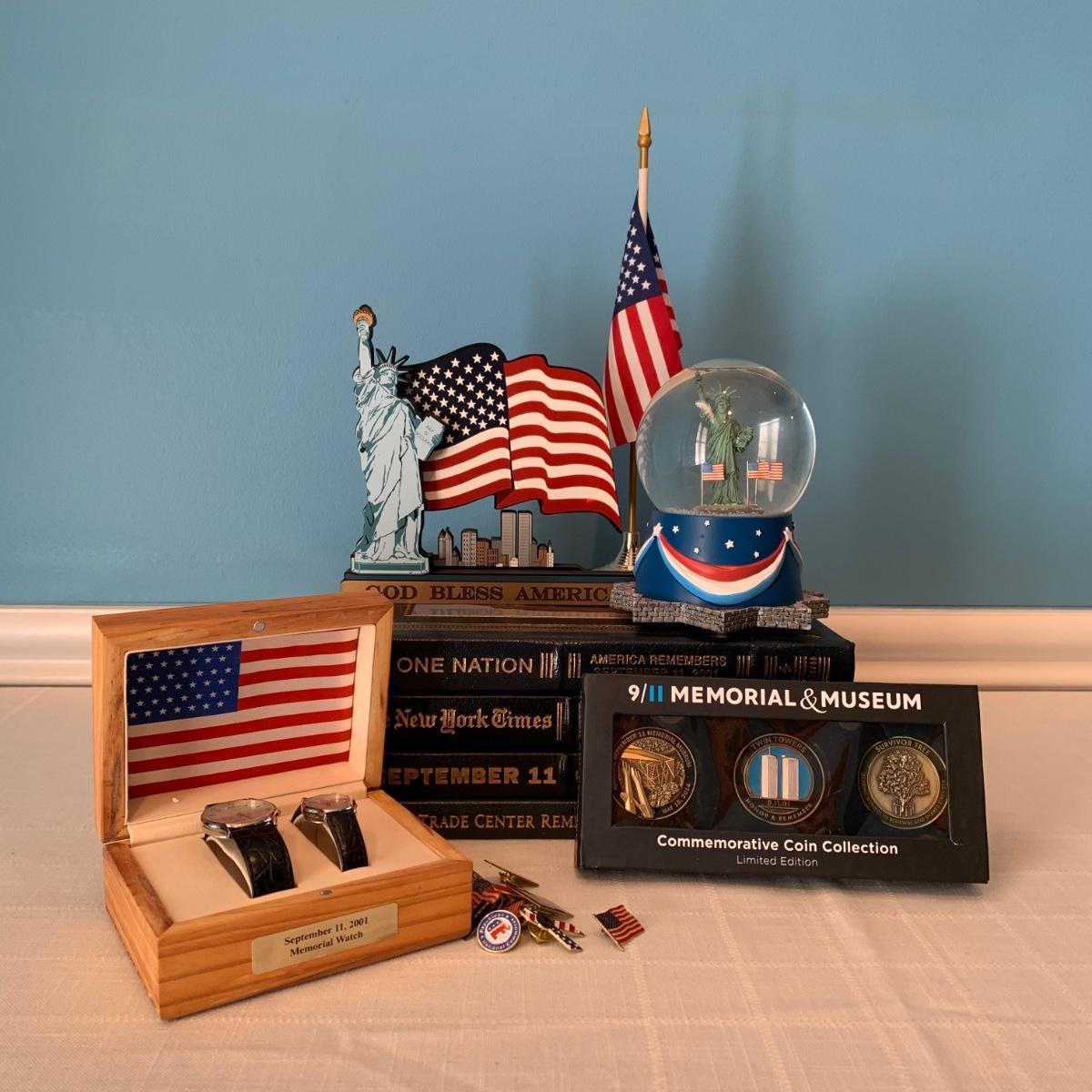 LOT 23L: Remembering 9/11: Memorial Watches, Commemorative Coins, Hallmark Globe, Shelia's "God Bless America" & Books