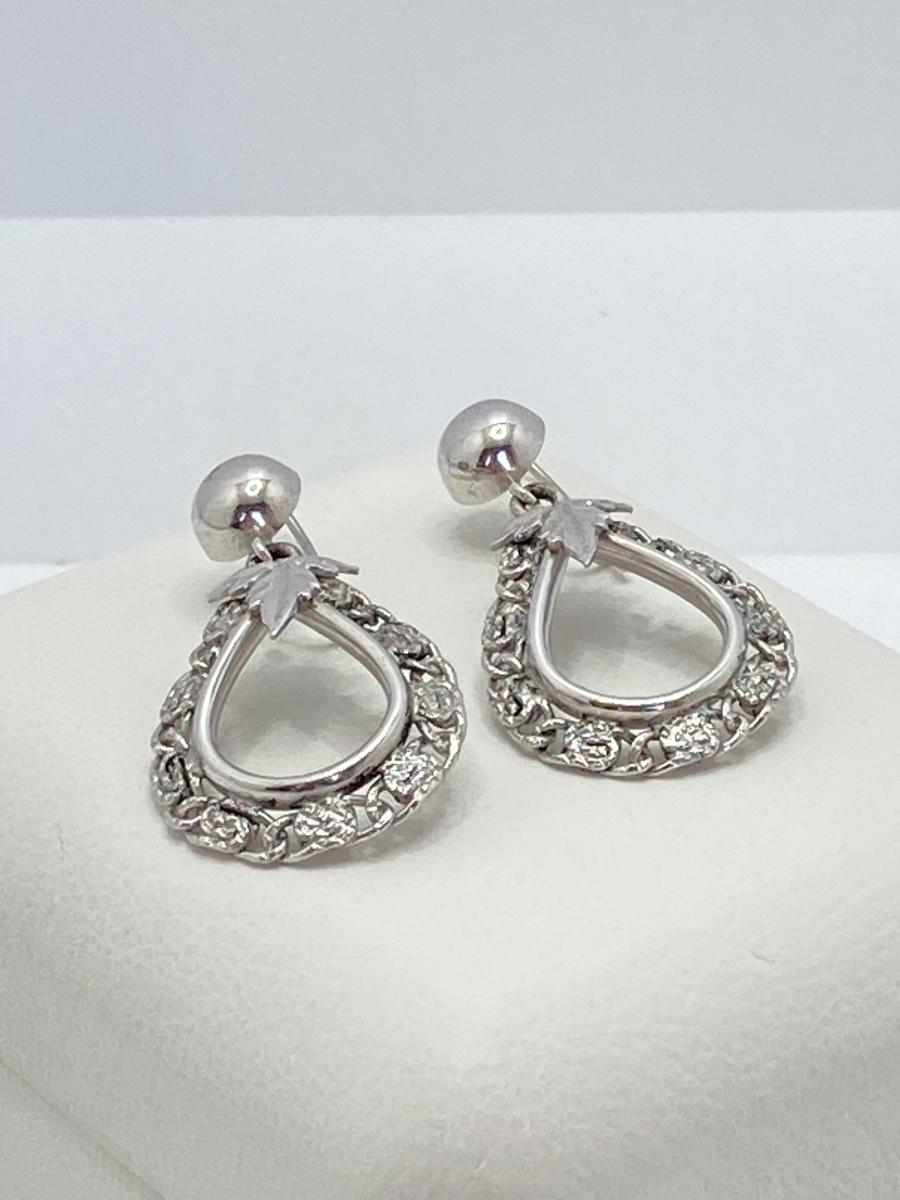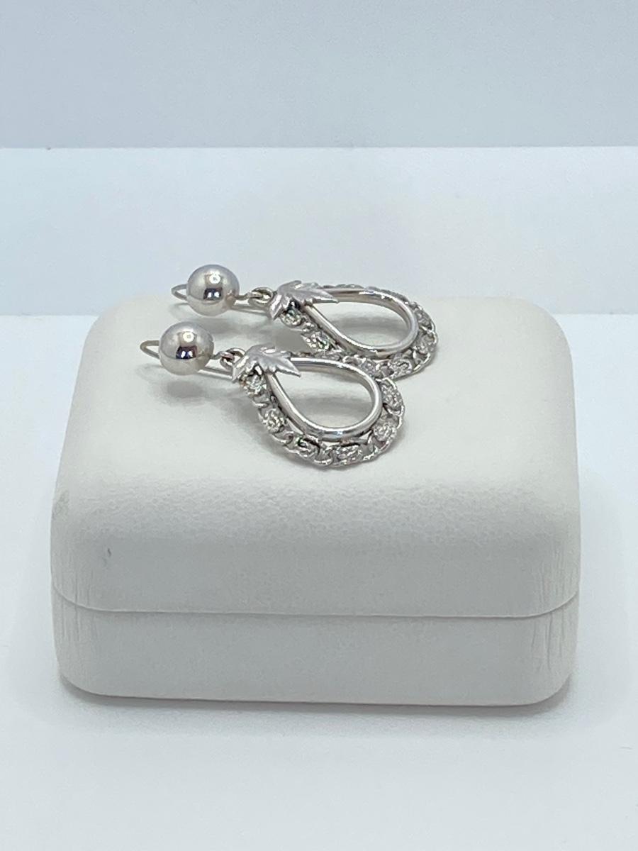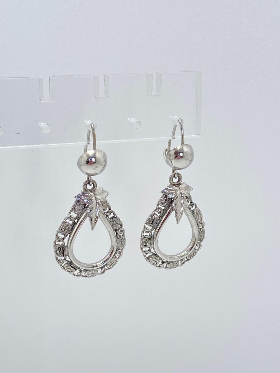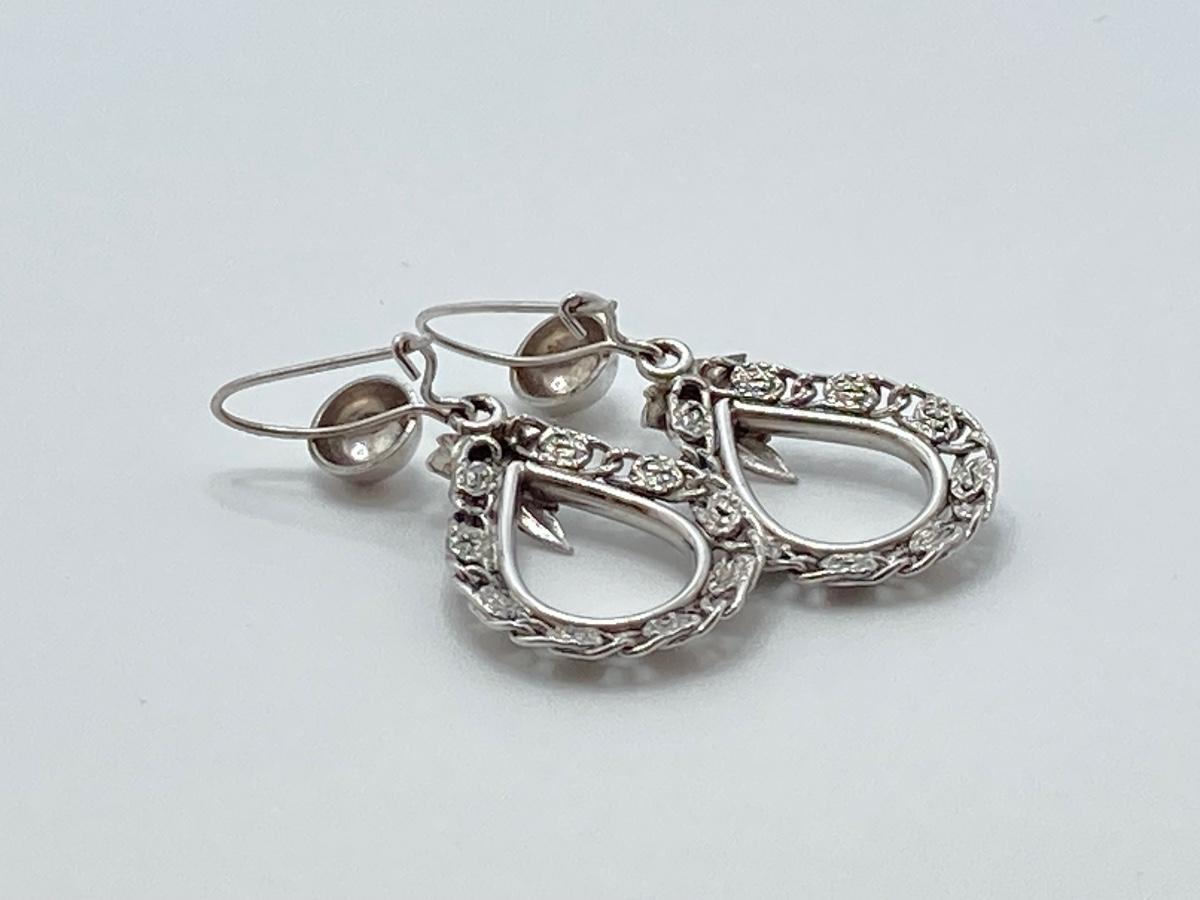 LOT 29J: White Gold Hook and Dangle Pierced Earrings - 10K., Tw 4.1g