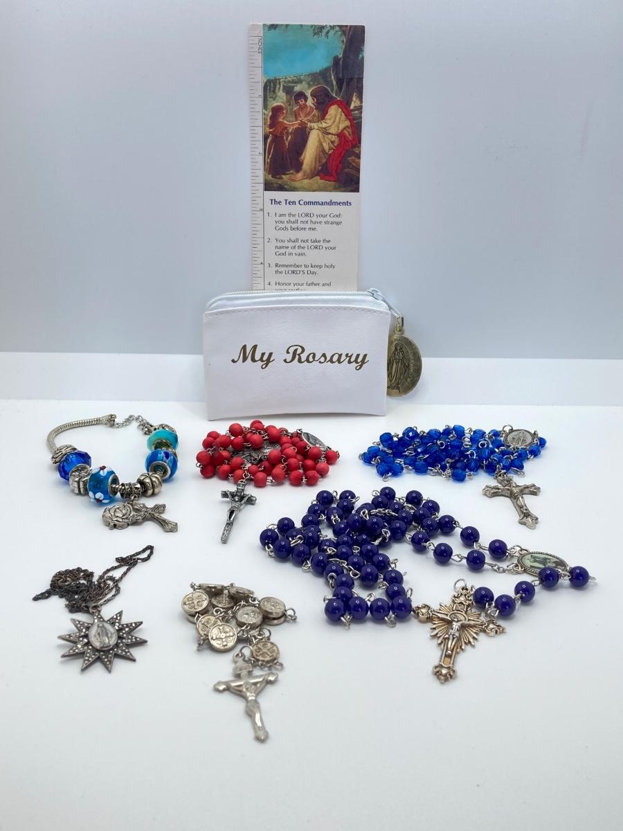 LOT 36J: Sterling Religious Pendant with Collection of Rosary Beads and More